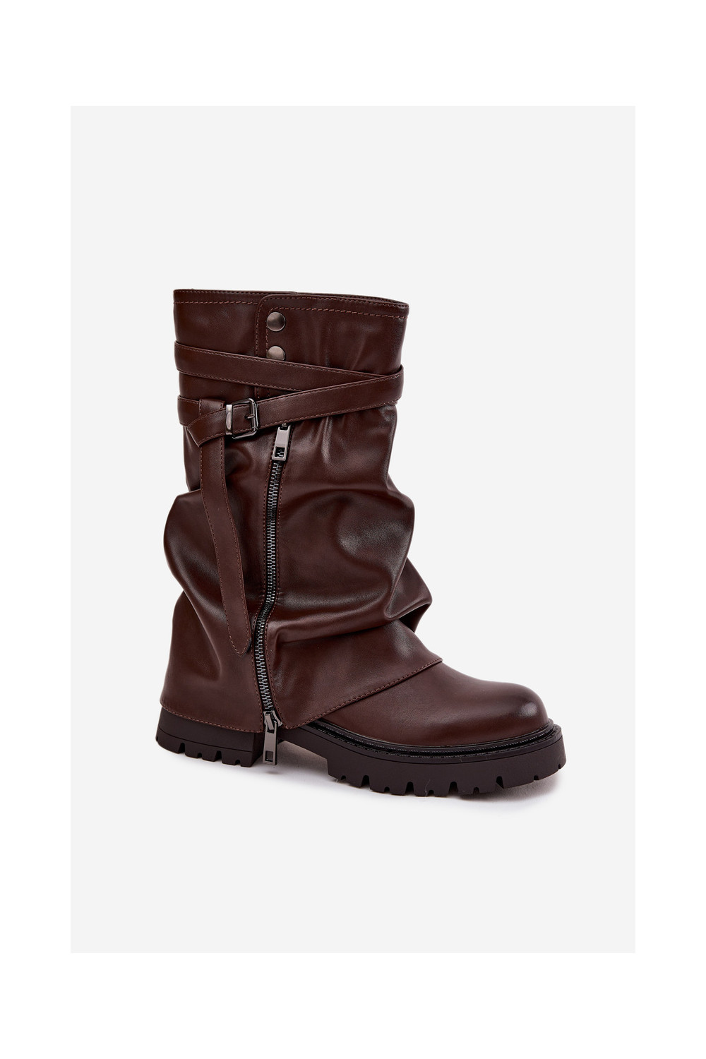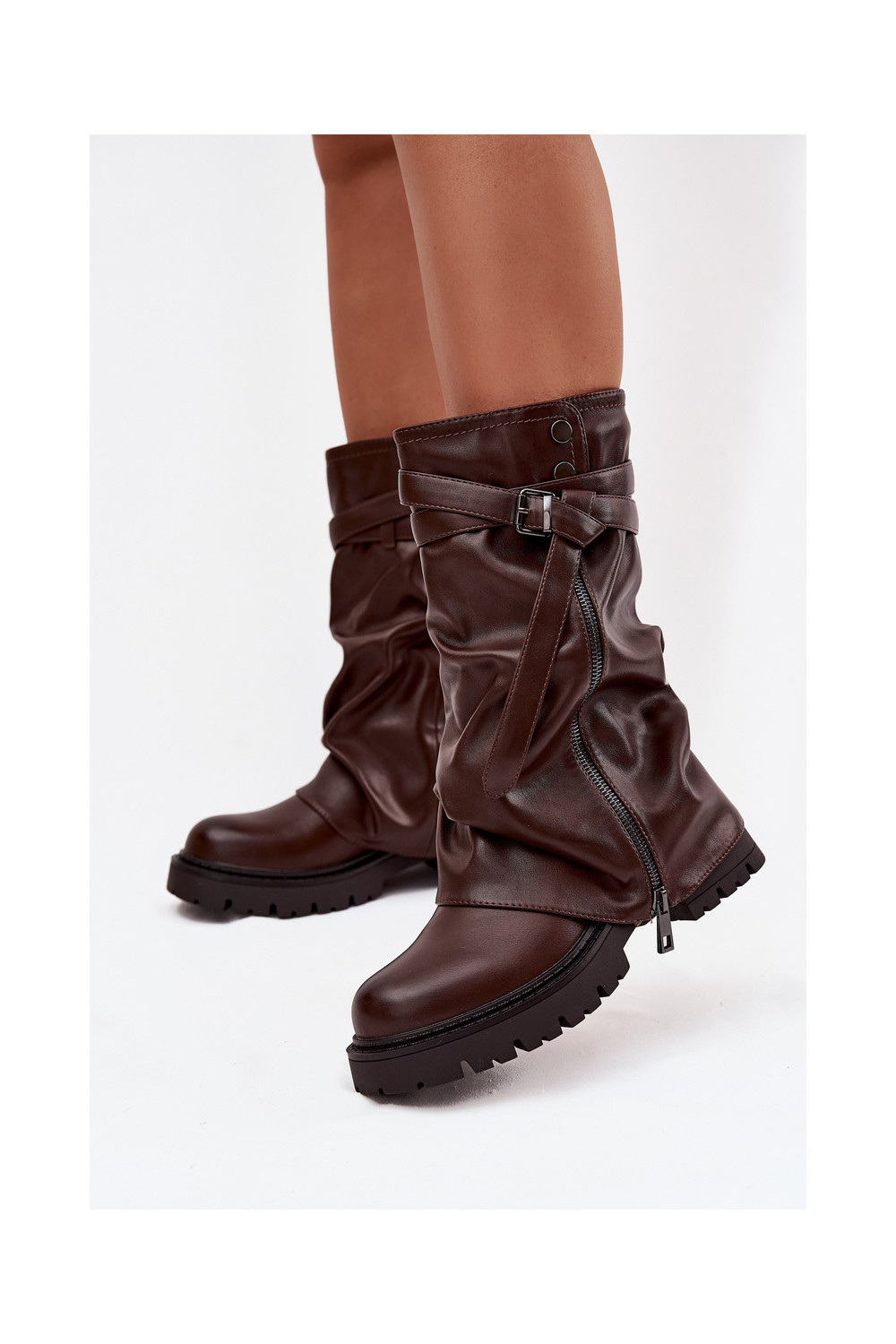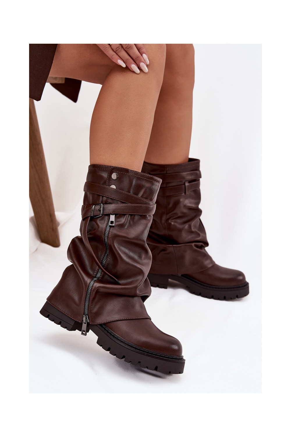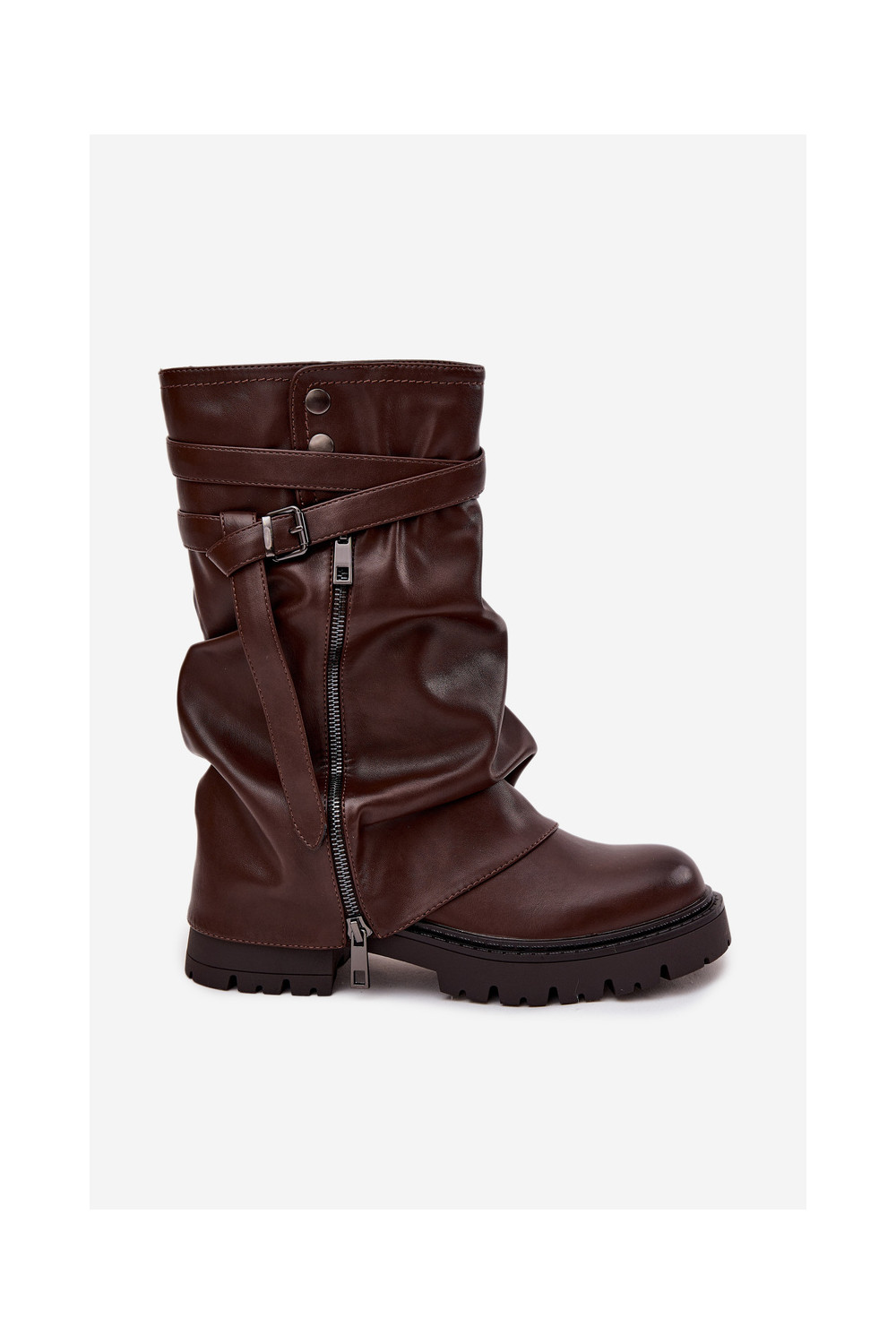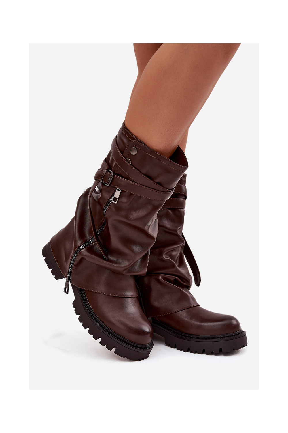 Sieviešu garie zābaki ar iepresētu potīti, vidus apakšstilbam ar siksnām šokolādes krāsā Darisa