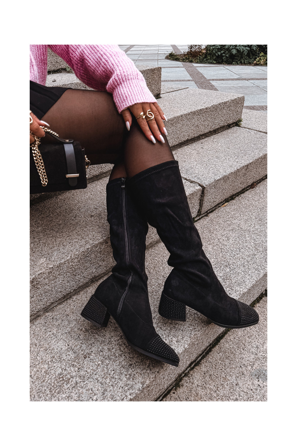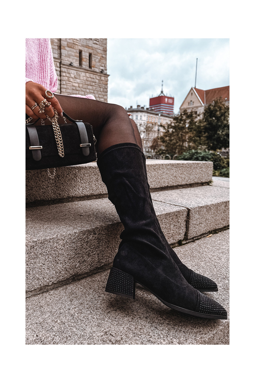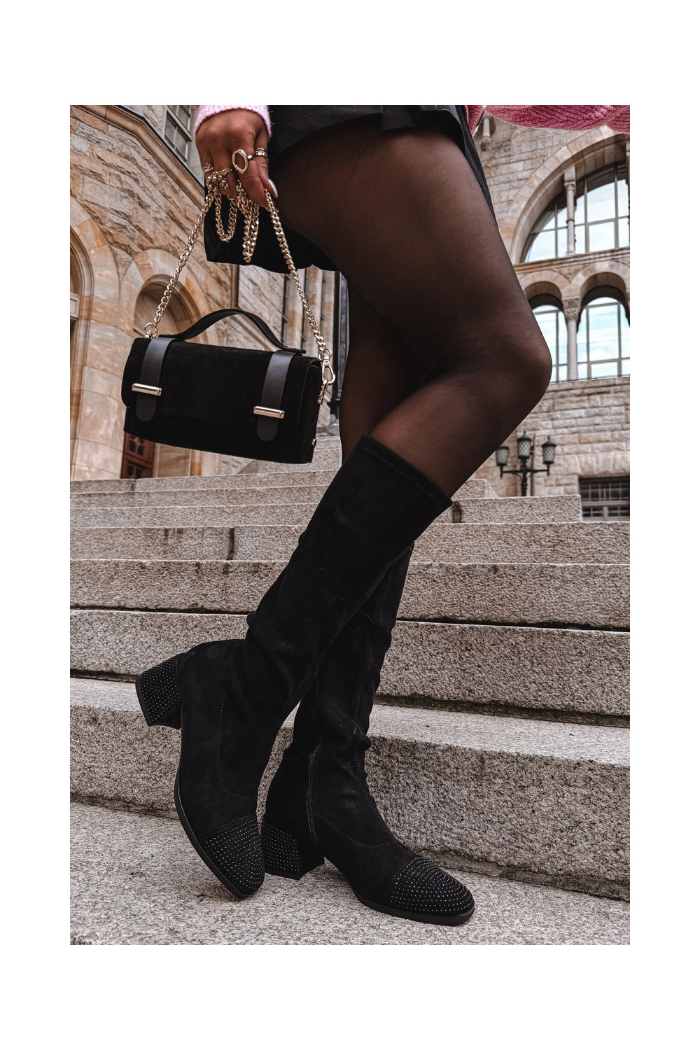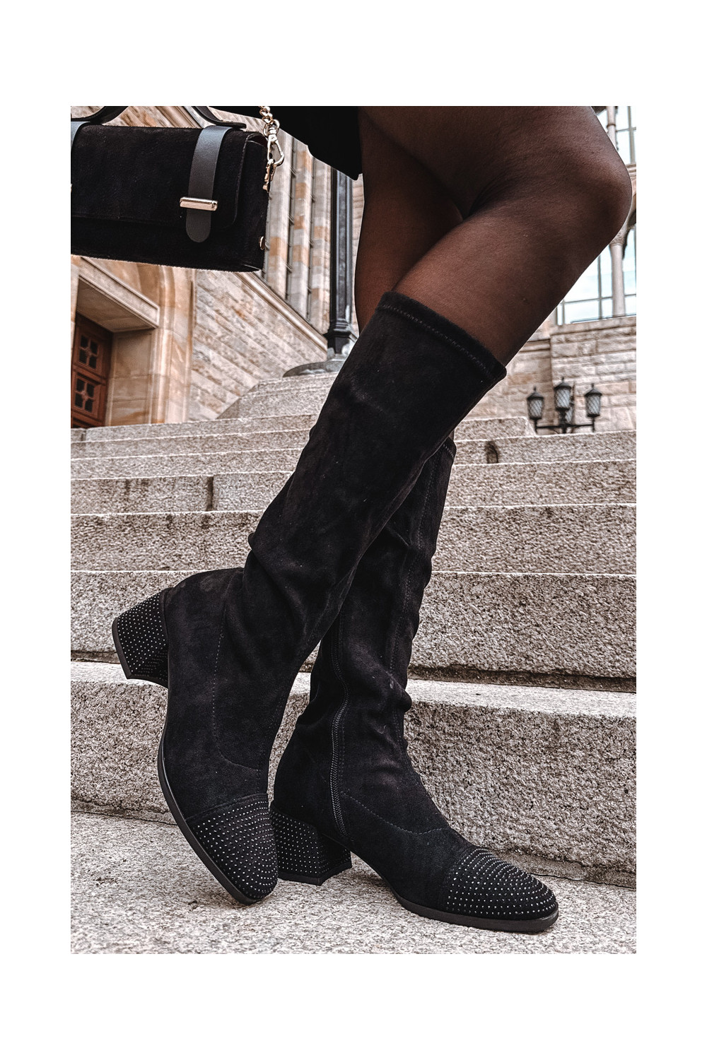 Sieviešu garie zābaki ar dekorāciju Klocke no mākslīgā zābaka melnā krāsā Ivanna
