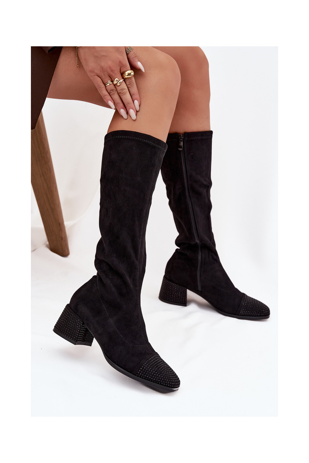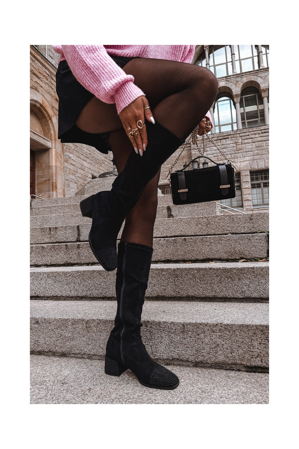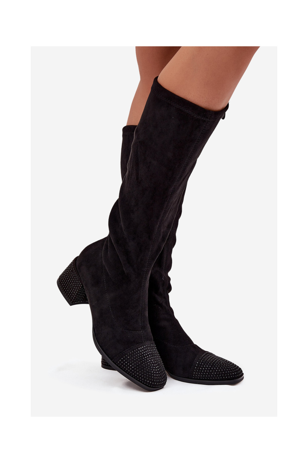 Sieviešu garie zābaki ar dekorāciju Klocke no mākslīgā zābaka melnā krāsā Ivanna