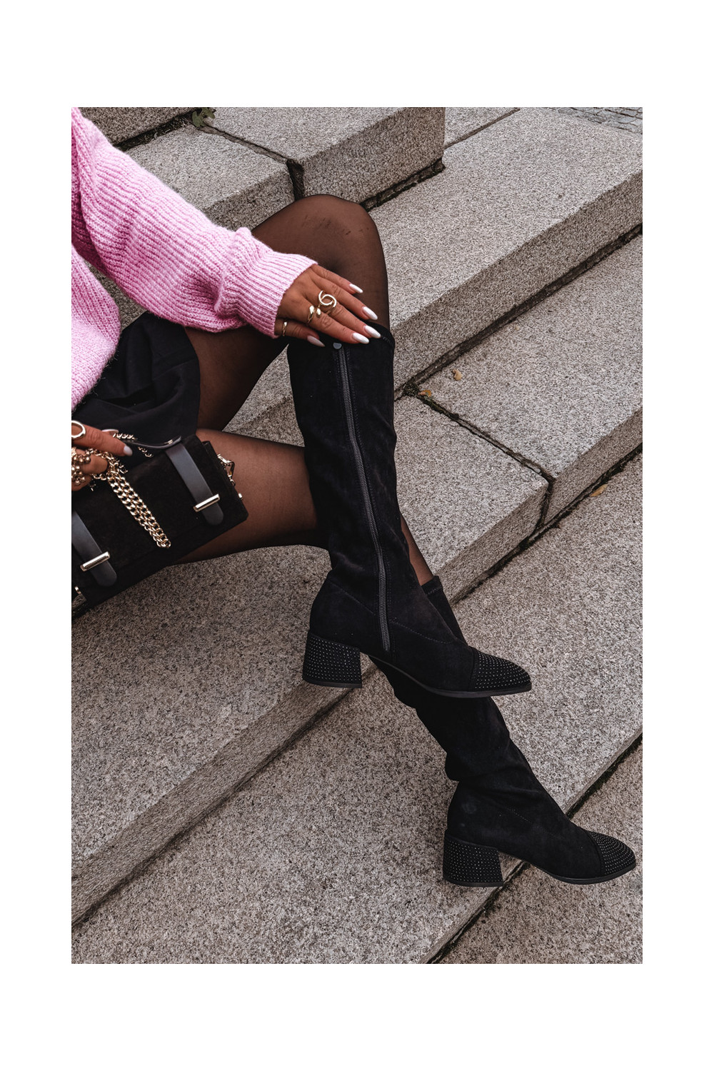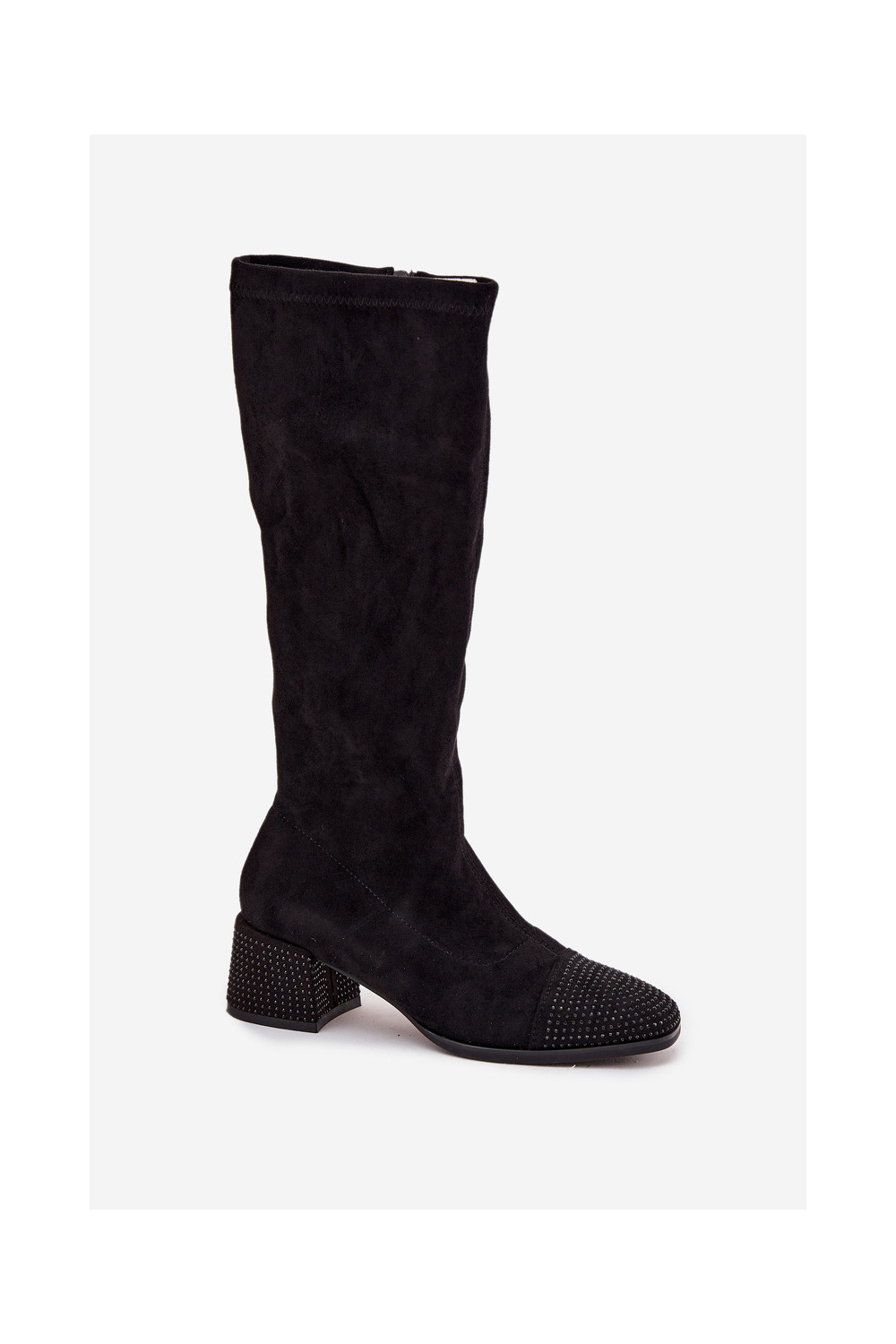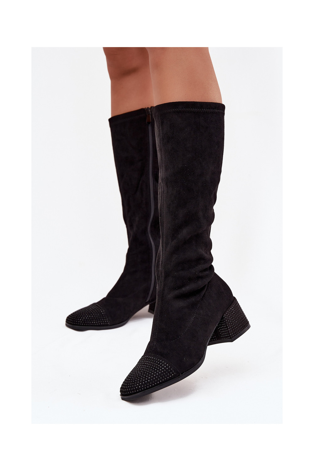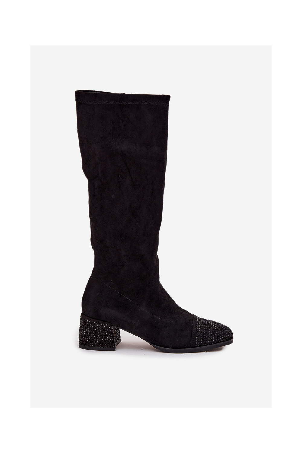 Sieviešu garie zābaki ar dekorāciju Klocke no mākslīgā zābaka melnā krāsā Ivanna