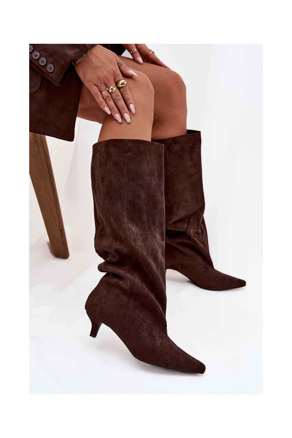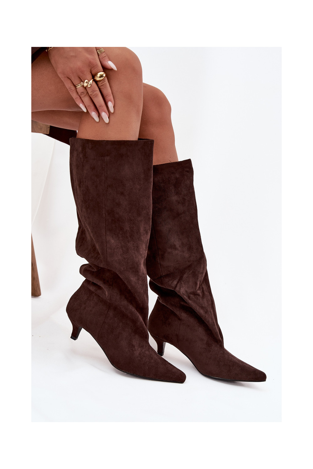 sieviešu garie zābaki ar papēdiEko zamšādau CzekoladoIne Pheona