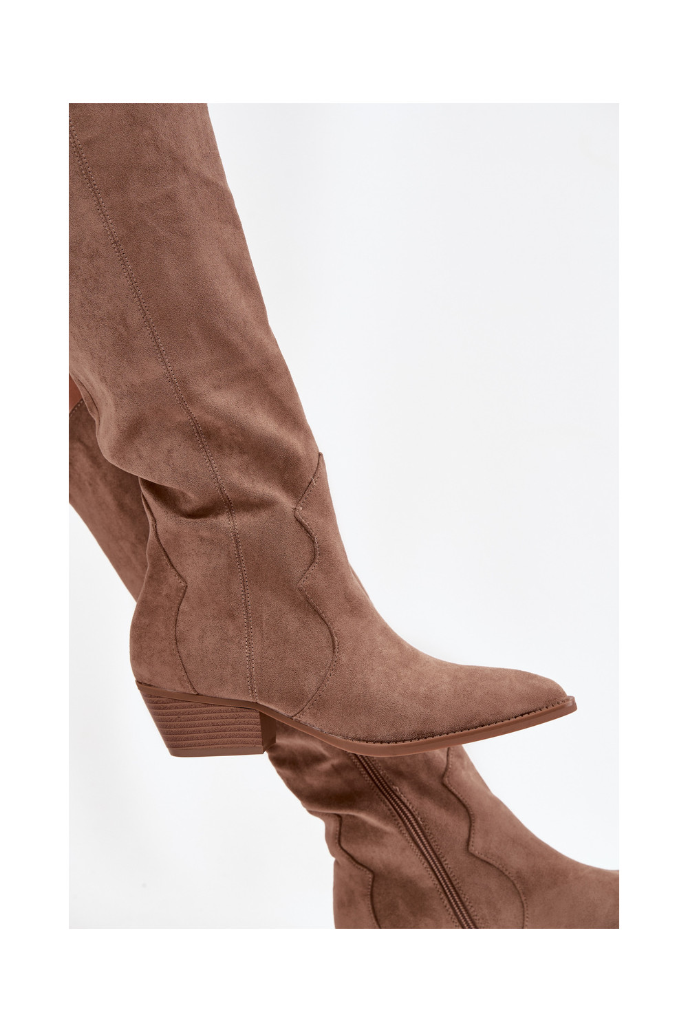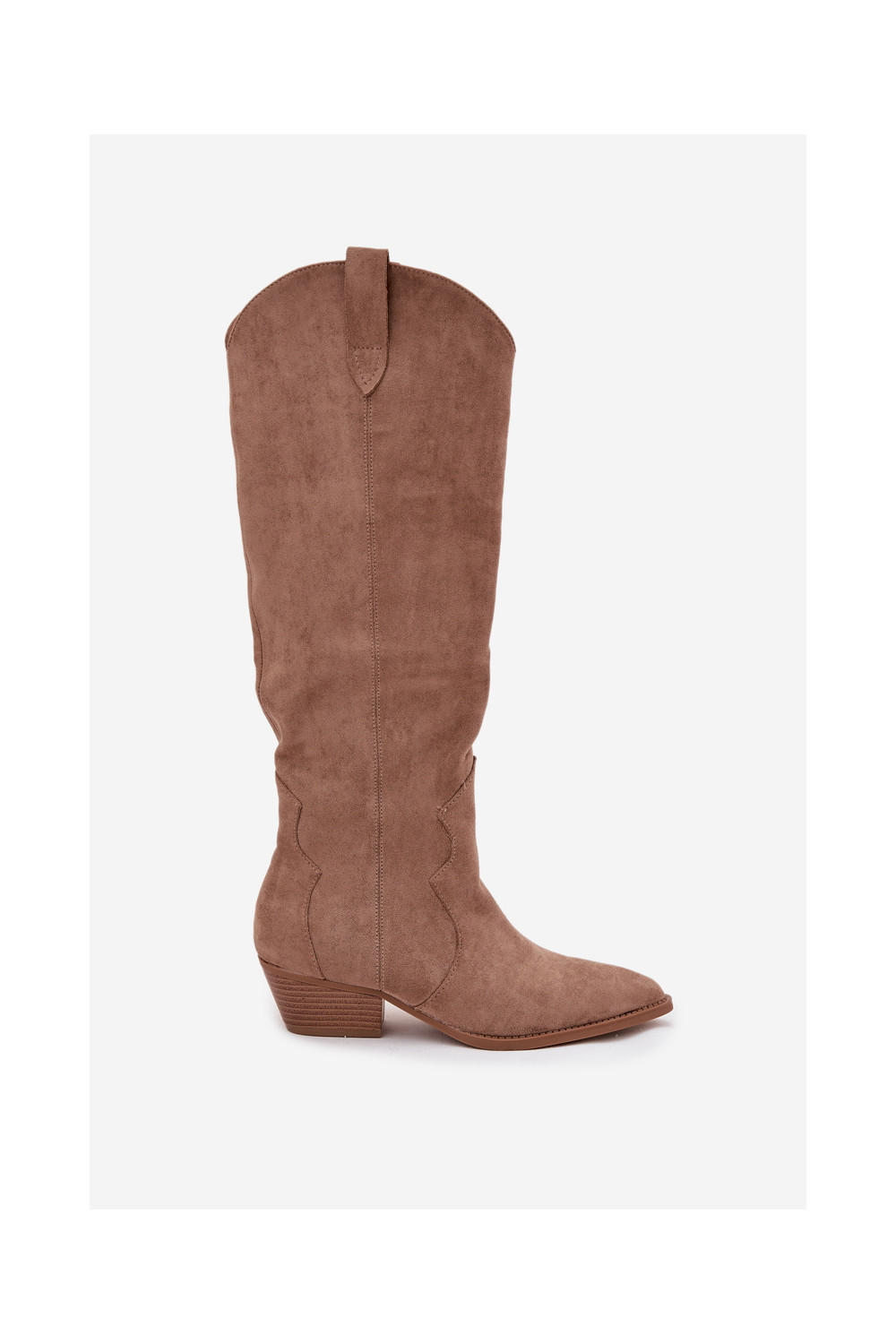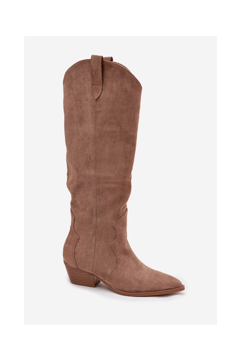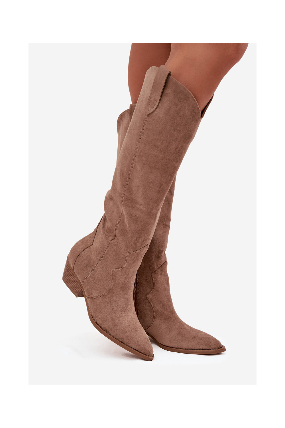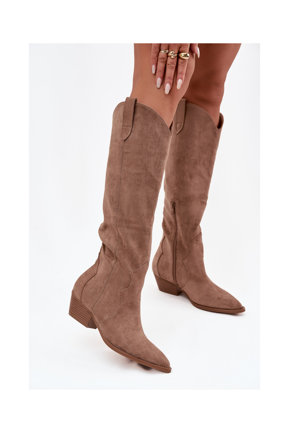 Garie zābaki no mākslīgā zābaka kovboju stilā sievietēm ar papēžiem smilšu krāsā Jenaya