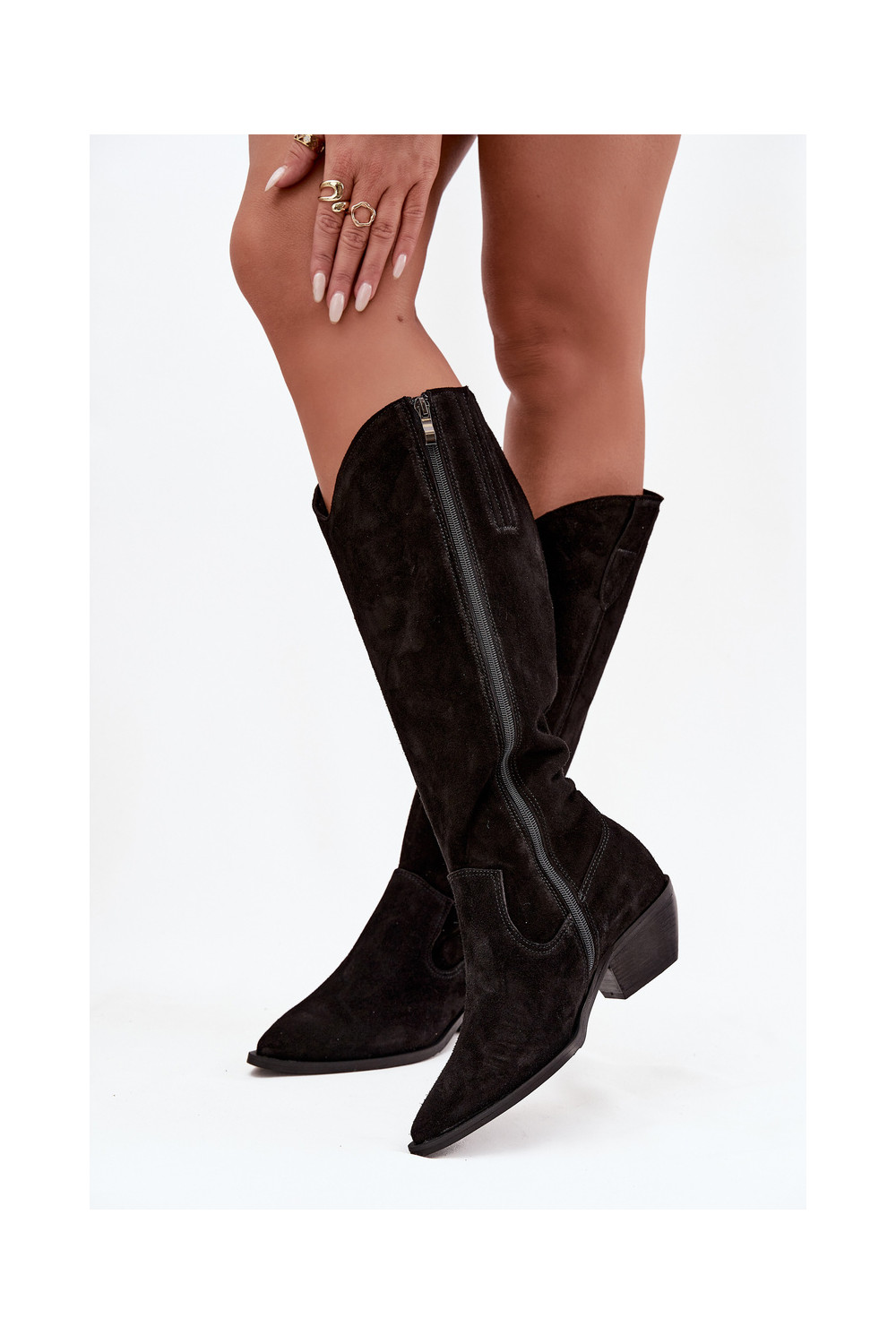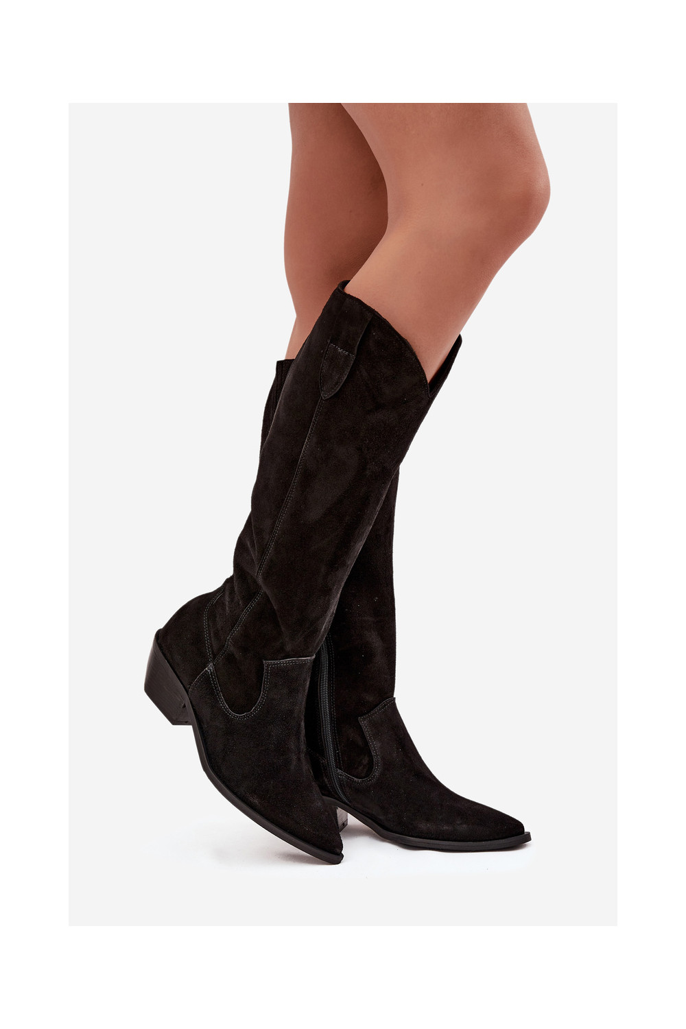 garie zābaki Kovboju zābakiIeslēgtsturalnego zamšādasu siltināti Zazoo 4225 melnas krāsas