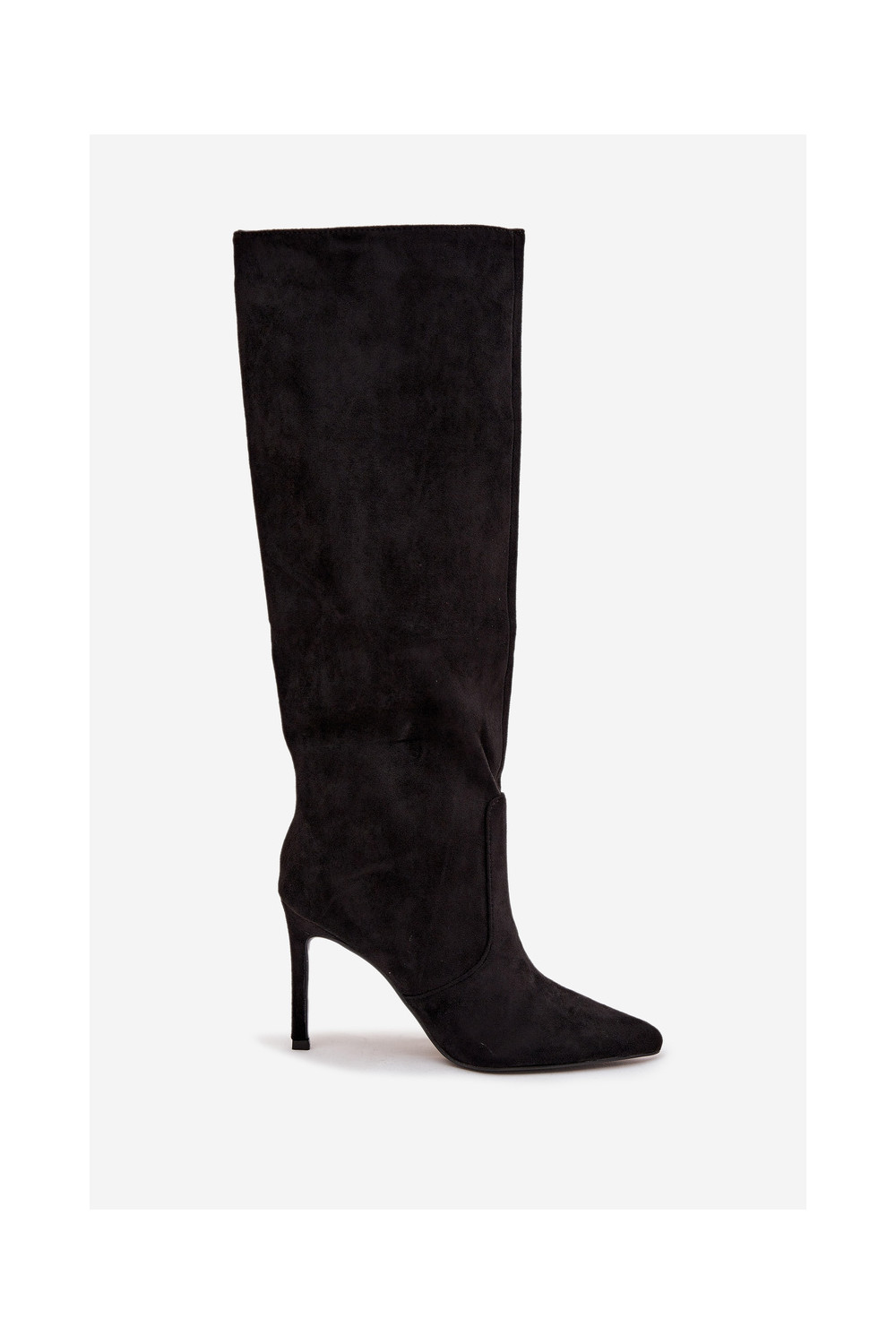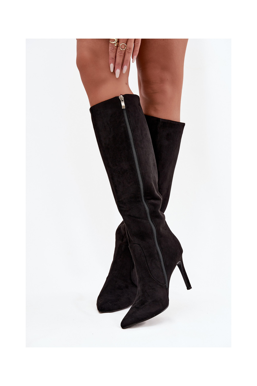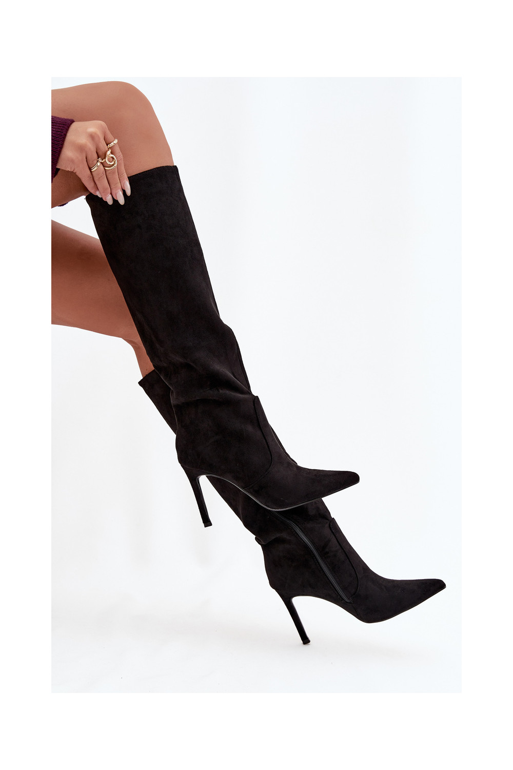 siltināti sieviešu garie zābaki ar papēdiEko zamšādau melnas krāsas Rosavine