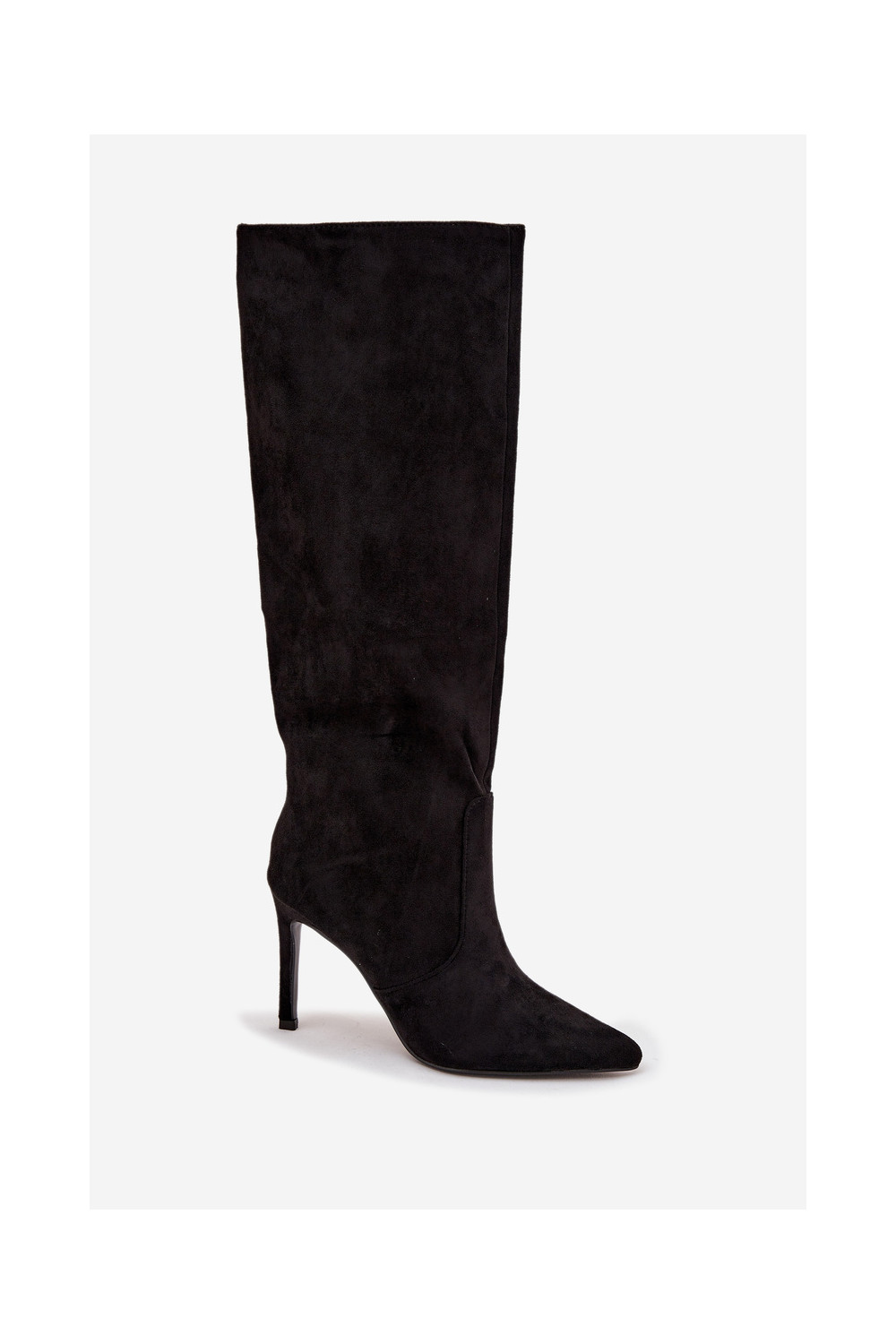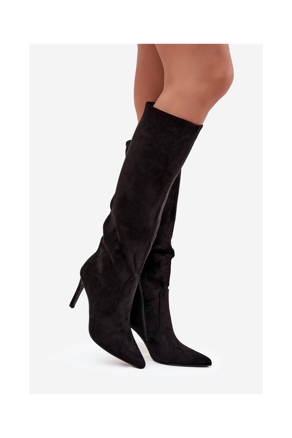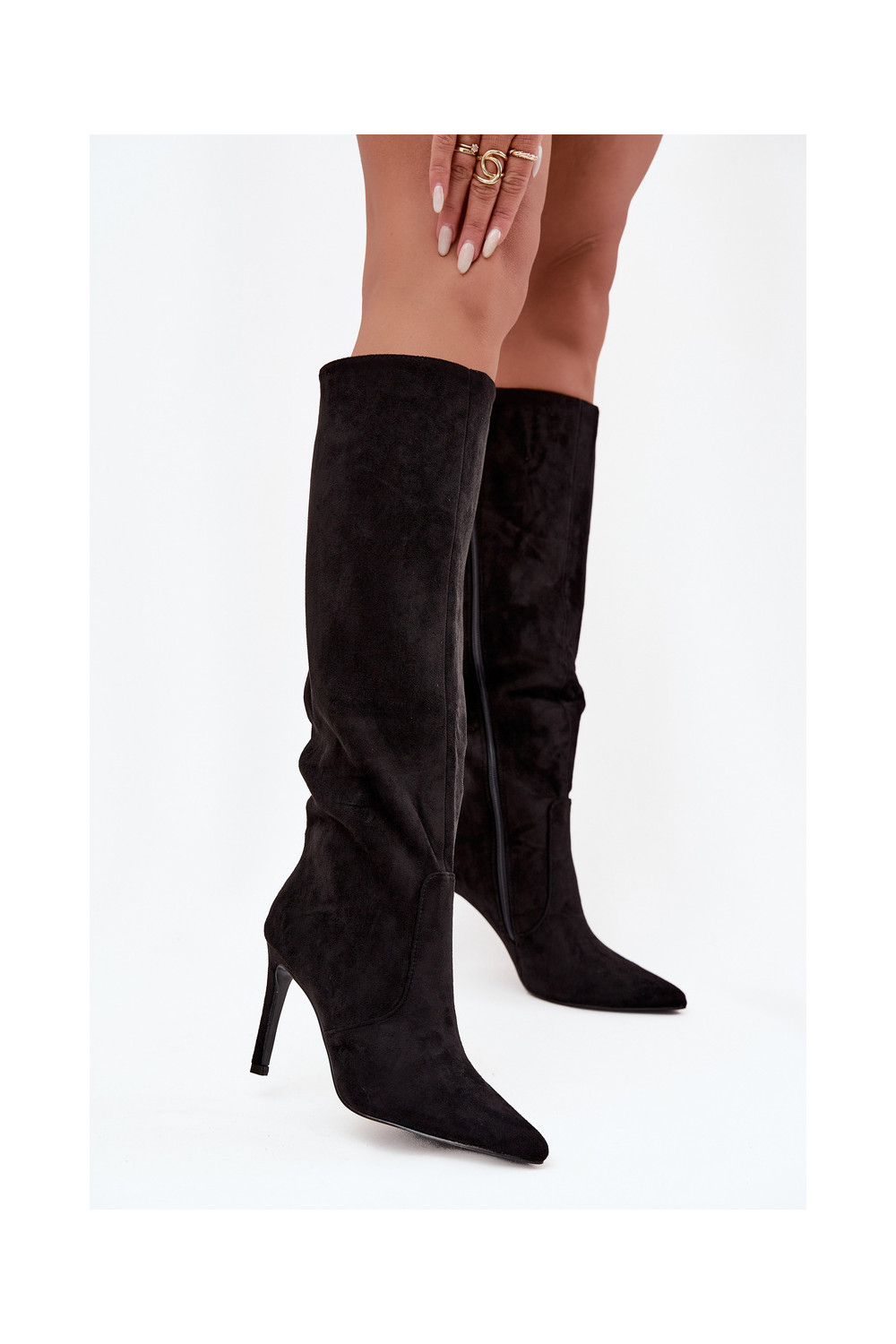 siltināti sieviešu garie zābaki ar papēdiEko zamšādau melnas krāsas Rosavine