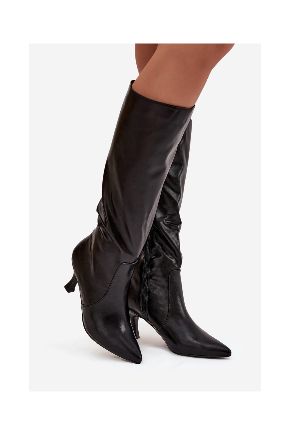 Sieviešu garie zābaki ar papēžiem un iepresētu zolīti melnā krāsā Glorine