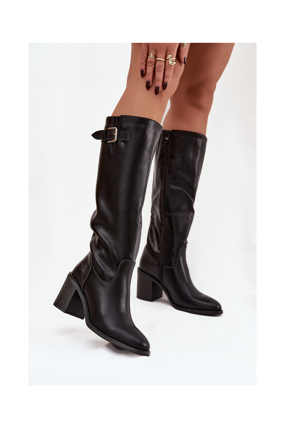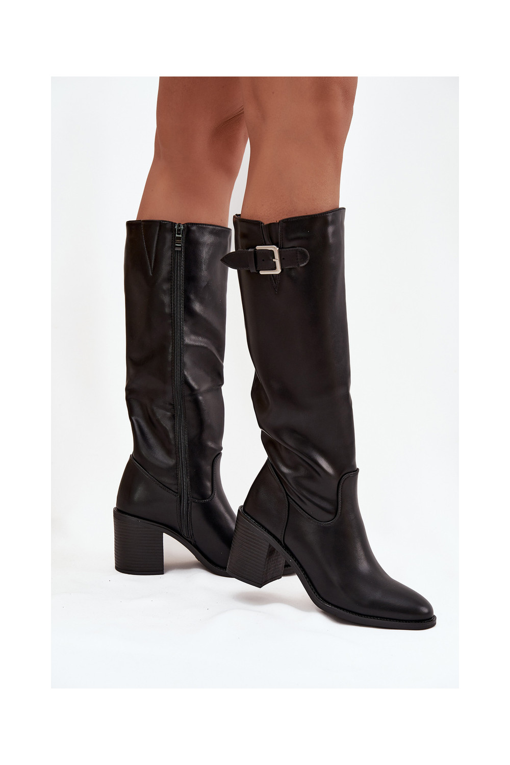sieviešu garie zābaki ar papēdi ar sprādzēm Melns Brenira