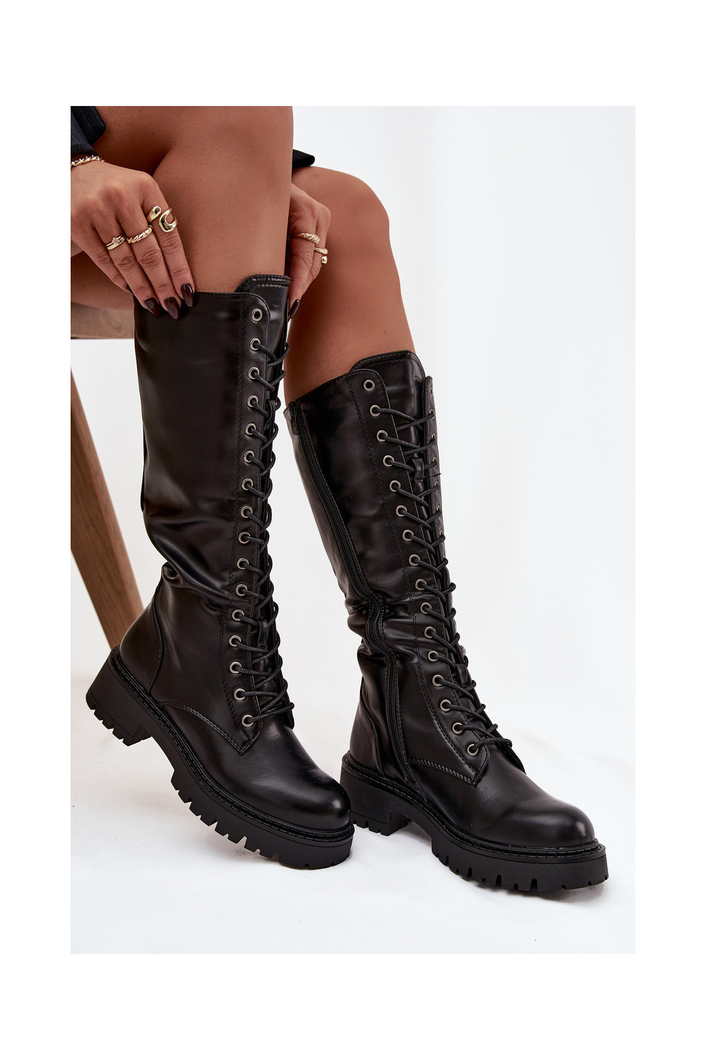 siltināti šņorējami garie zābaki Kerzi Melns Novissa