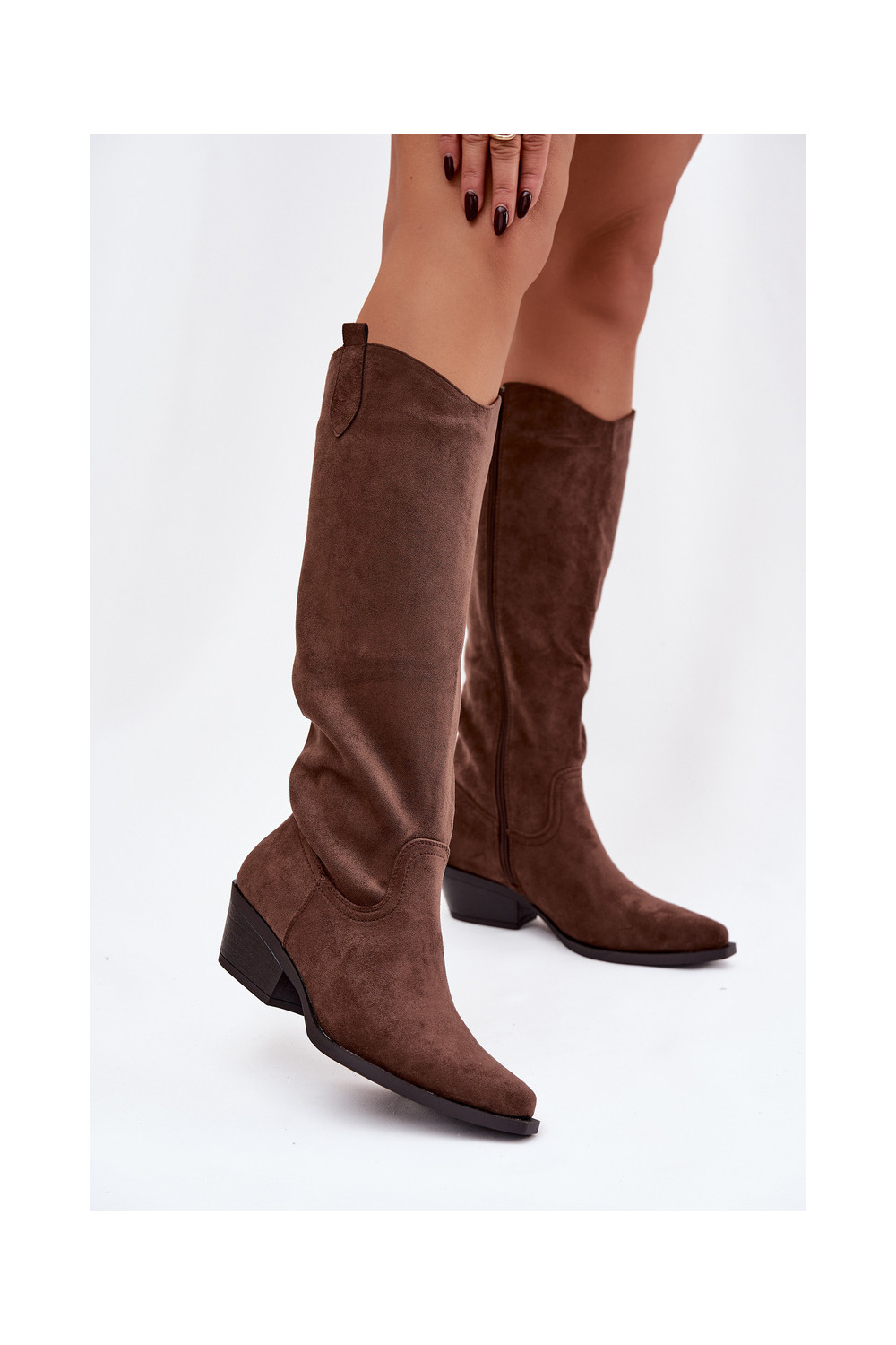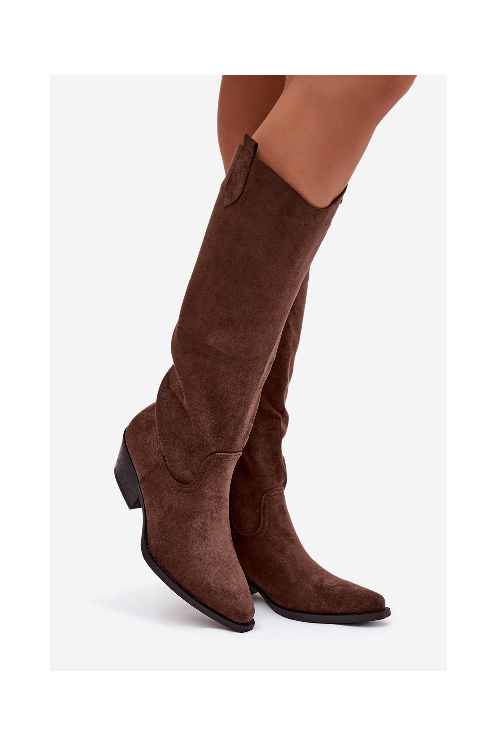 Sieviešu garie zābaki, kovboju stilā, ar papēžiem no mākslīgā zīda, brūnā krāsā Esmira