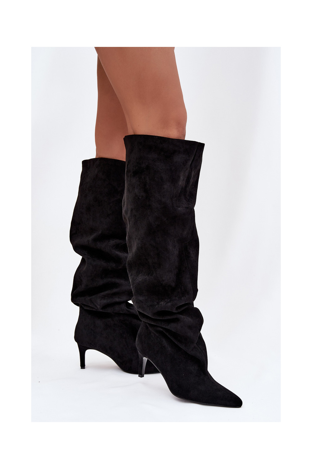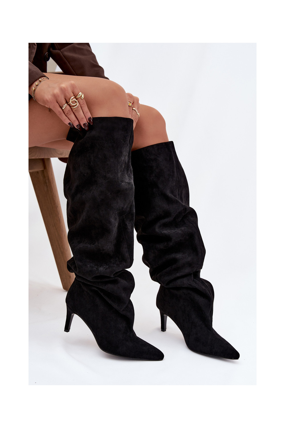 sieviešu garie zābaki ar papēdi Paslīdēt uz melnas krāsas Tā irvilla