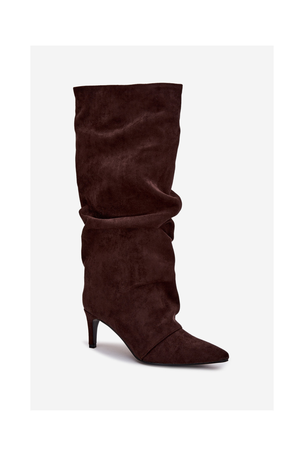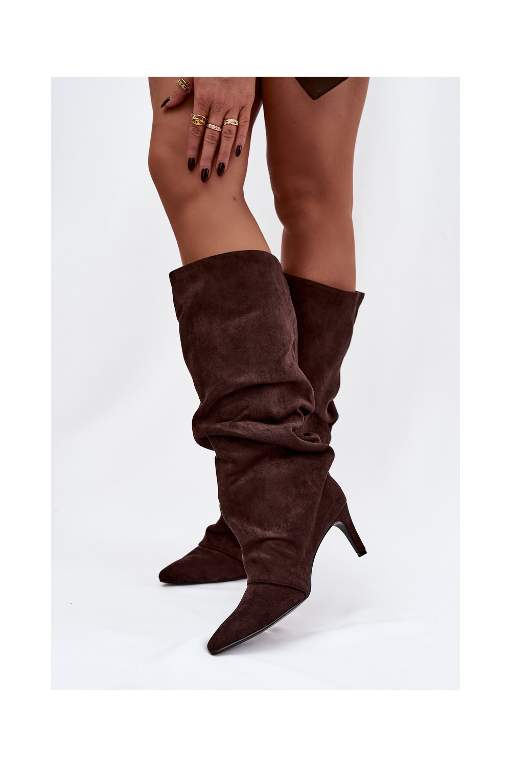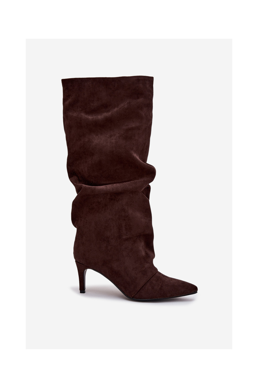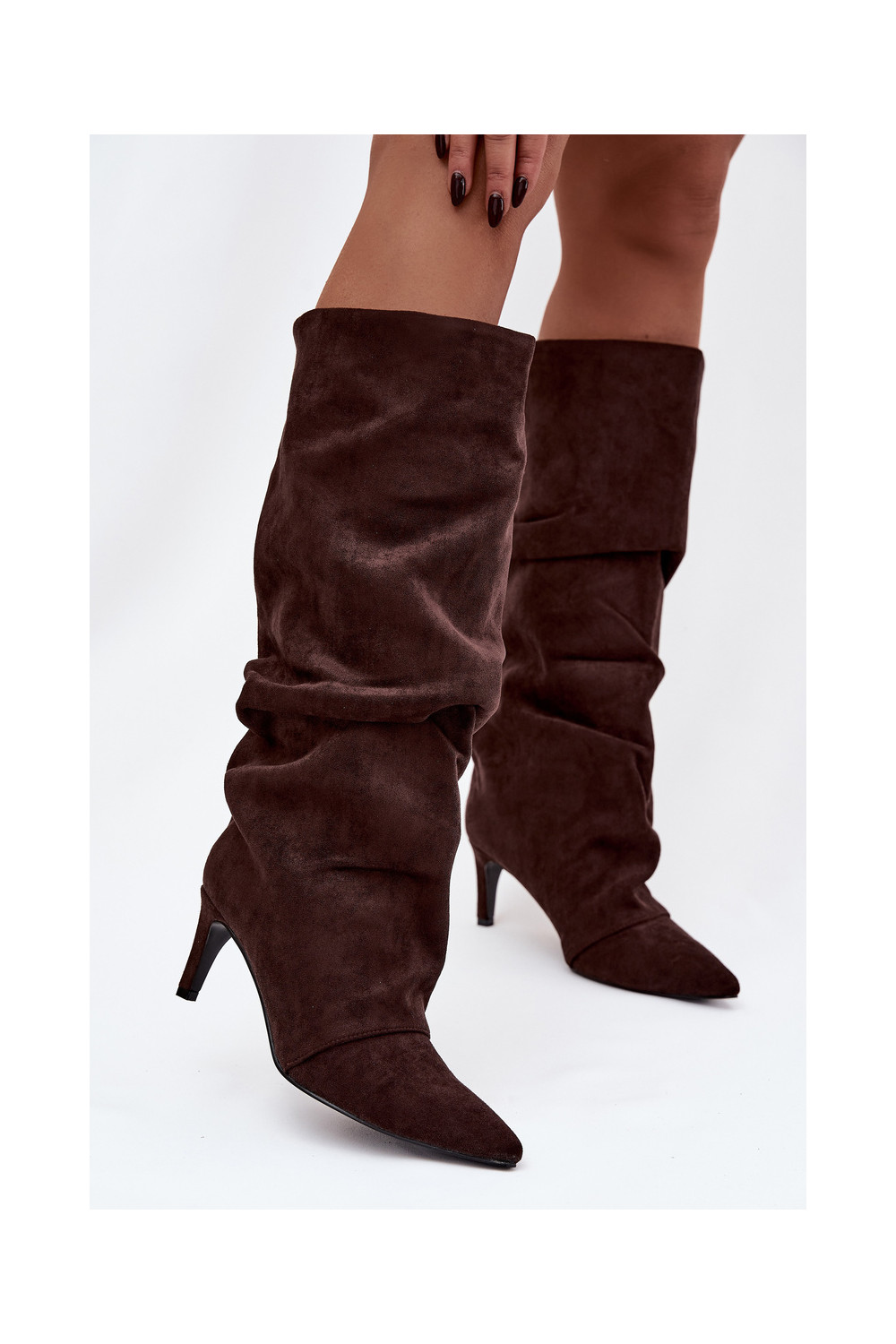 Saburzīts garie zābaki ar papēdiEko zamšādau siltināti CzekoladoIne Tā irvella