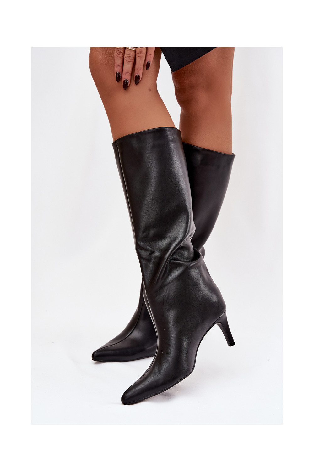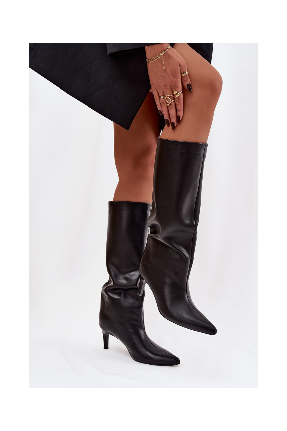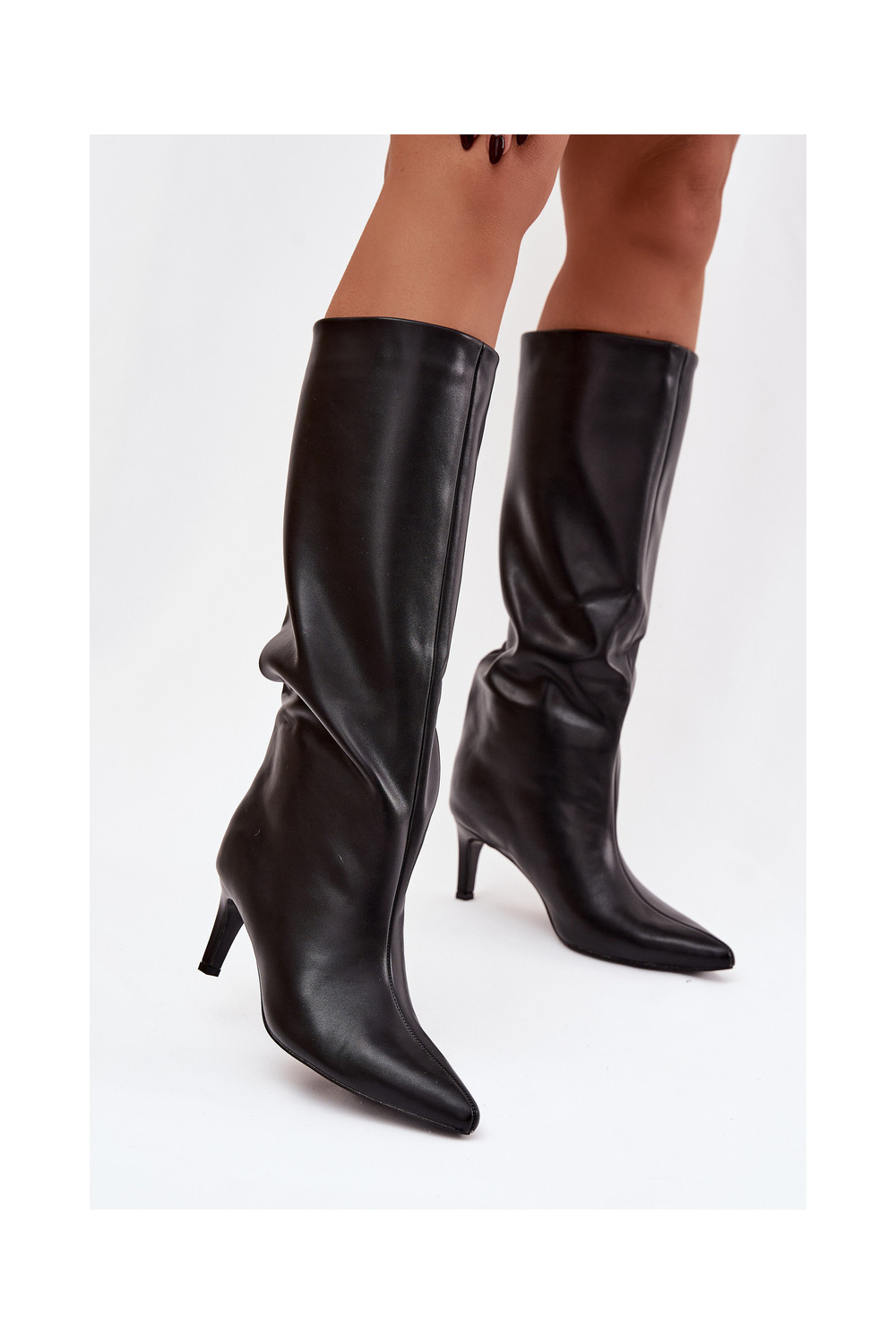 sieviešu garie zābaki Paslīdēt uz ar papēdi Ar sašūšanu melnas krāsas Olyvia