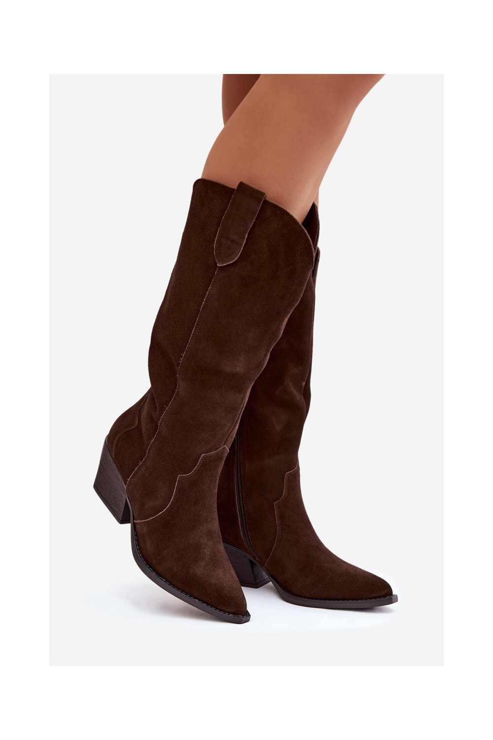 Āda zamšādas garie zābaki Kovboju zābaki Sieviešu siltināti CzekoladoIne Urselle