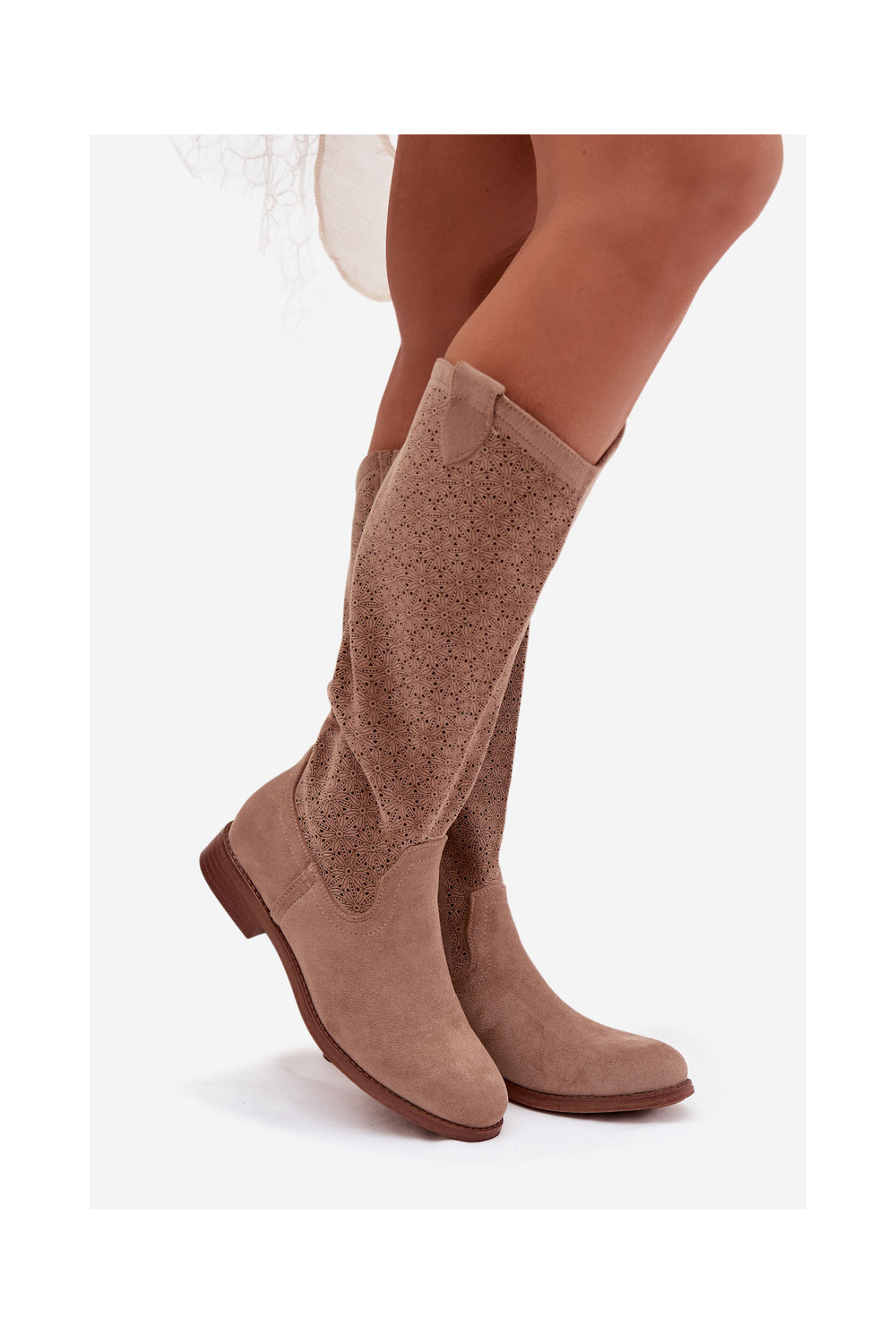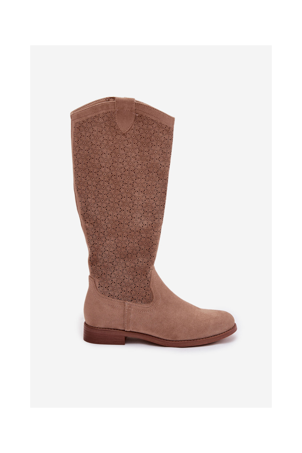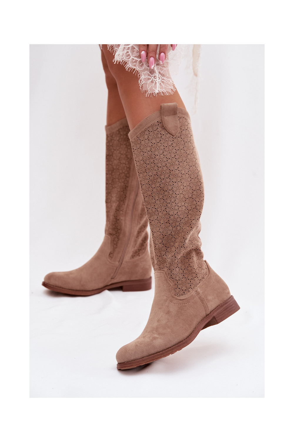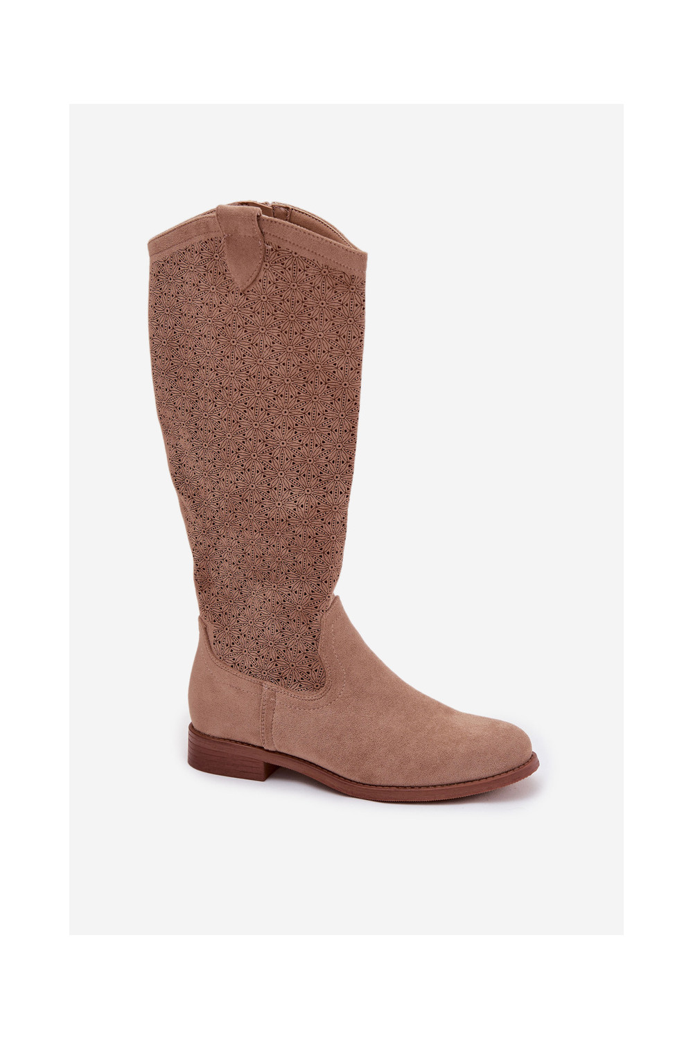 sieviešu garie zābaki Ar ažūra rakstu ar platiem papēžiem S.Barski HY61-8022 smilšu krāsas