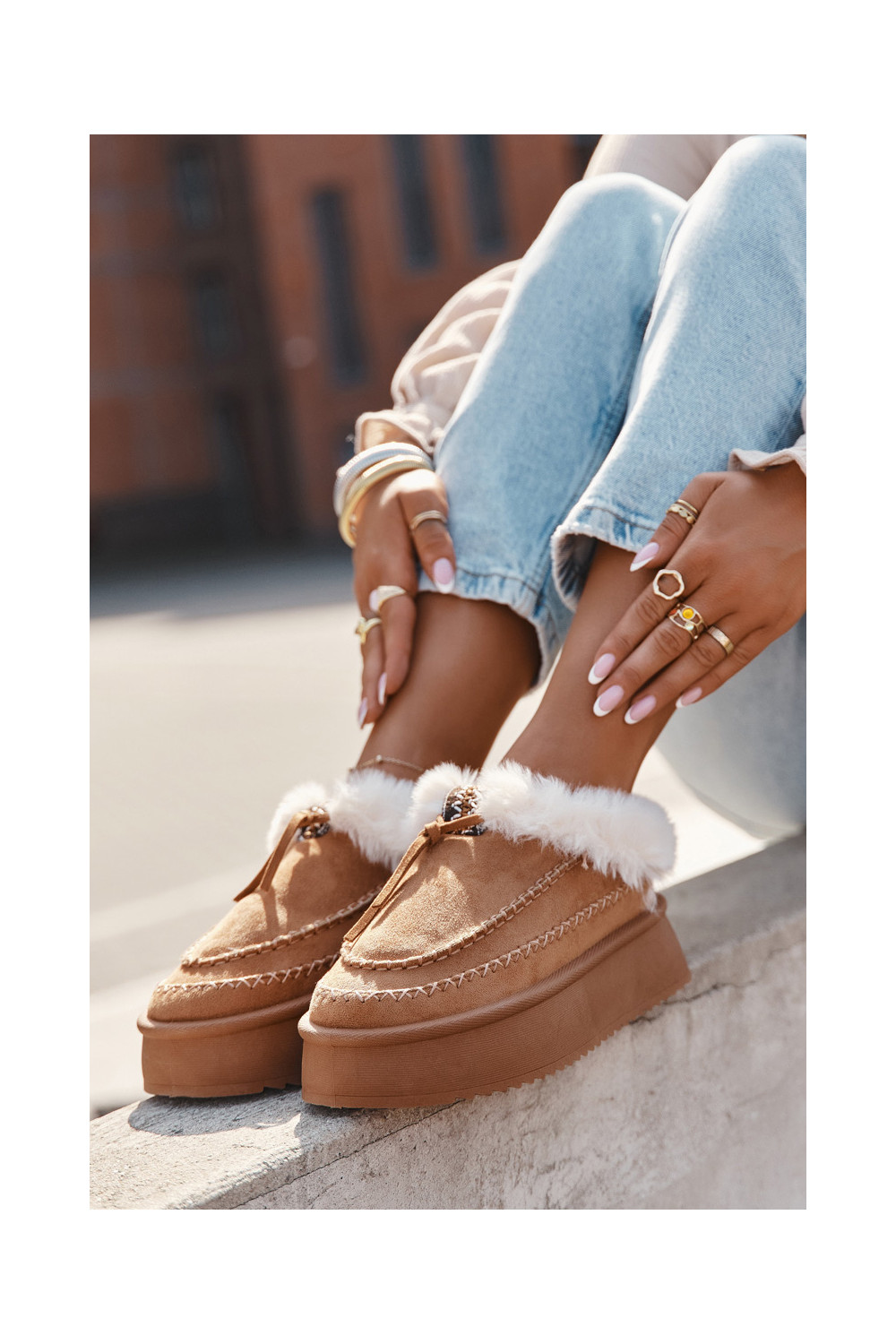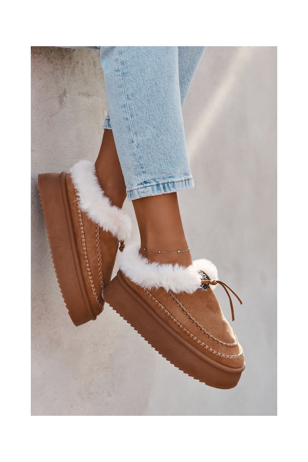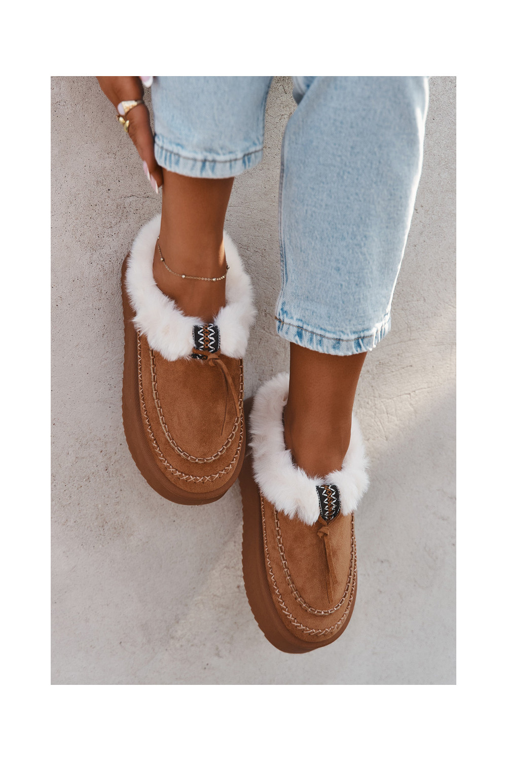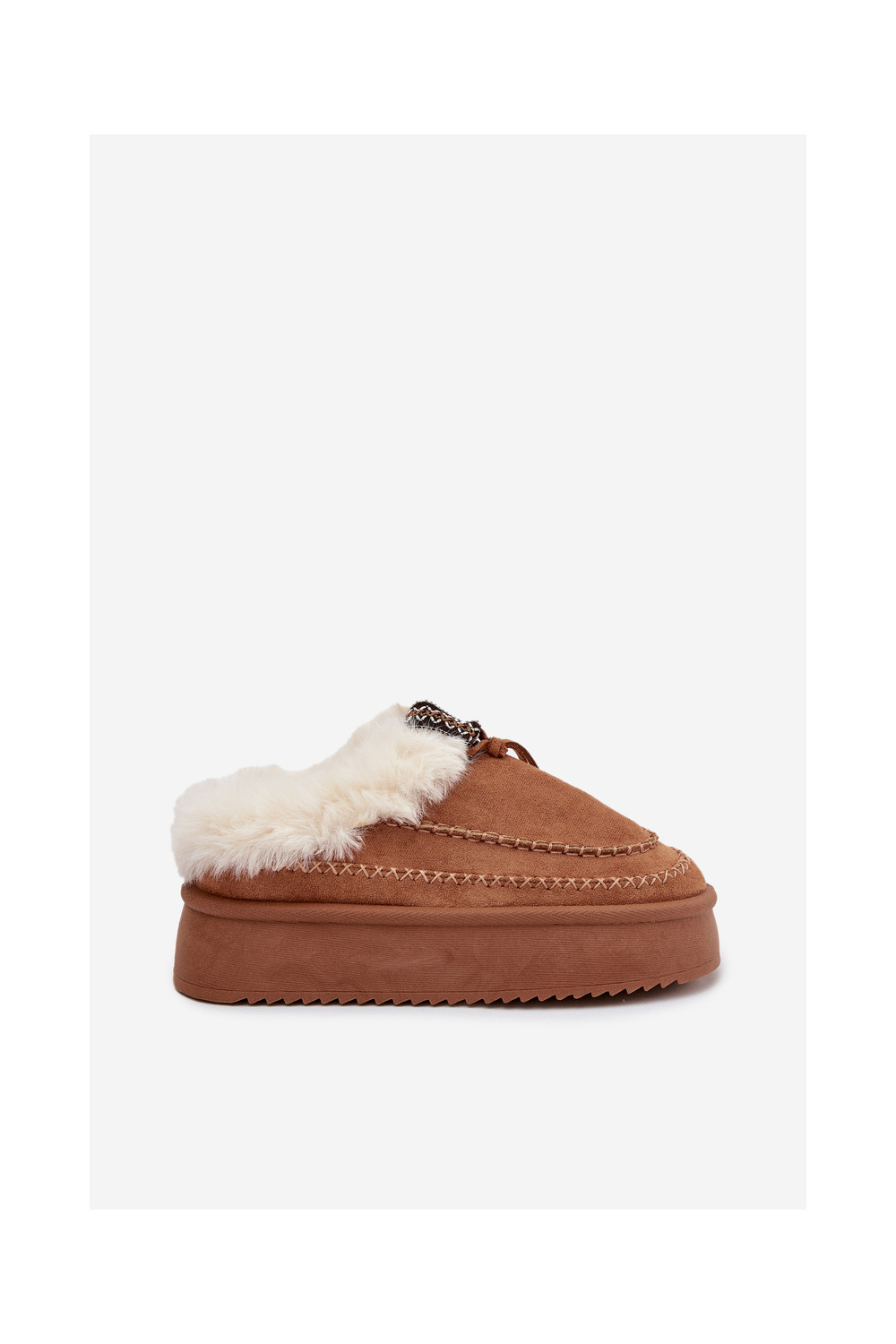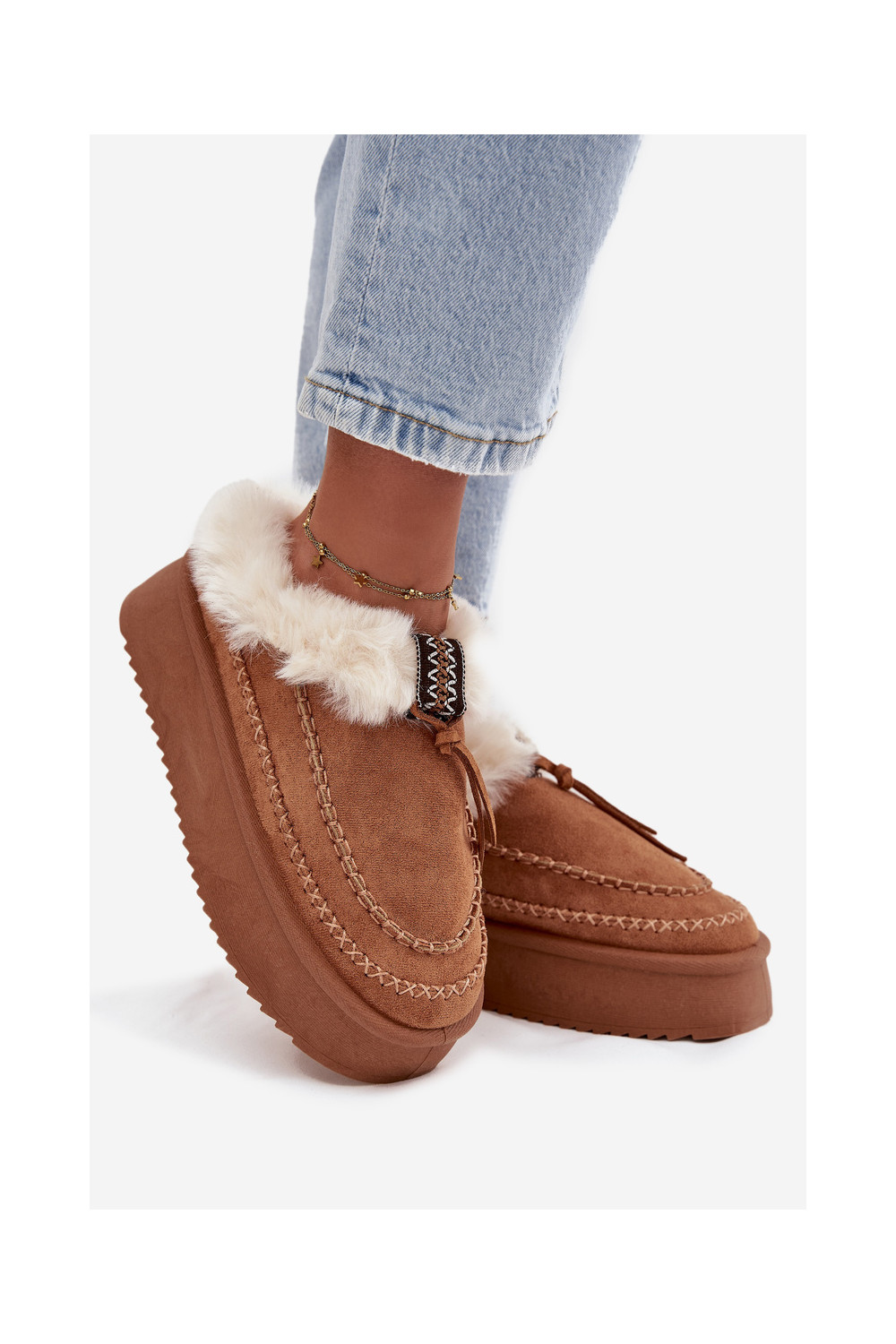 Sieviešu sniega zābaki ar platformu, kažoku un šuvēm brūnā krāsā "Kellina"