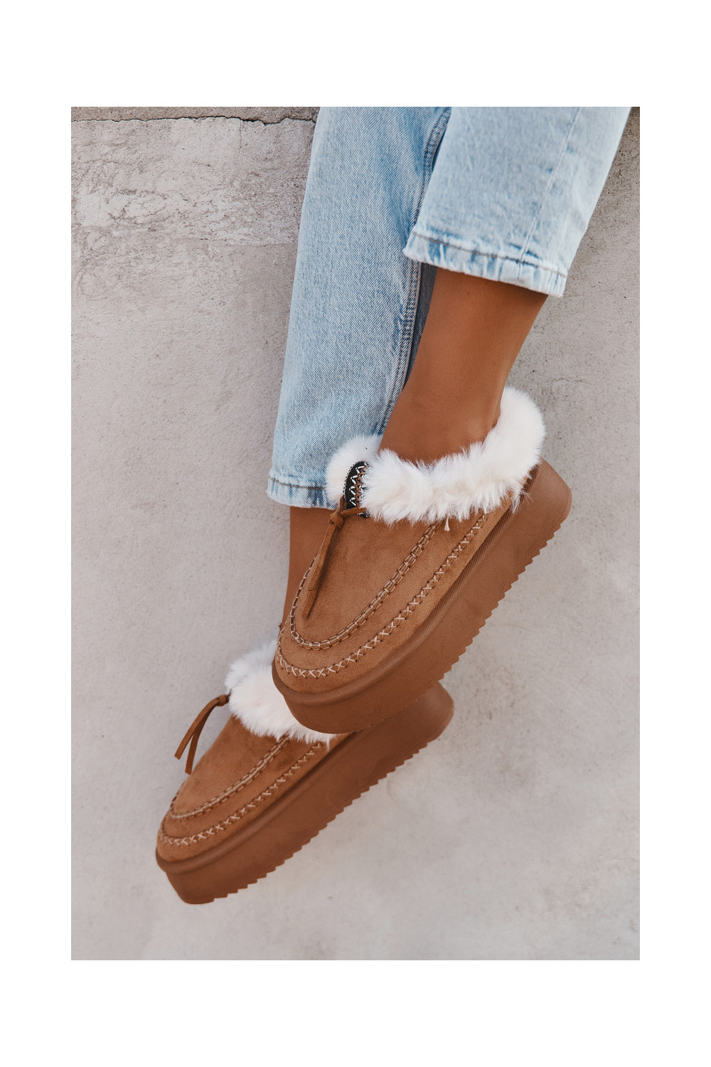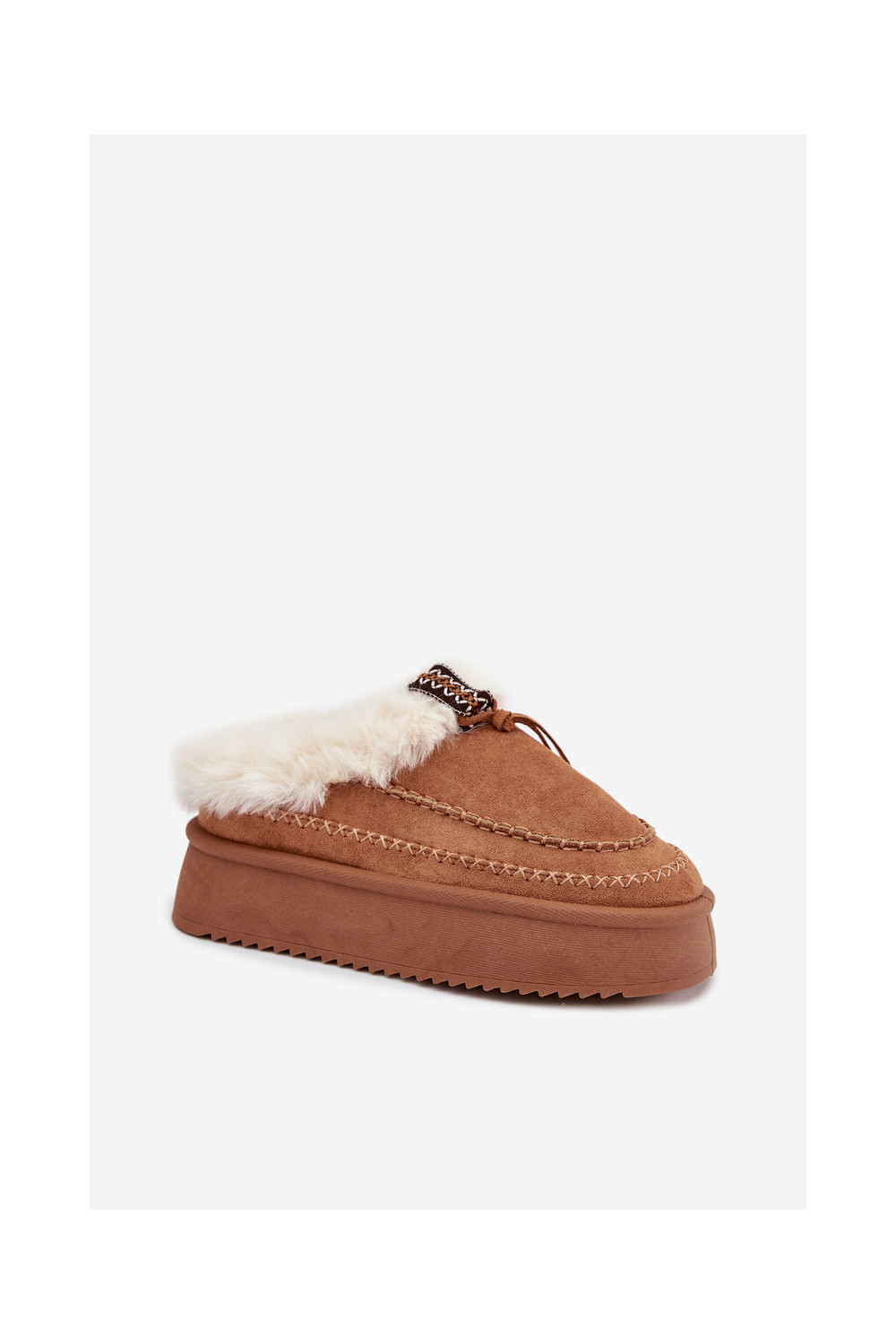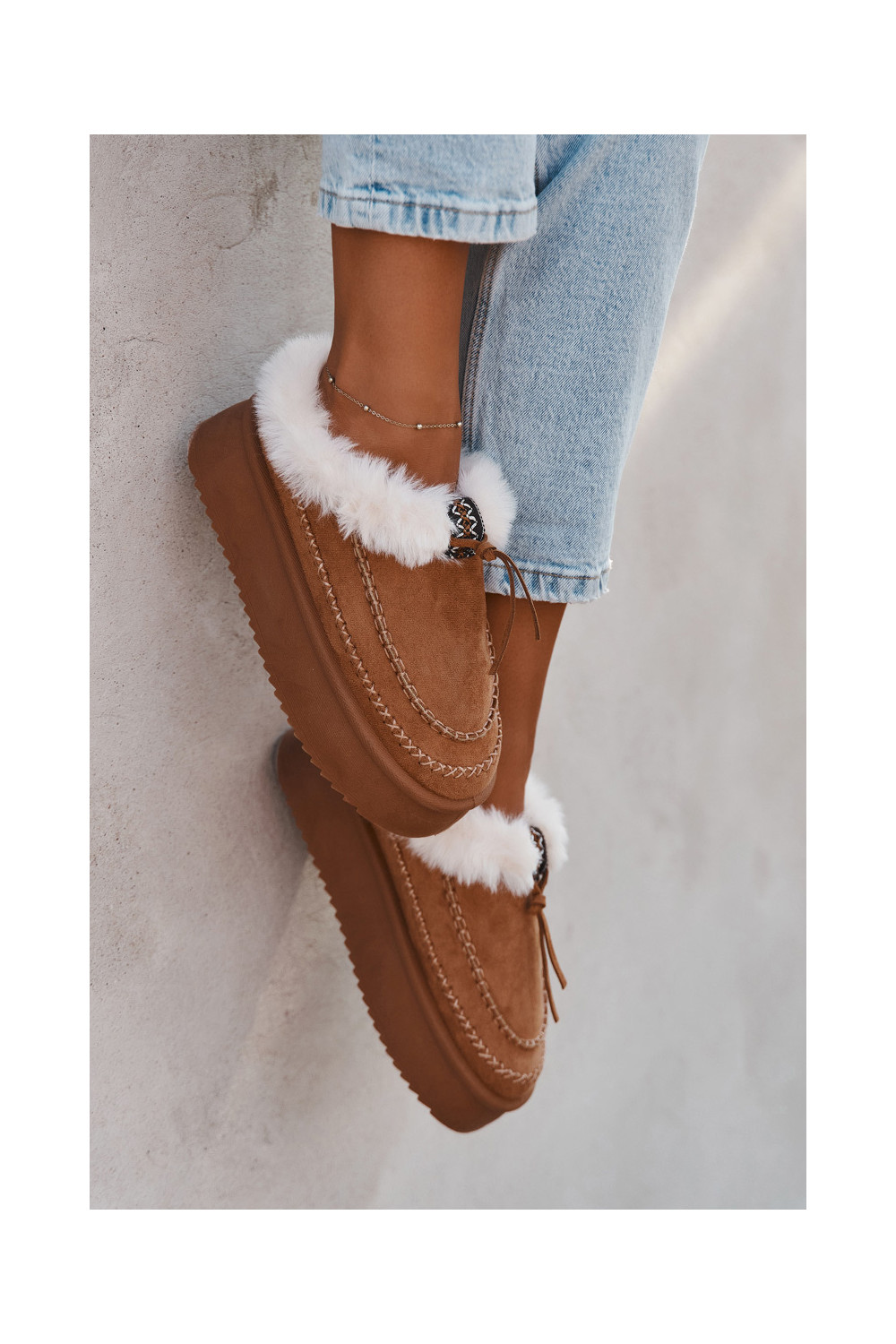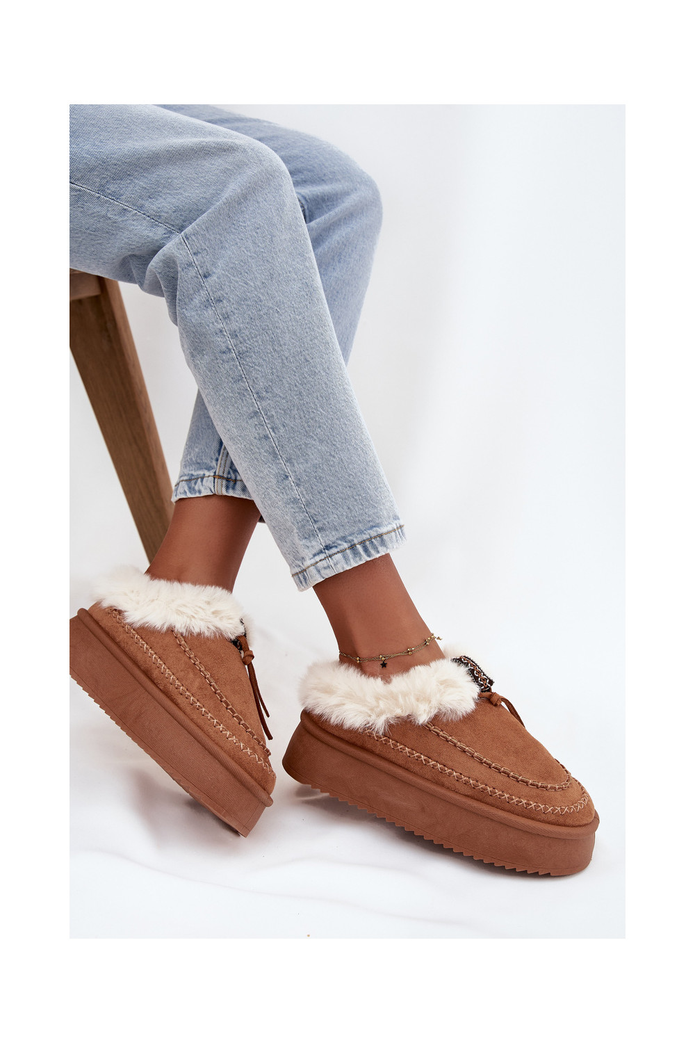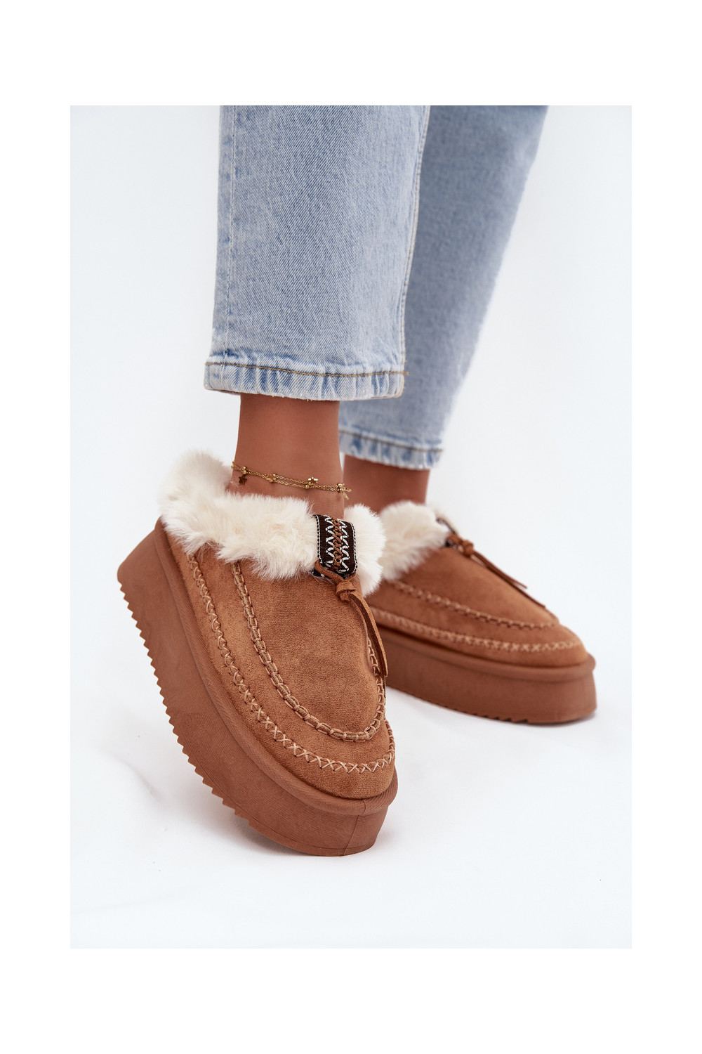 Sieviešu sniega zābaki ar platformu, kažoku un šuvēm brūnā krāsā "Kellina"