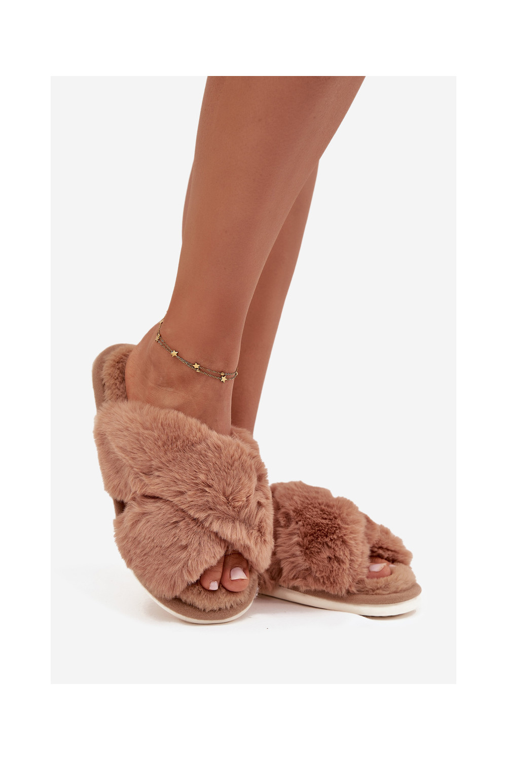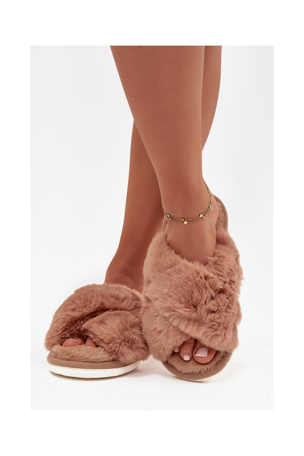 Brūnas krāsas sieviešu čības ar kažokādu un savērptām lencēm Quenelle