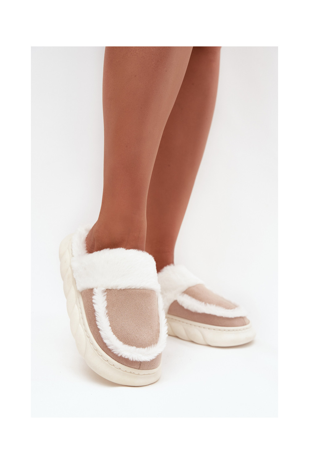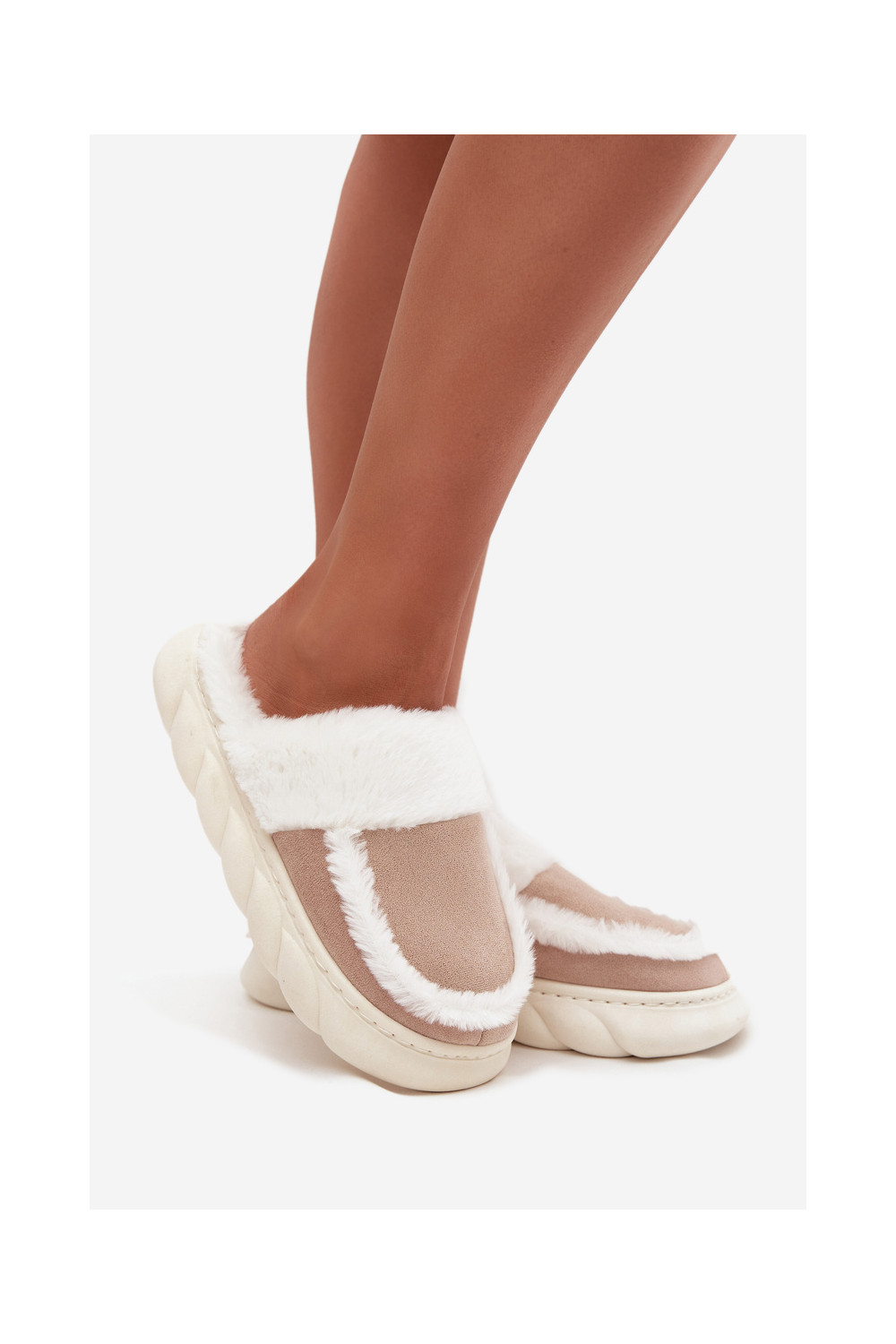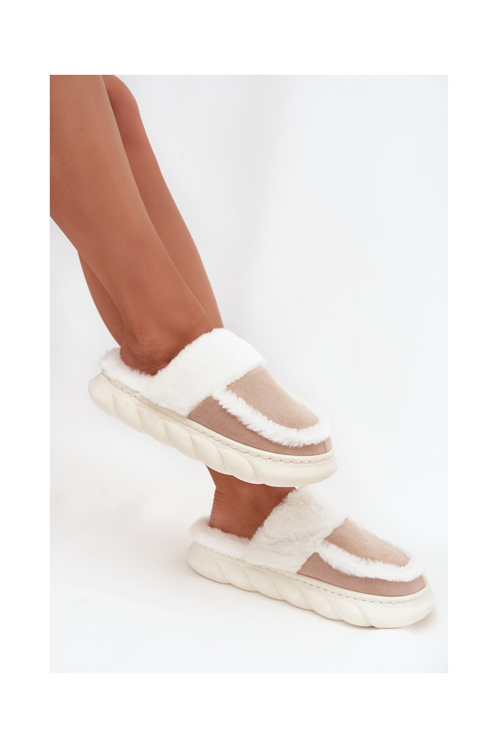Smilšu krāsas sieviešu čības uz bieza pamatnes ar kažokādu „Vinceza 19952"
