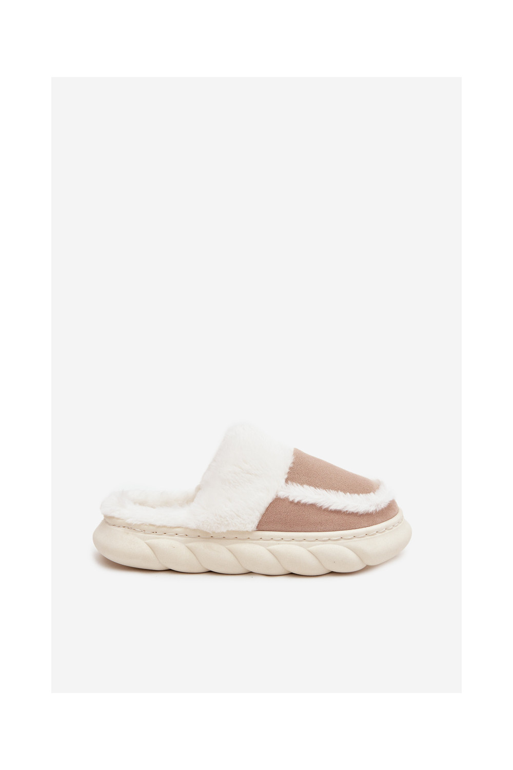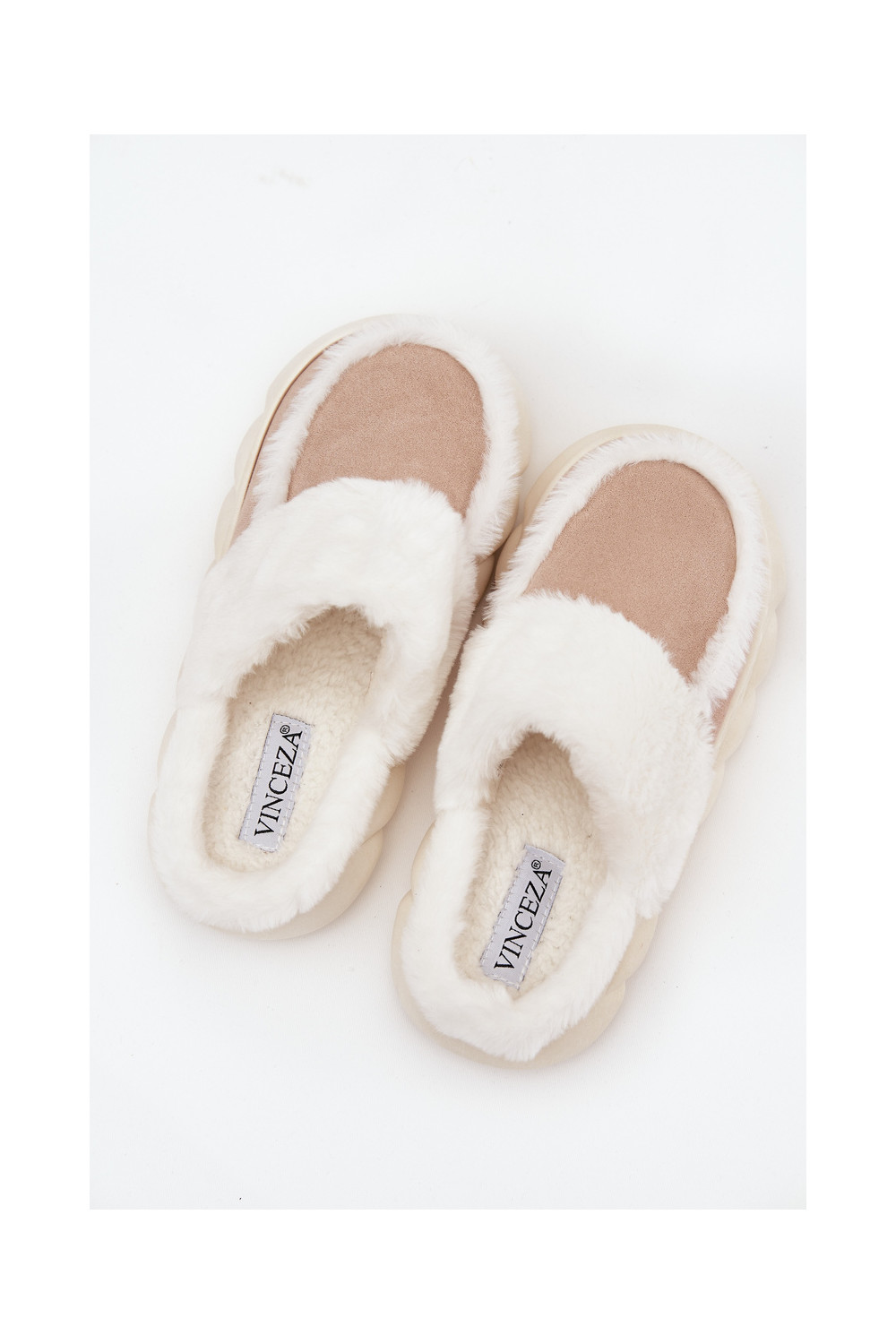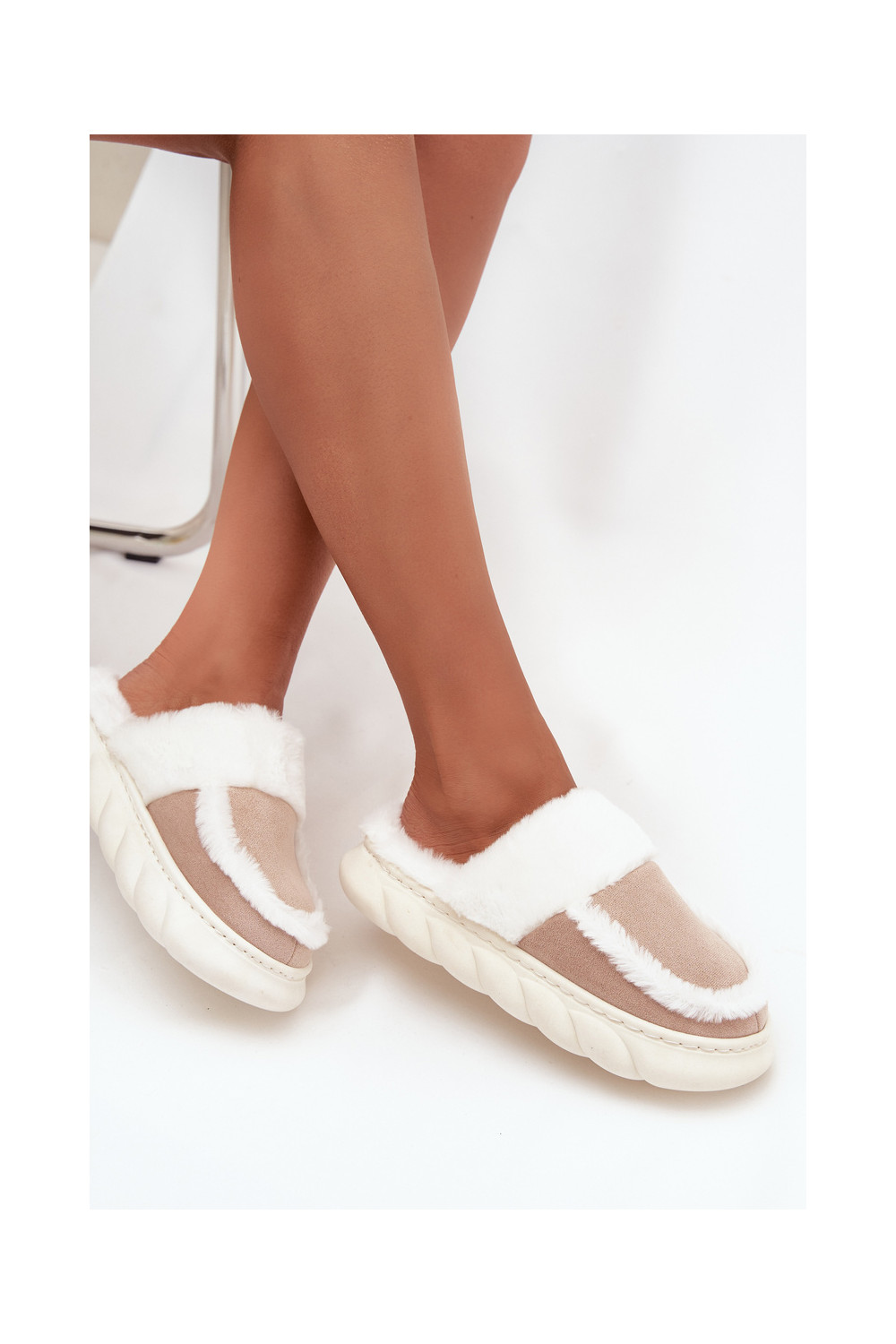 Smilšu krāsas sieviešu čības uz bieza pamatnes ar kažokādu „Vinceza 19952"