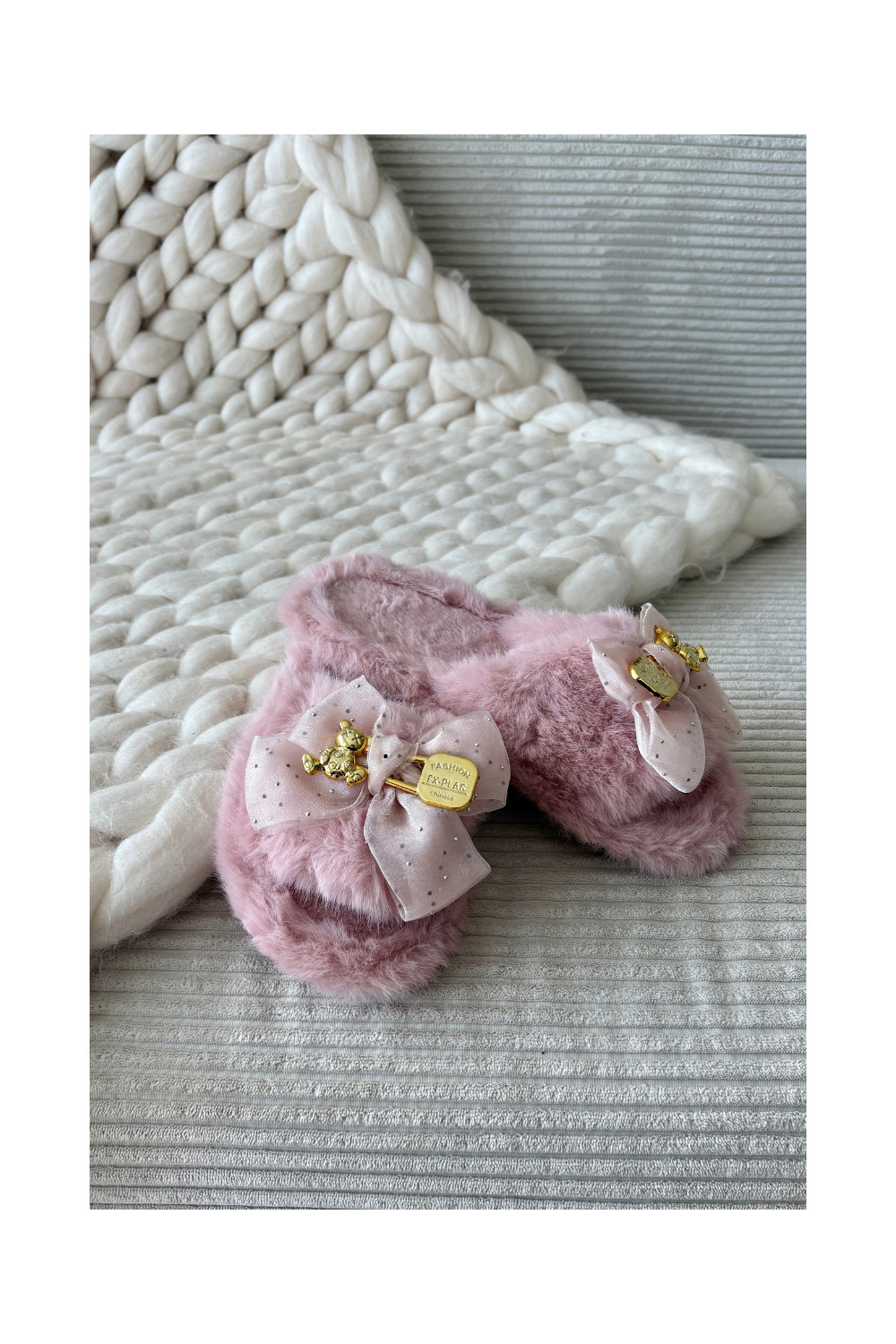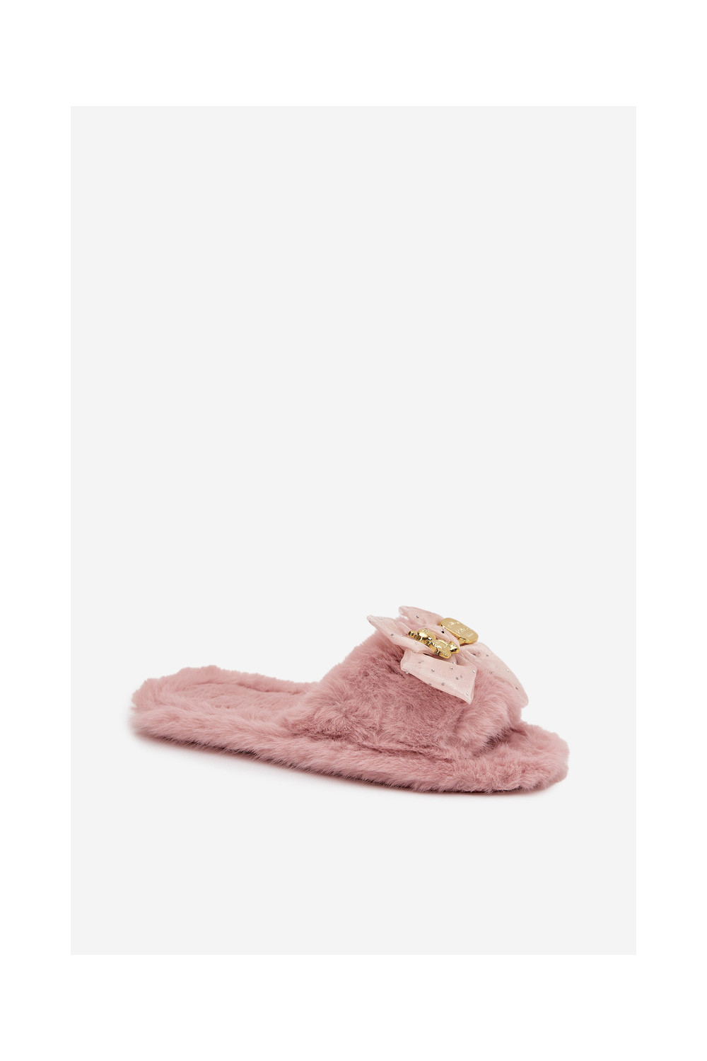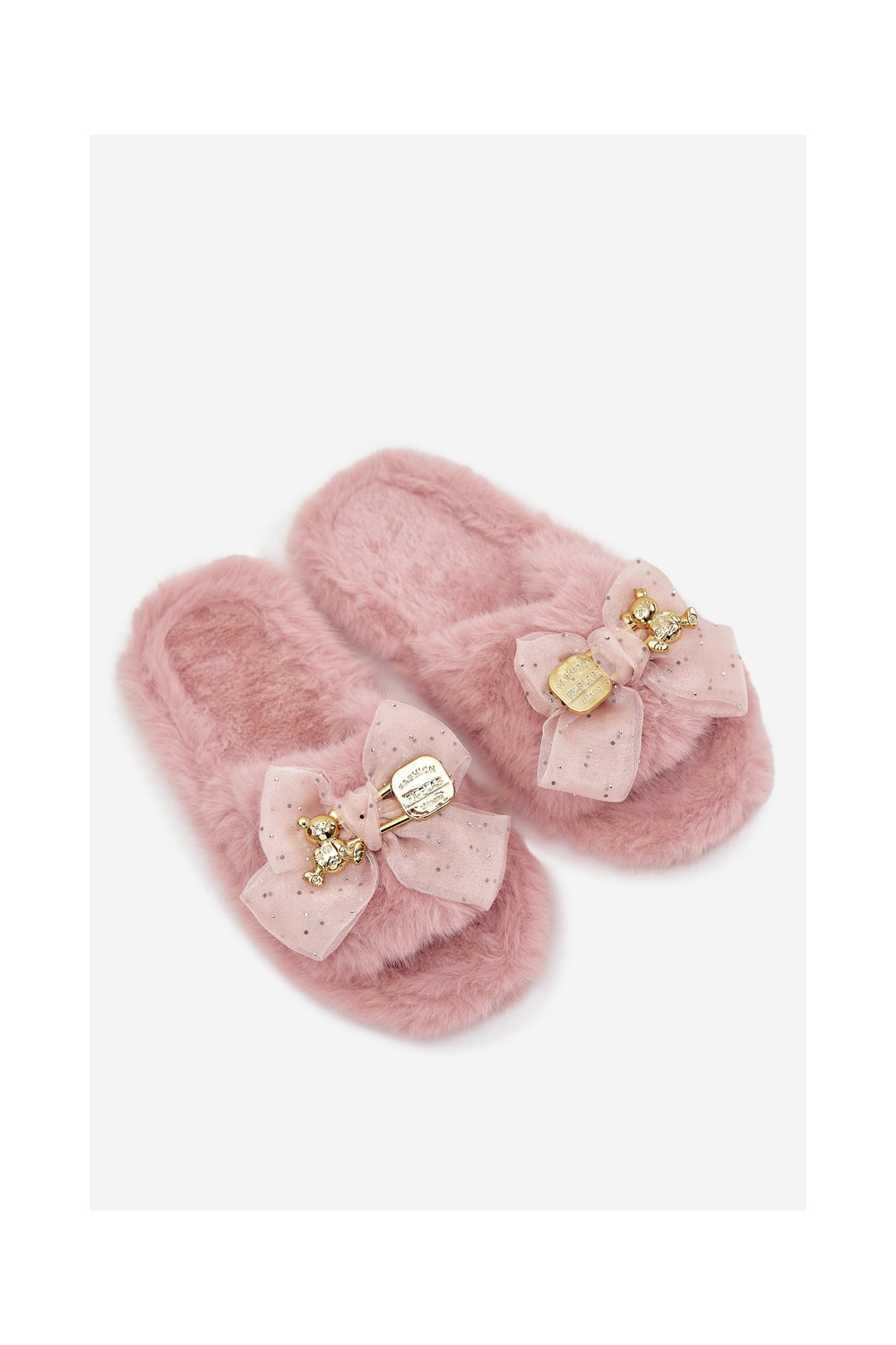 Rozā sieviešu čības ar kažokādu, lentītēm un zelta rotājumu „Nolara"