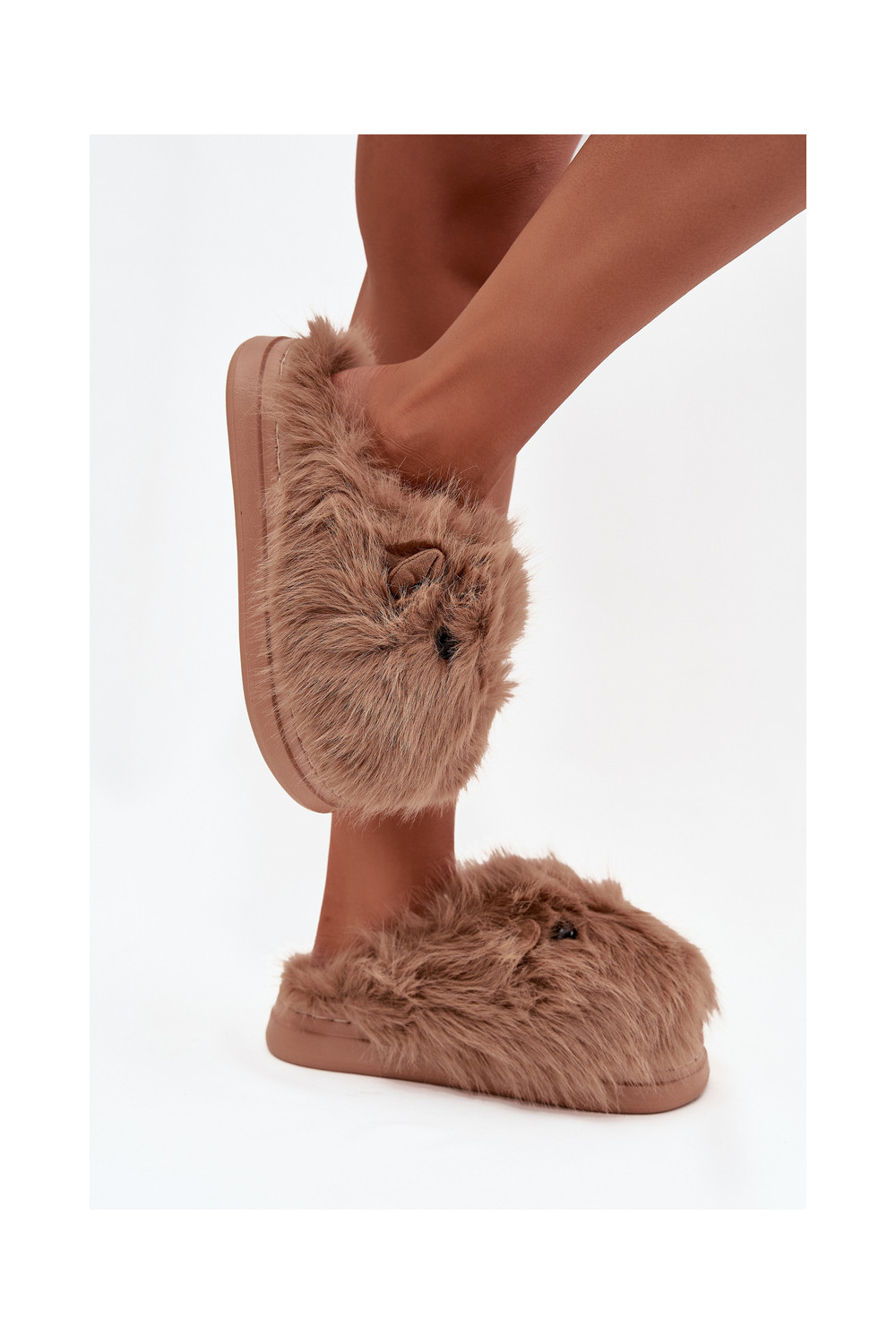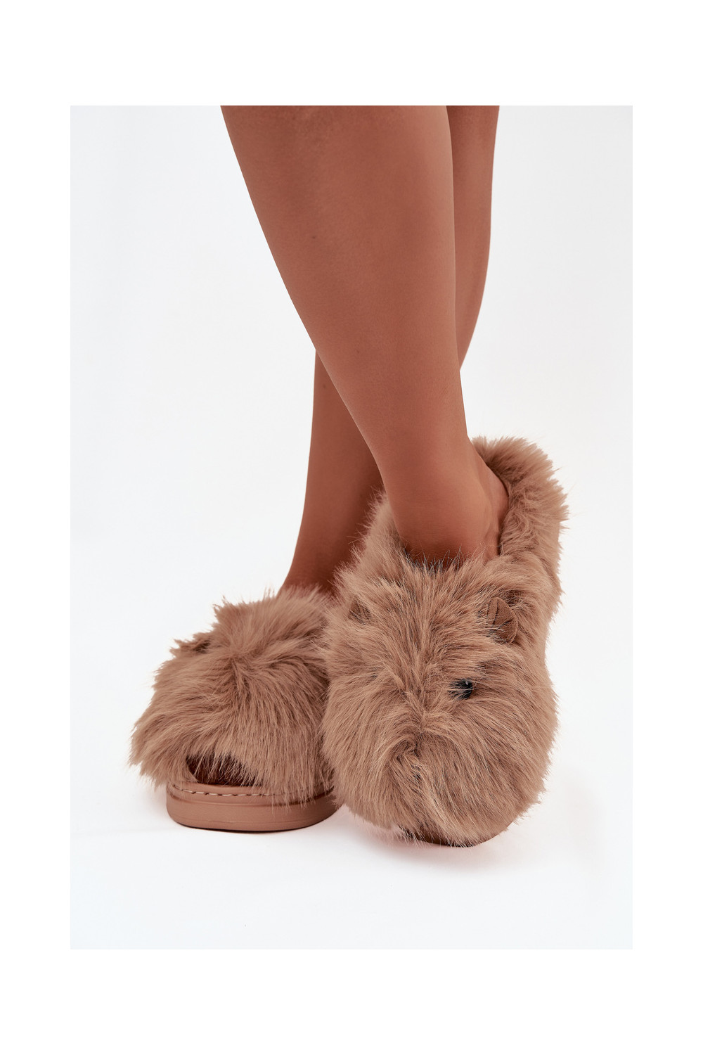 Sieviešu kažokādas čības „Pravelle" haki krāsā