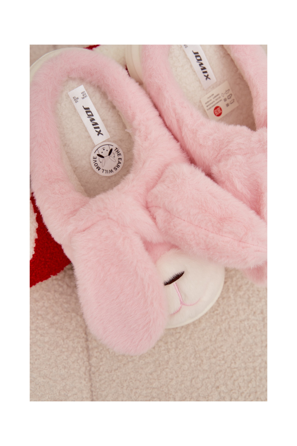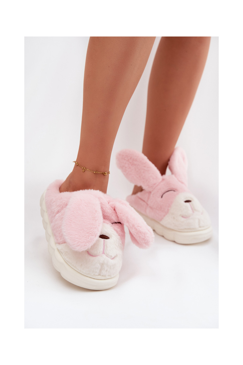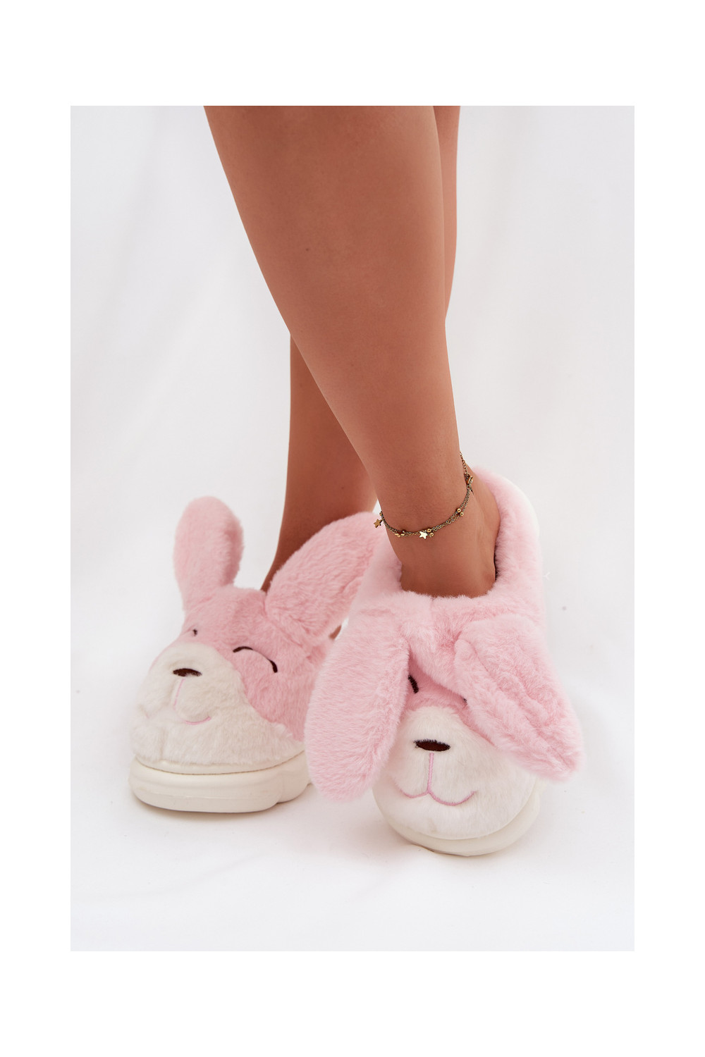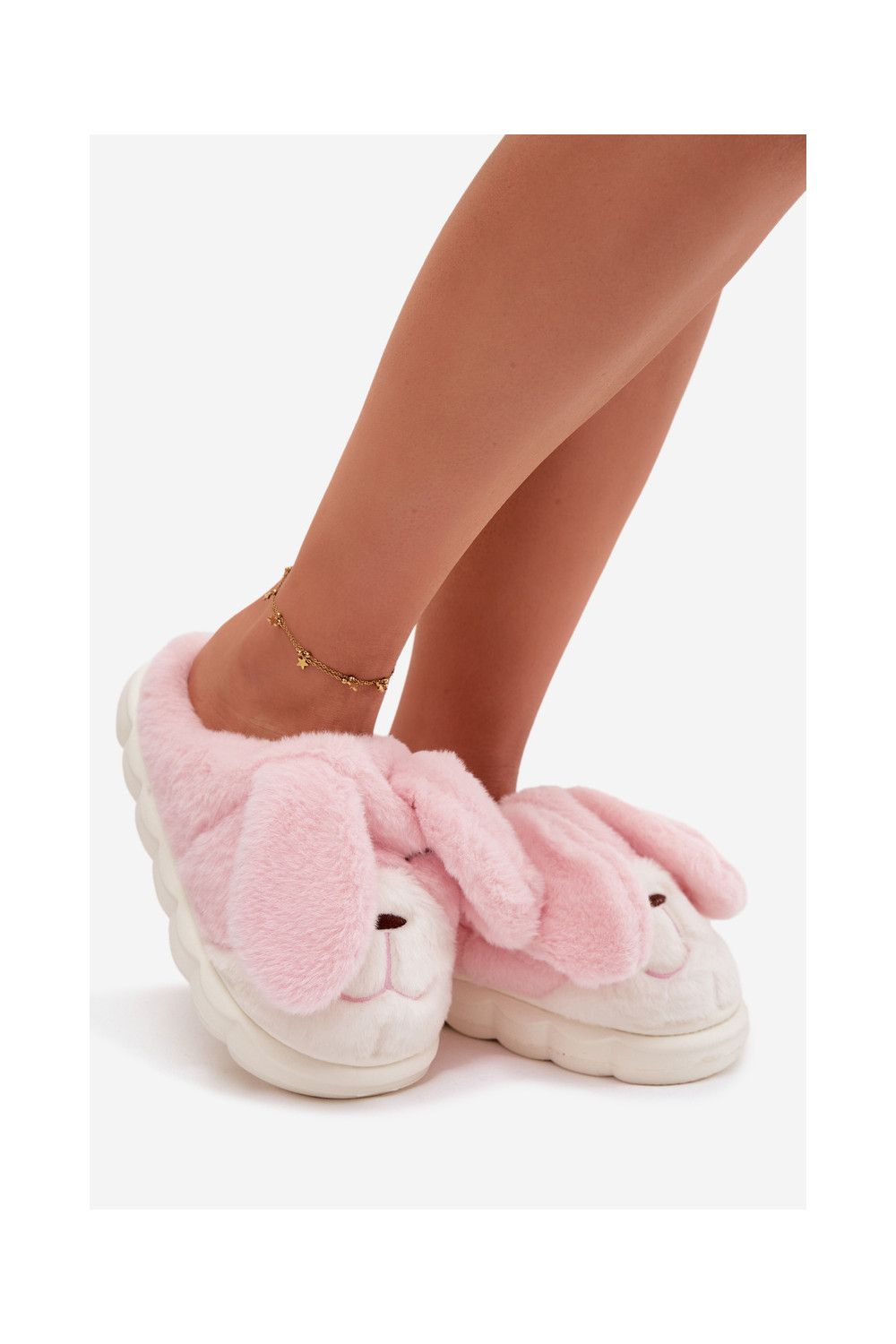 Rozā sieviešu čības ar kažokādu un zaķiem Faylen