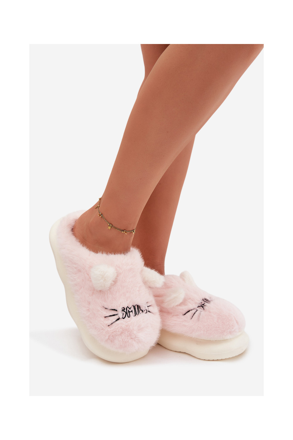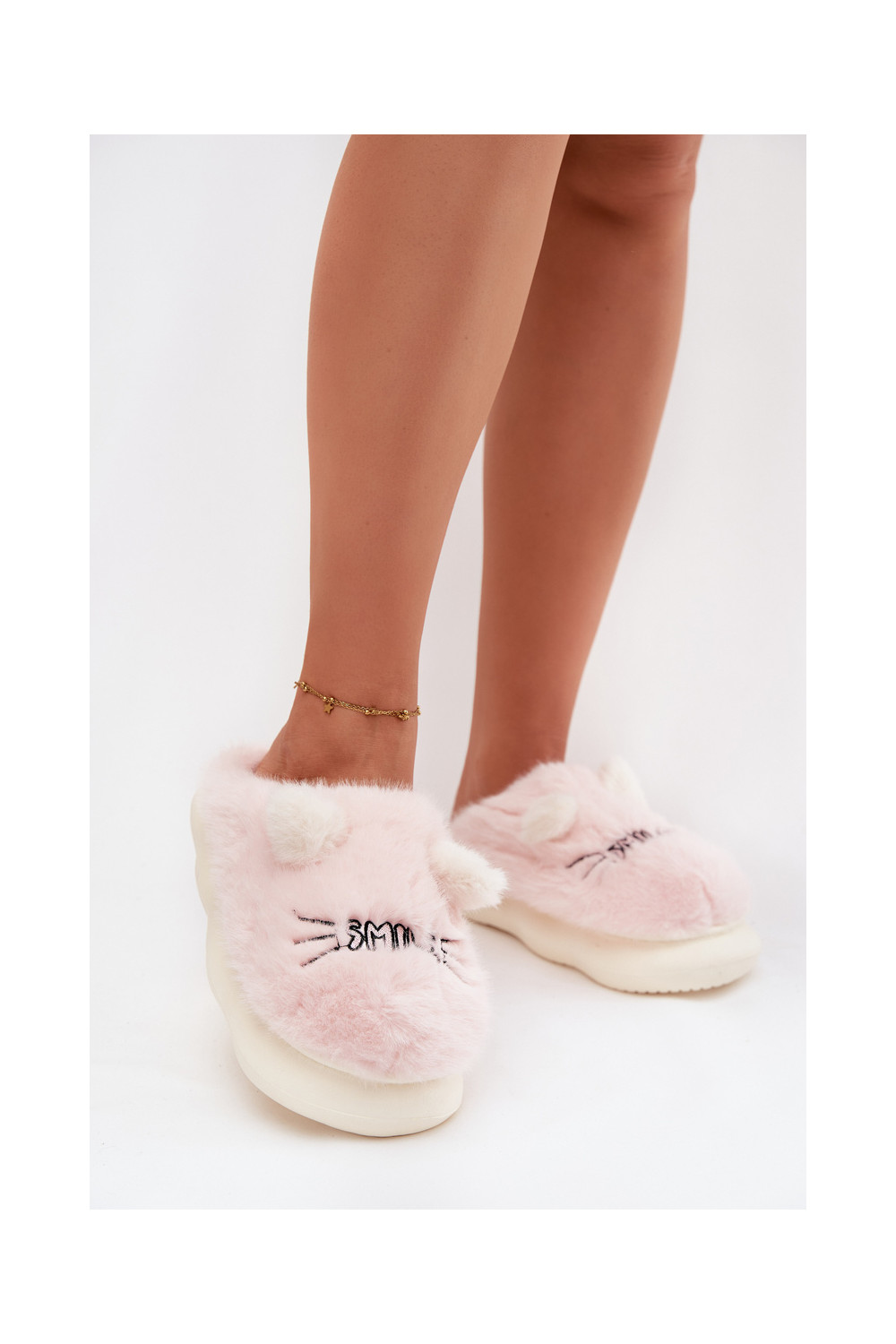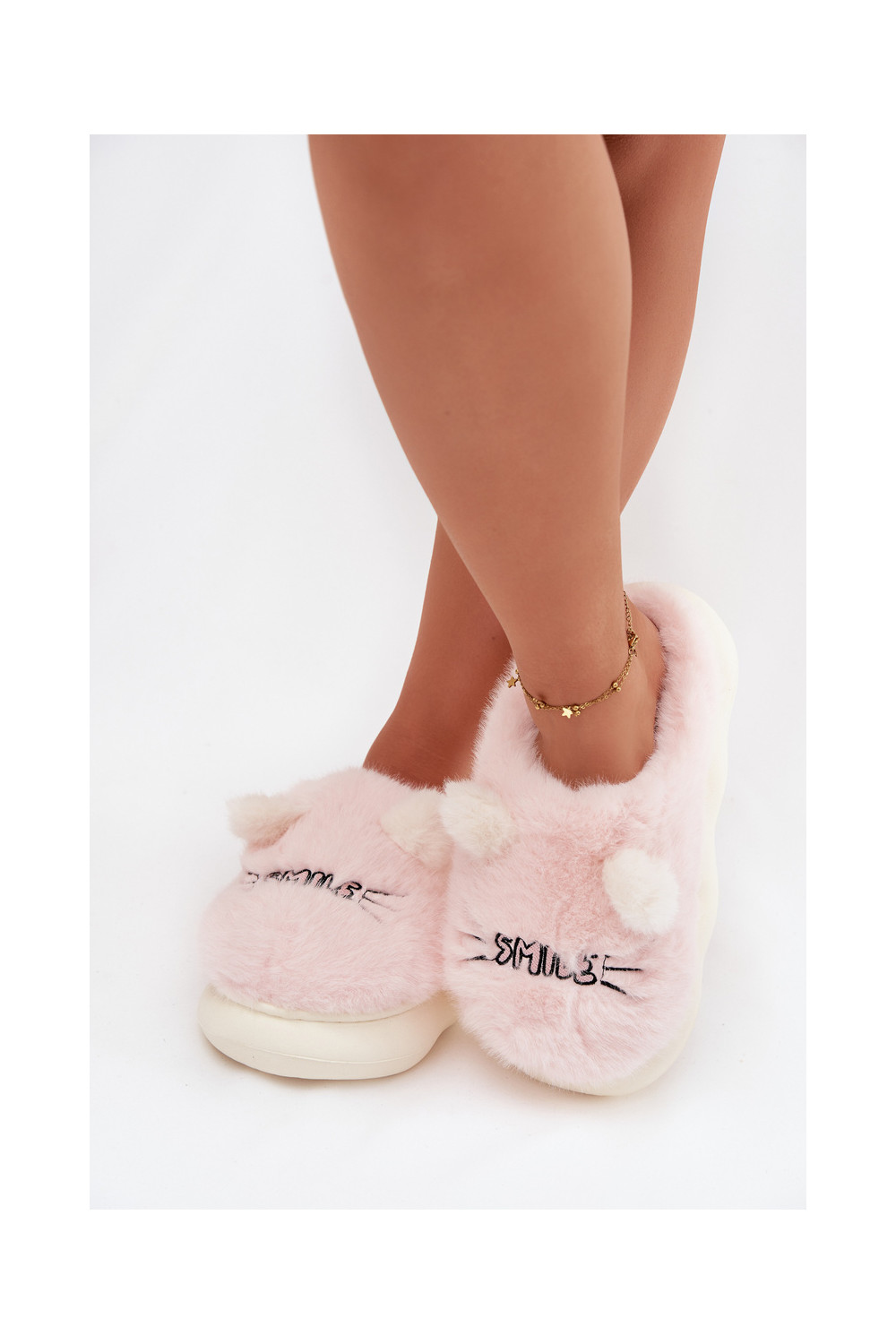 Rozā sieviešu čības ar kažokādu un smaidu Lexira