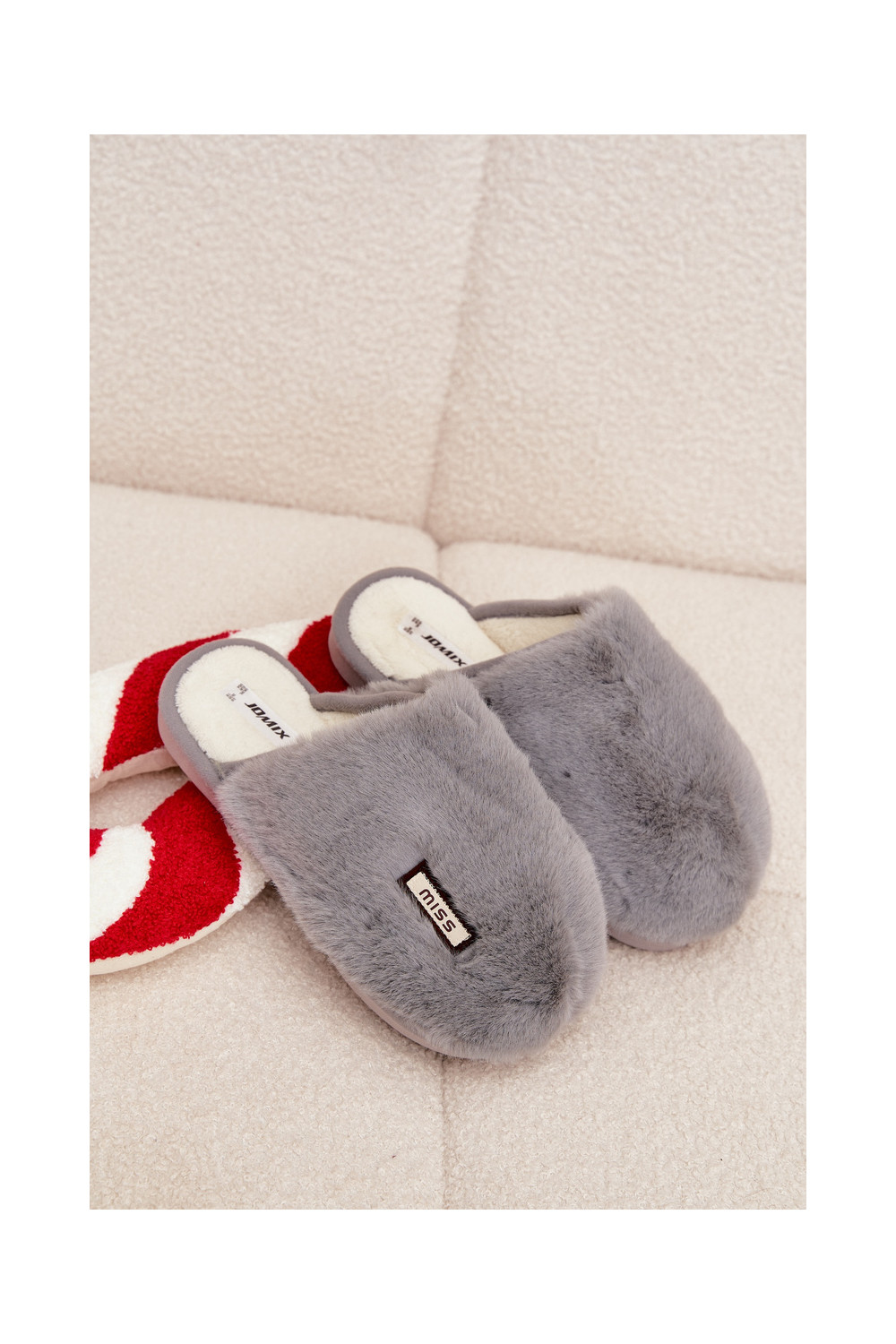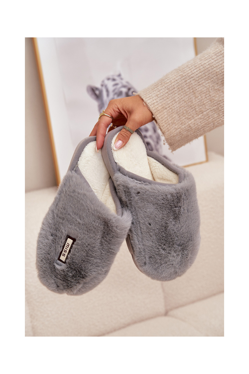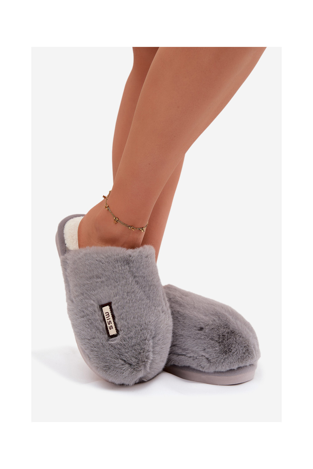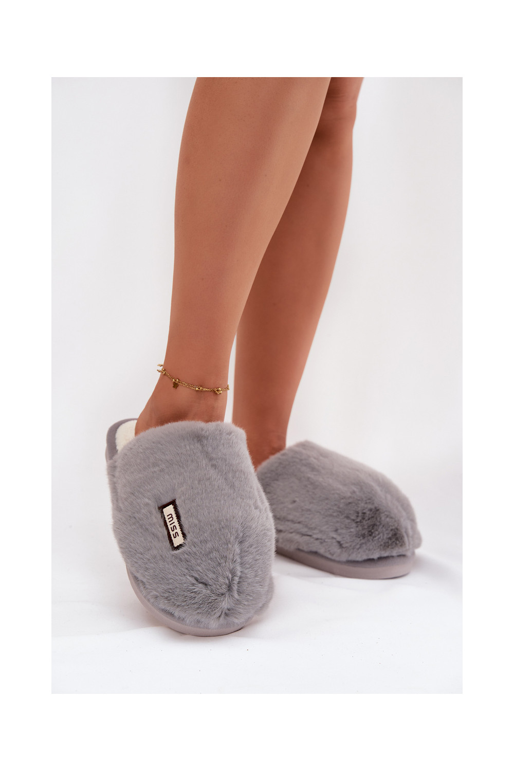 Pelēkas sieviešu čības ar kažokādu Belinna
