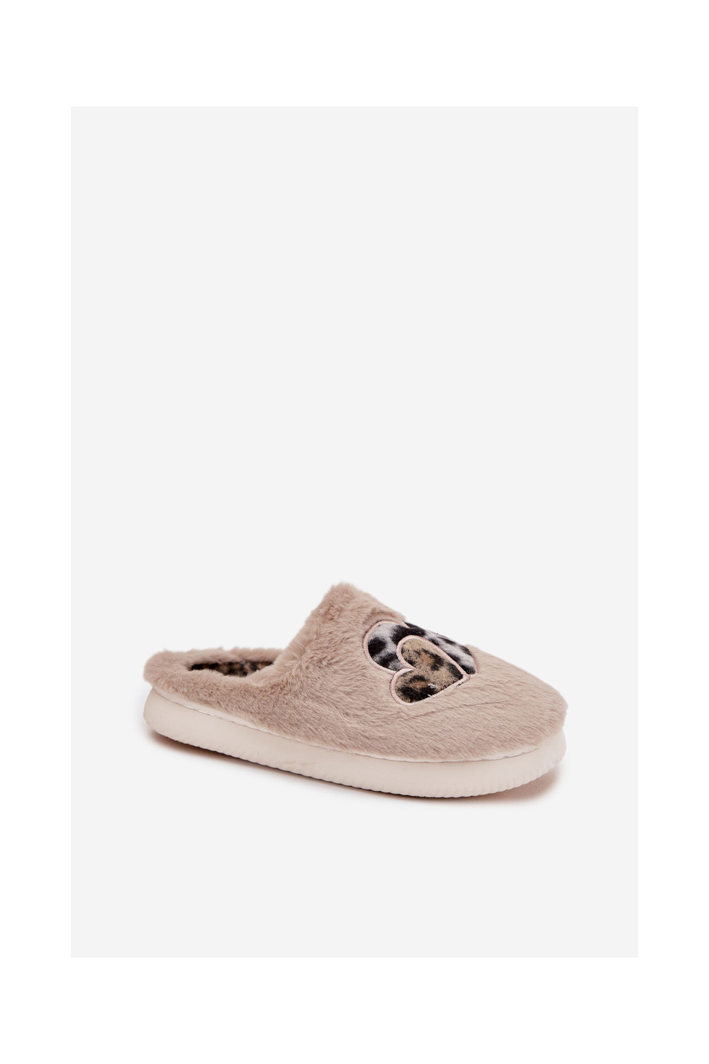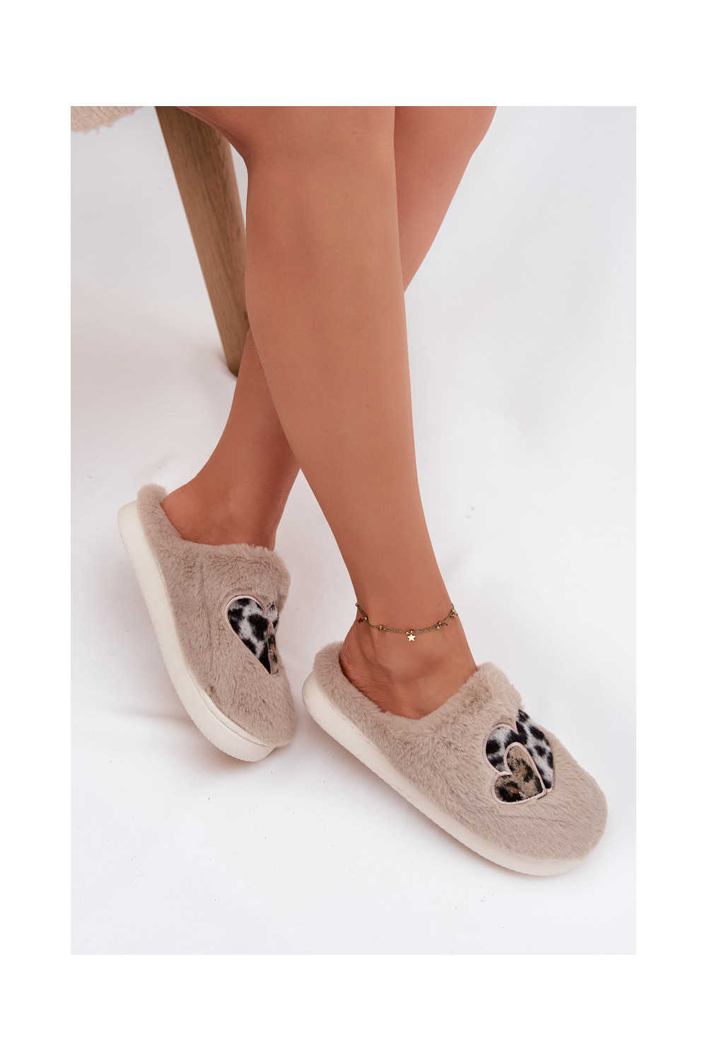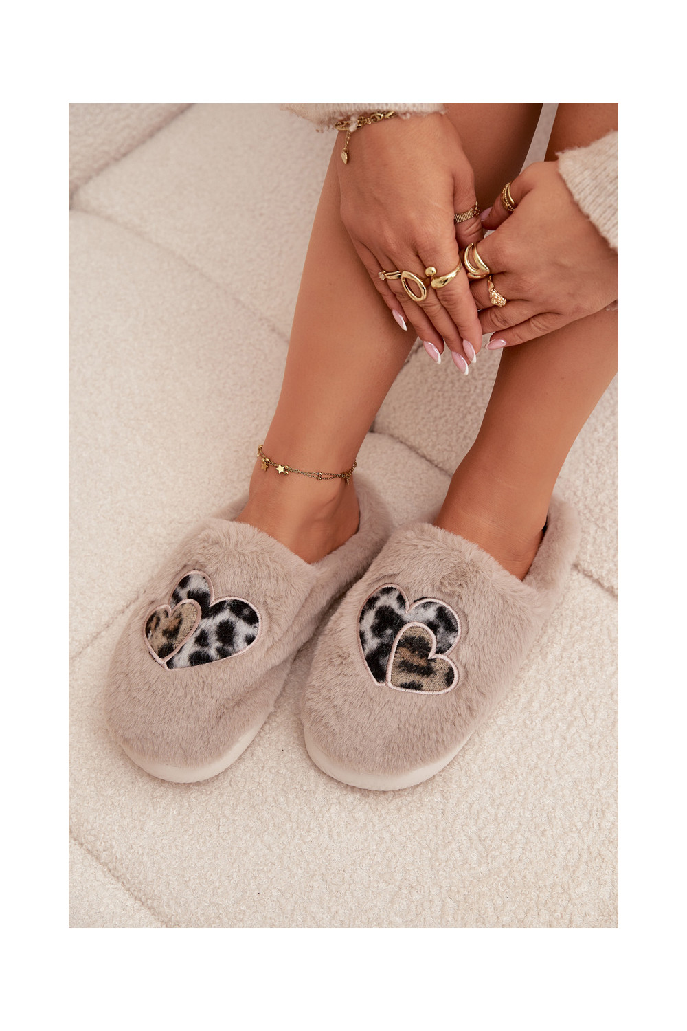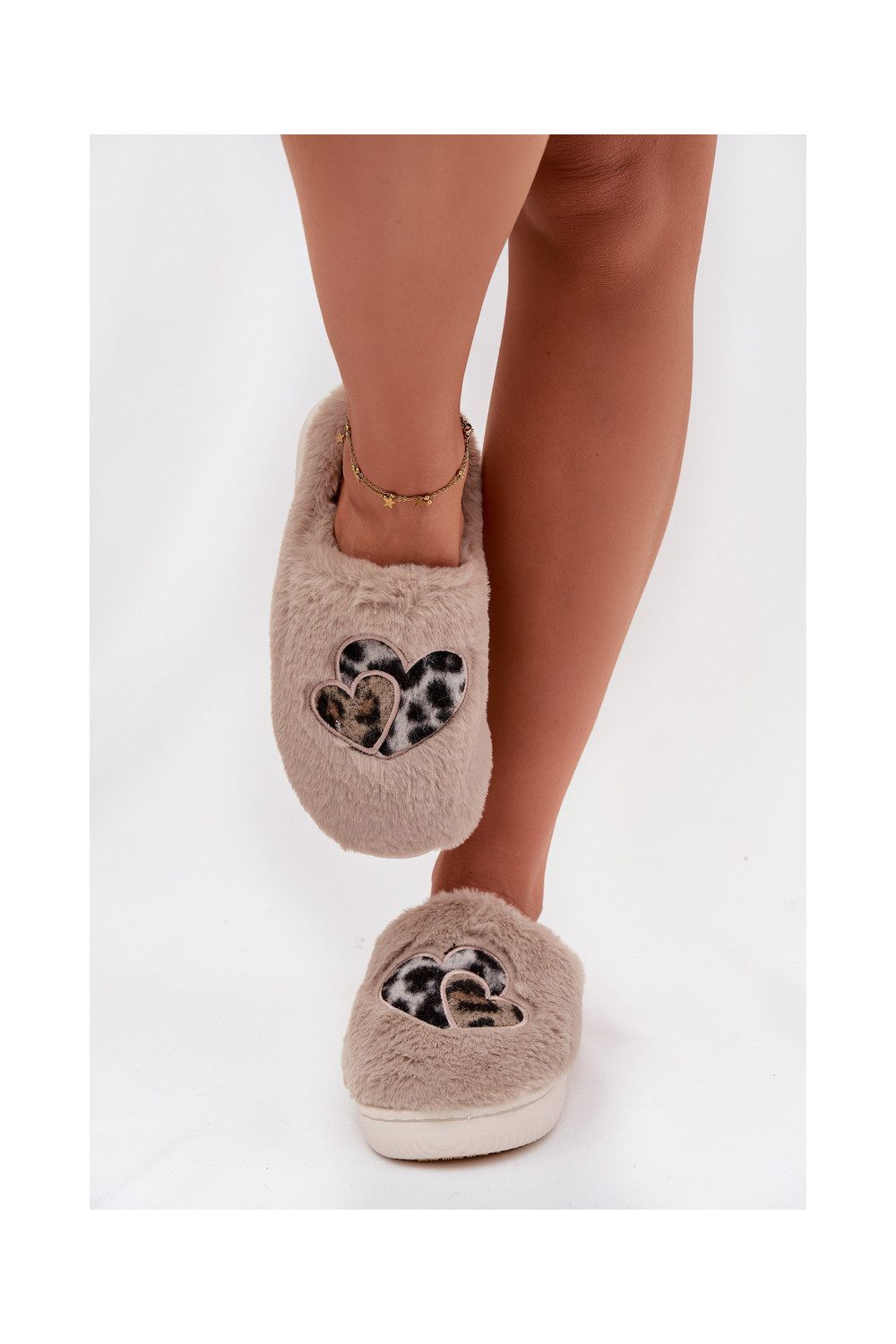 Smilšu krāsas Amandra čības ar kažokādu un sirdīm