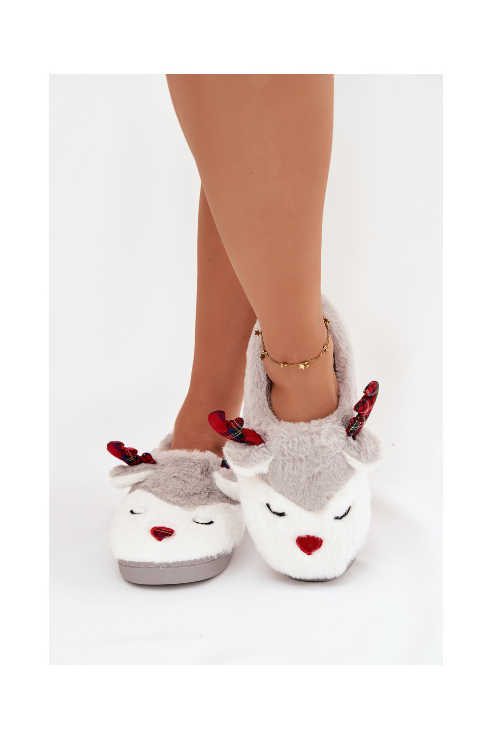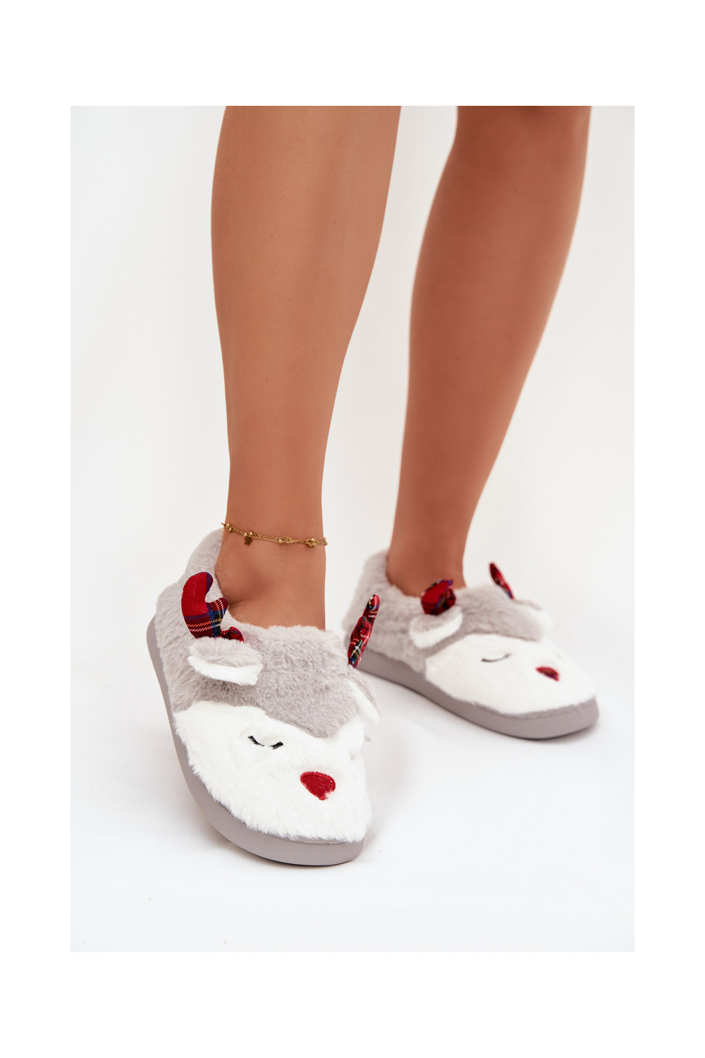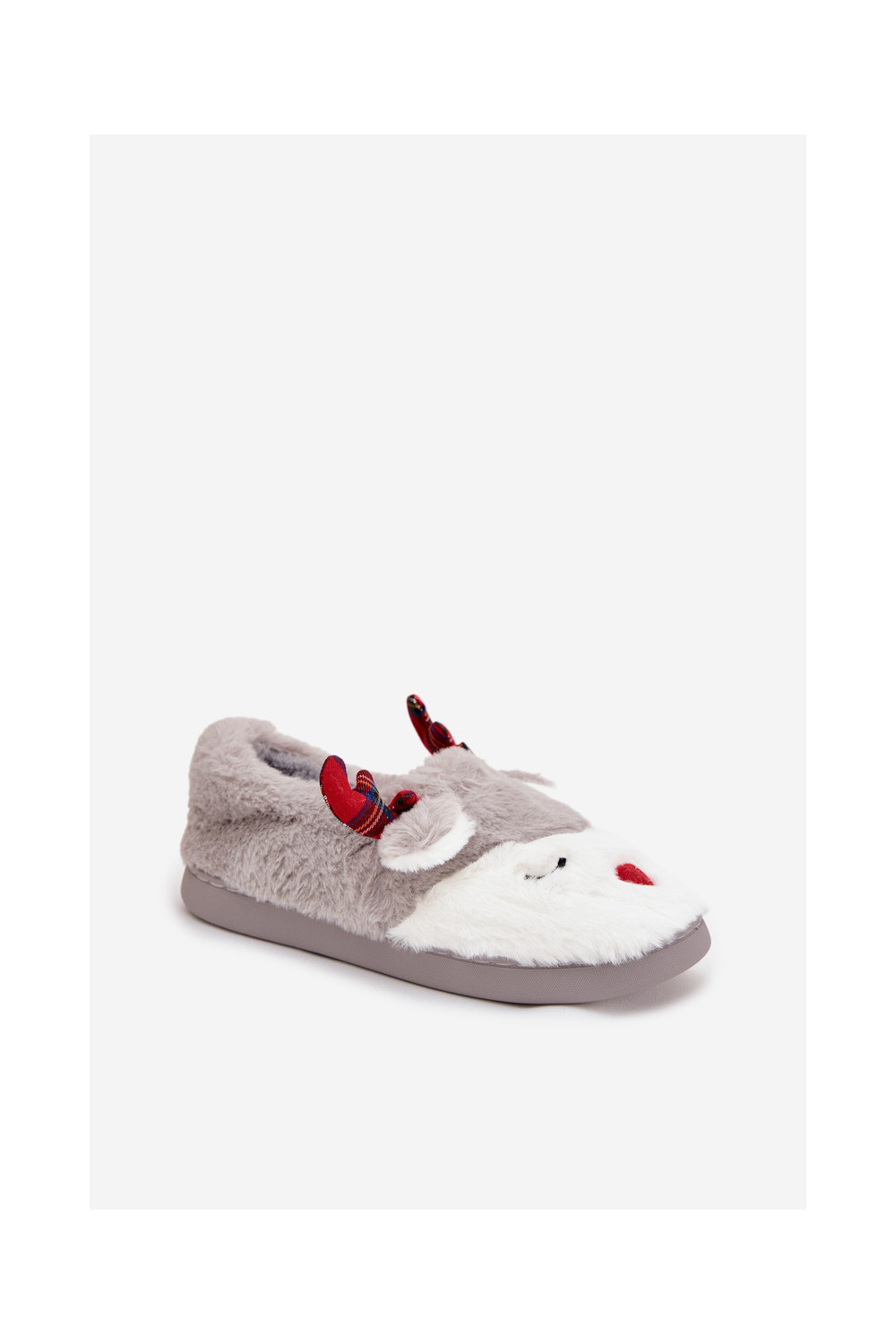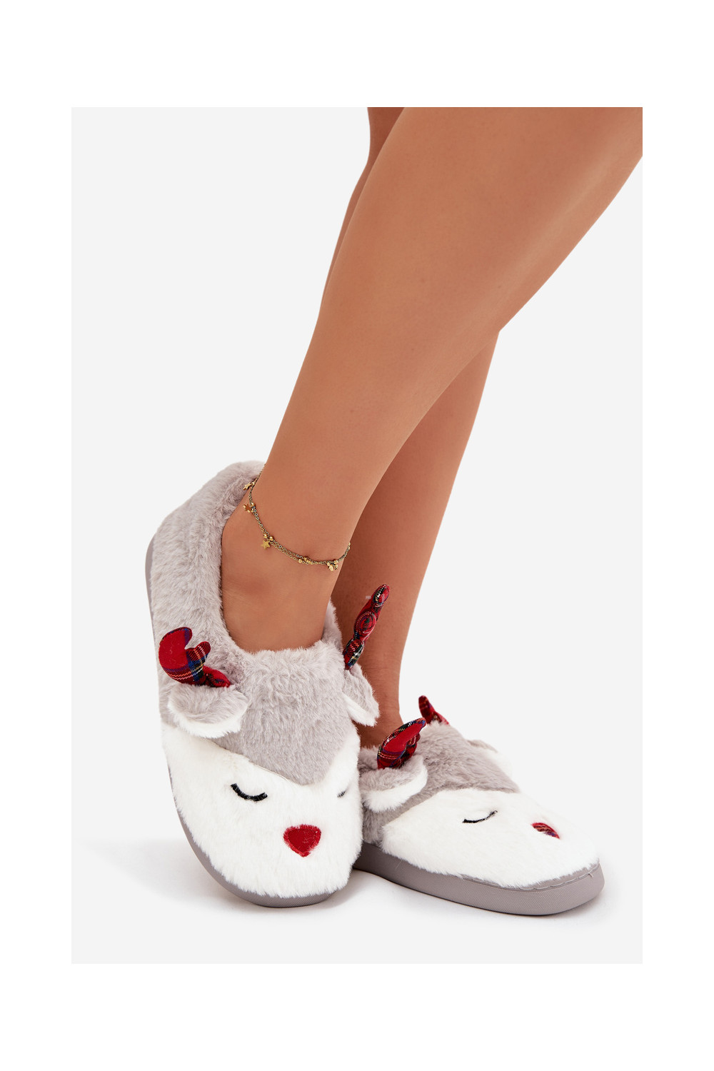 Pelēkas Orsella Ziemassvētku sieviešu čības ar kažokādu un ziemeļbriežu motīviem
