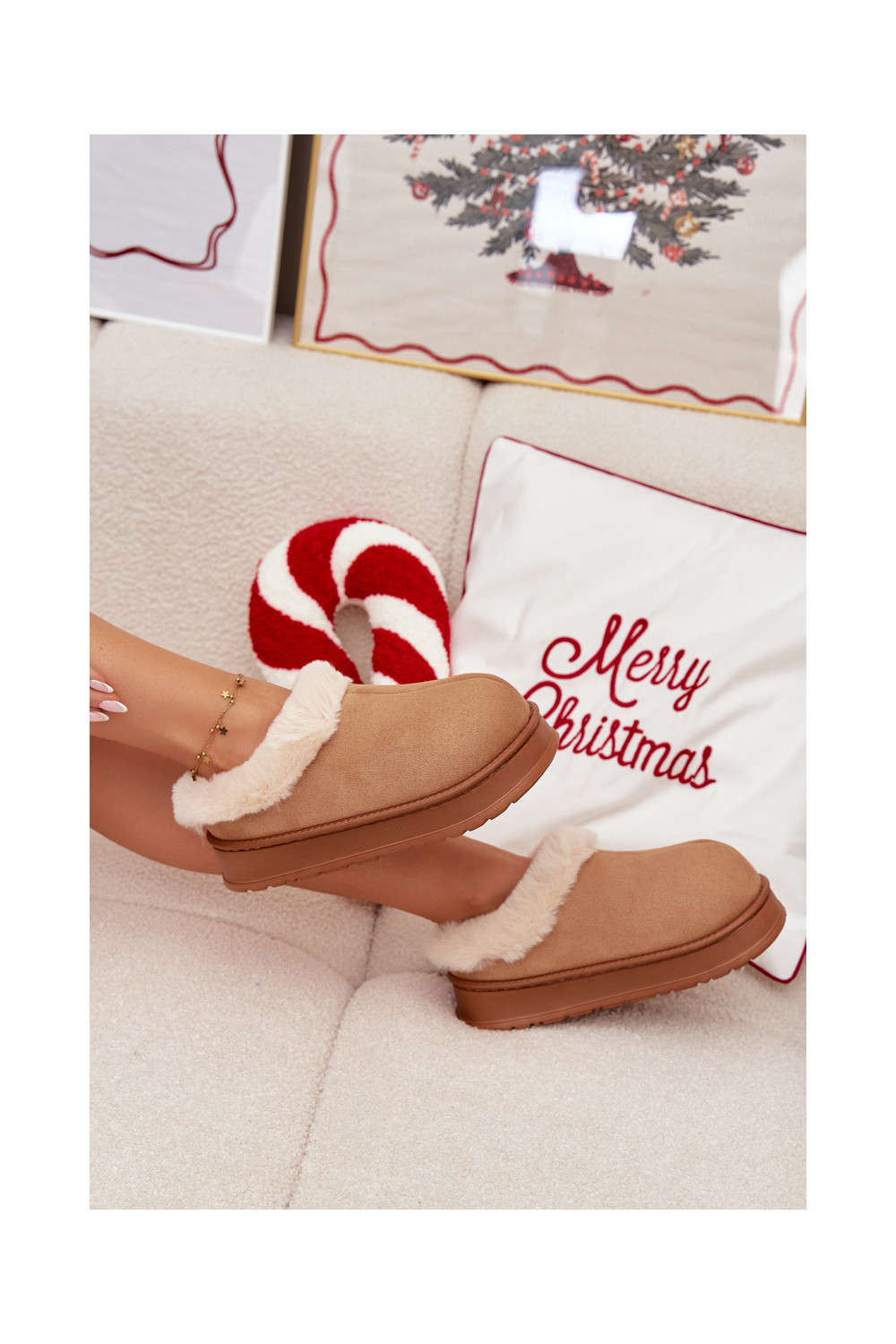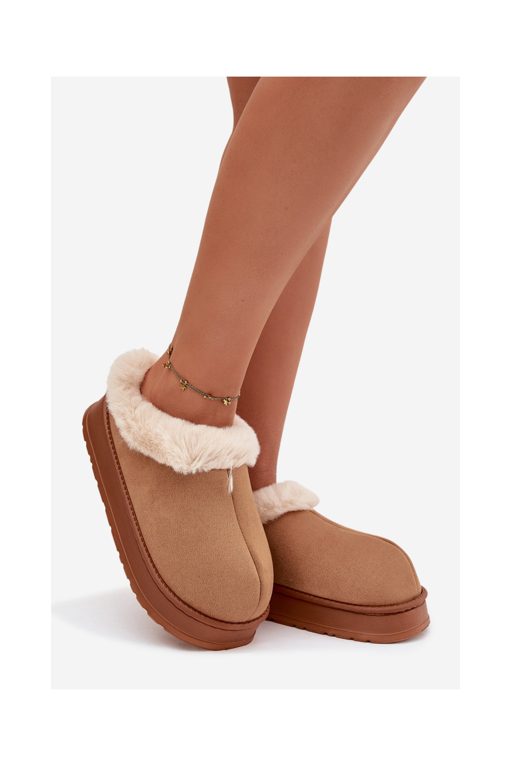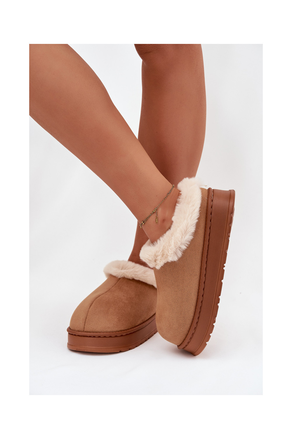 Sieviešu čības ar kažokādi, brūnas „Eveline"