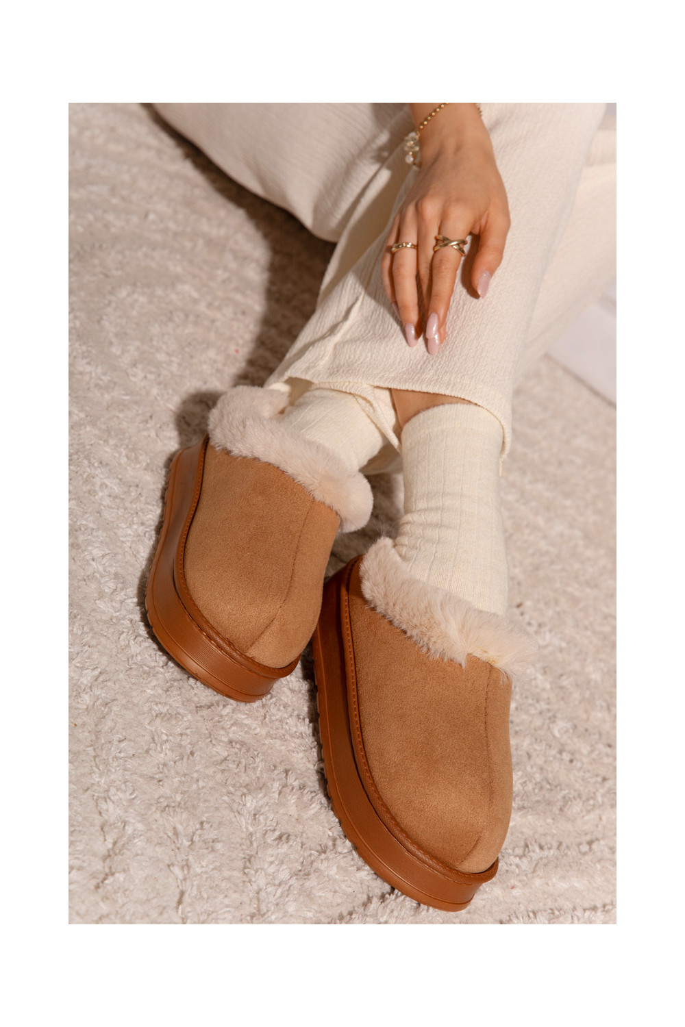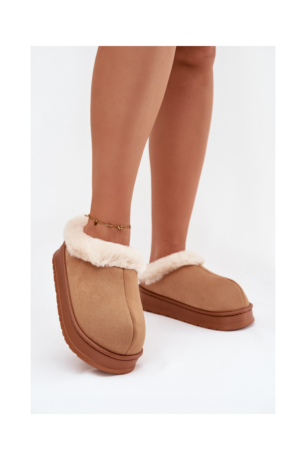 Sieviešu čības ar kažokādi, brūnas „Eveline"
