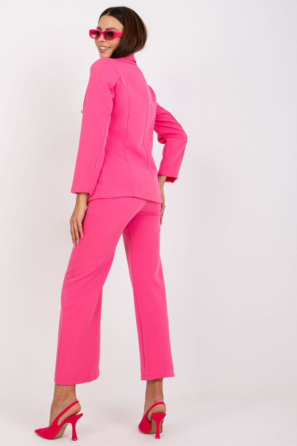 Tumši rozā divrindu žakete ar garām piedurknēm.