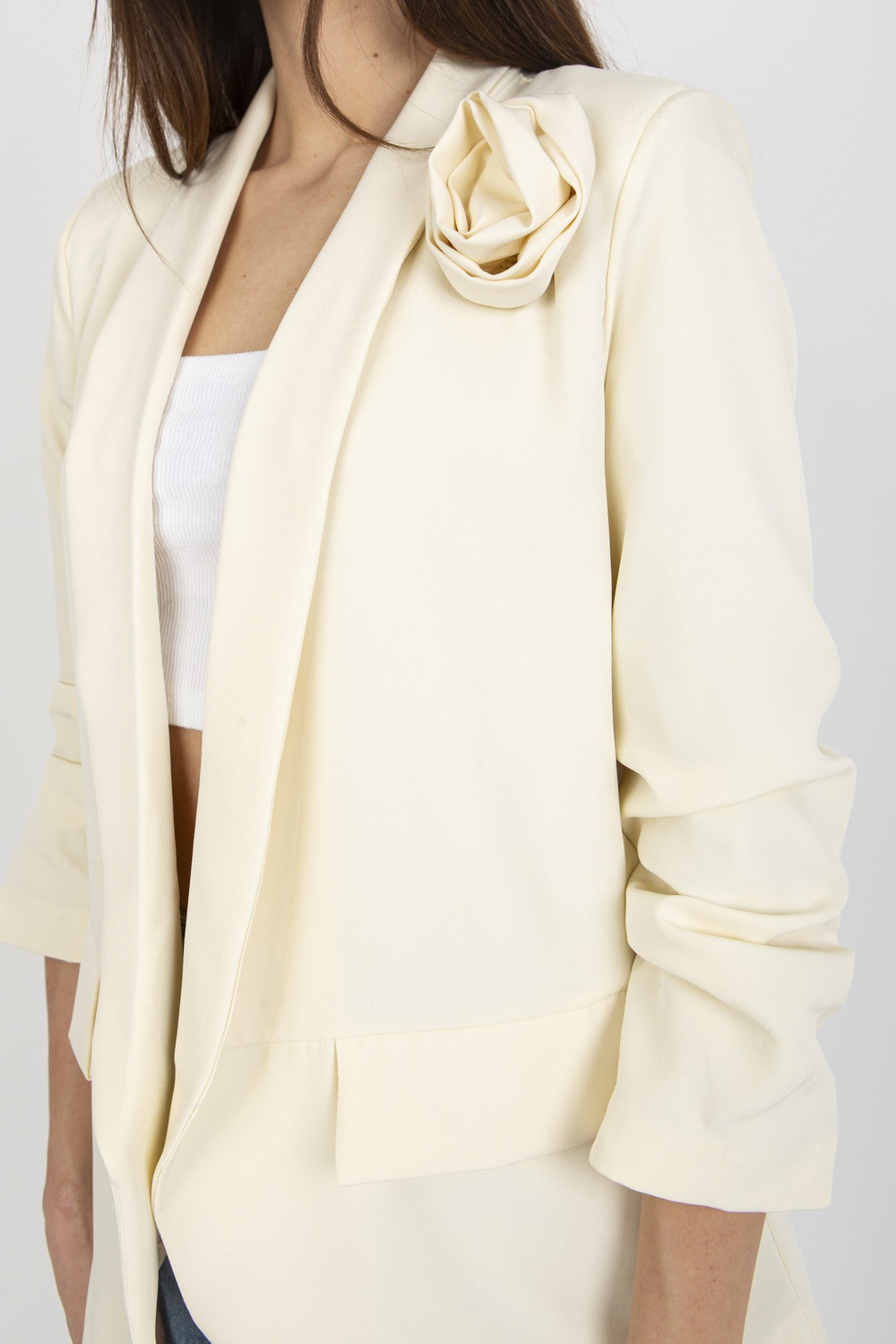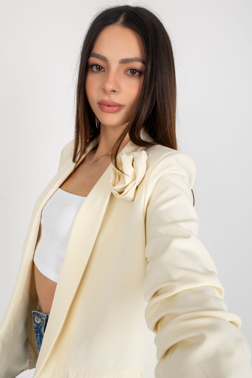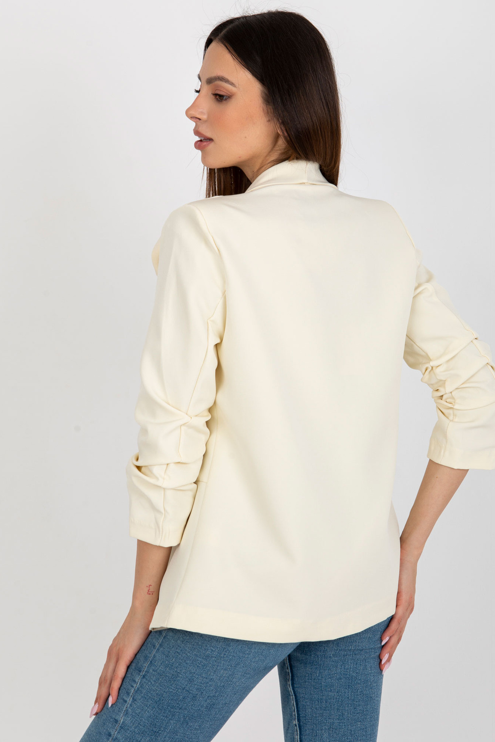 Modele valkā S izmēru. Modeļa izmēri: augums 175 cm, krūtis 84 cm, viduklis 61 cm, gurni 91 cm.