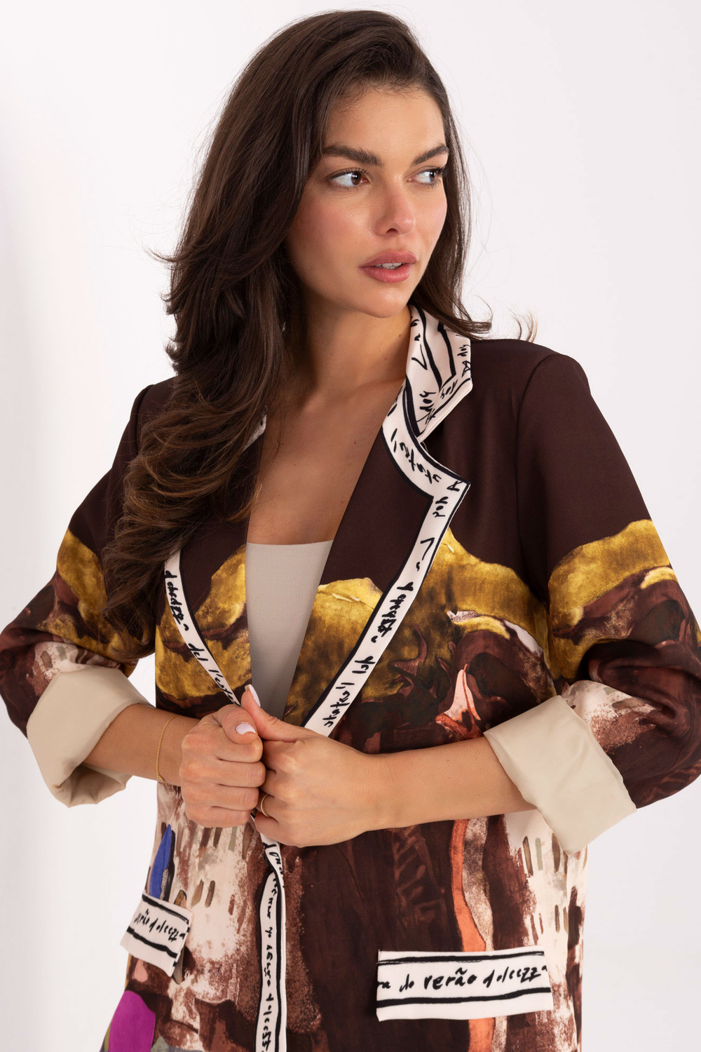 Žaketa izmēri viena izmēra apģērbā, mērīti novietojot to plakanu: platums zem padusēm - 55 cm, piedurknes garums - 59 cm (no šuves), kopējais garums - 79 cm, platums pie gurniem - 52 cm.
