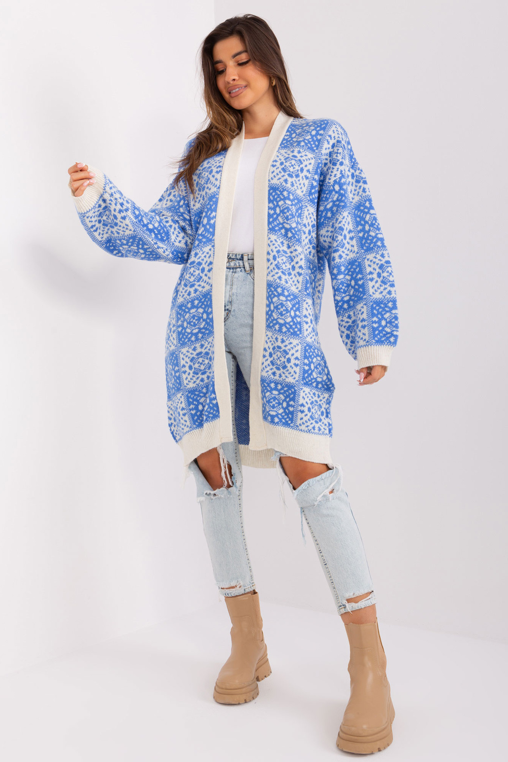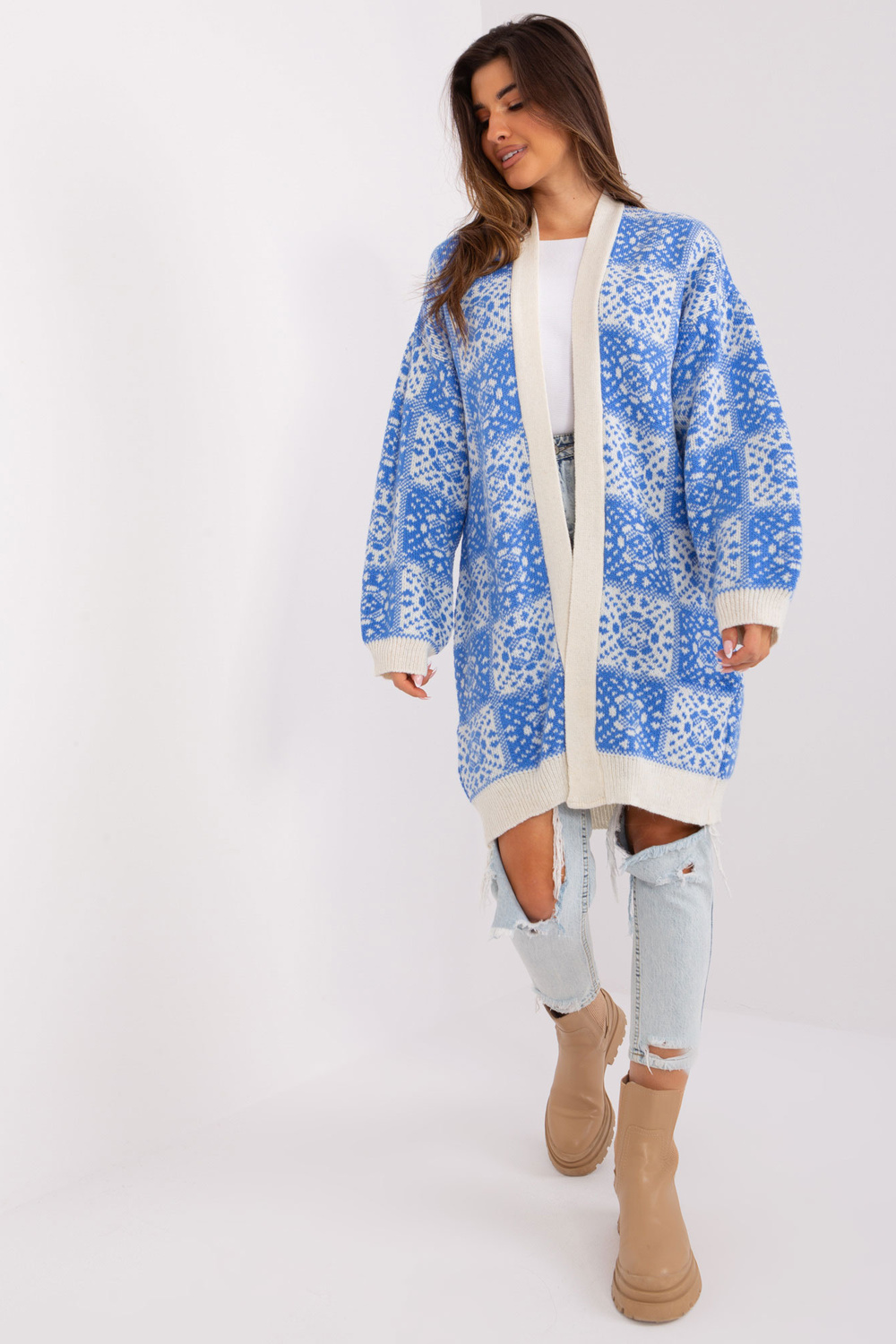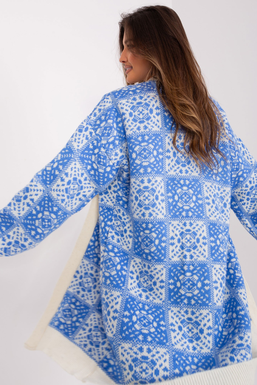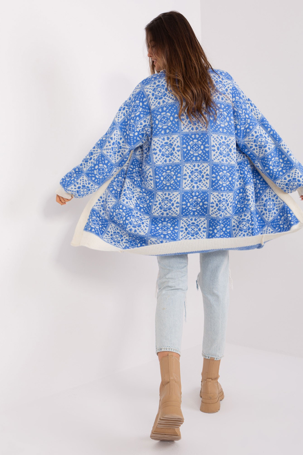 Jakas izmēri viena izmēra, mērot plakanā: platums zem rokām - 70 cm, kopējais garums - 98 cm, piedurknes garums - 58 cm.