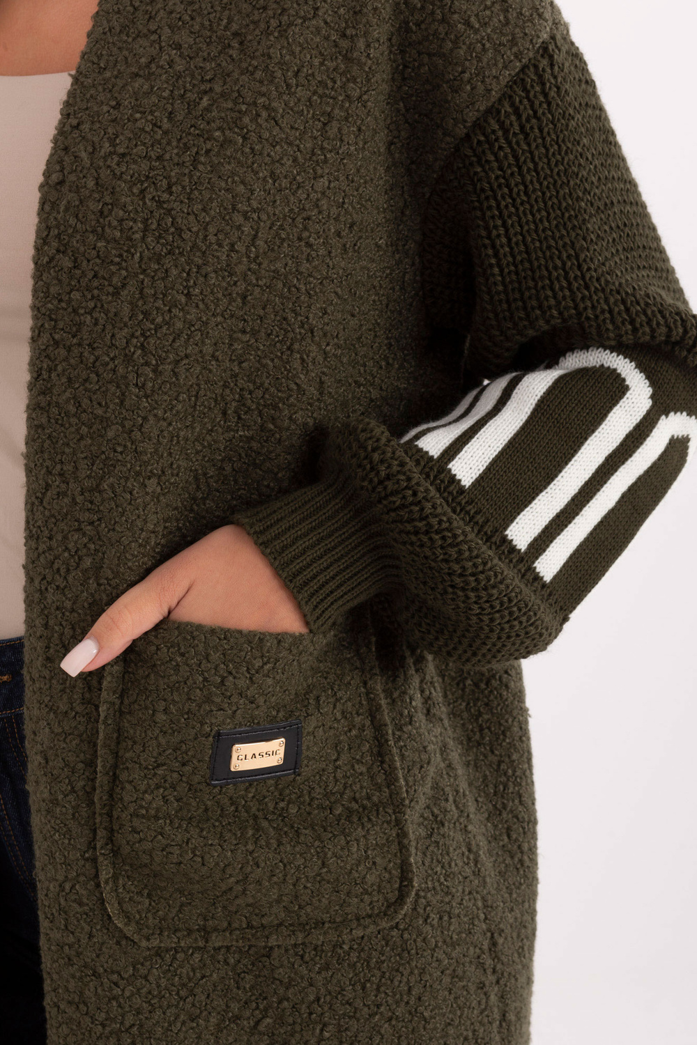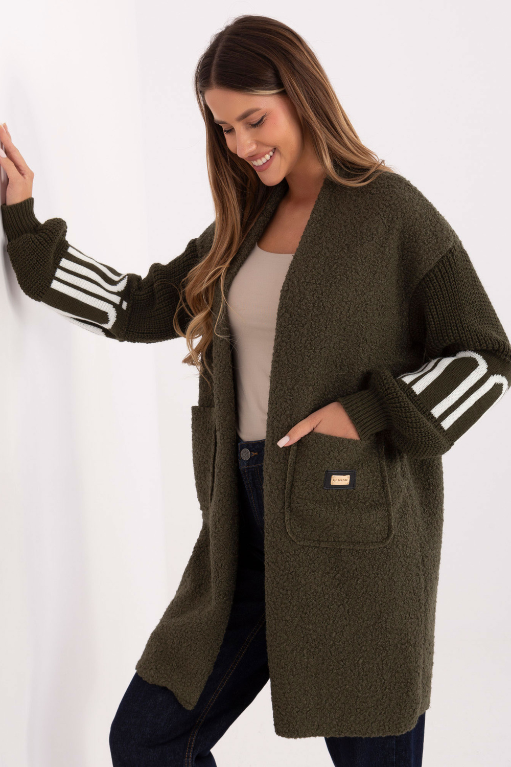 Kardigāna izmēri viena izmēra: platums zem padusēm - 63 cm, kopējais garums - 98 cm, piedurknes garums - 55 cm (no šuves), platums gurnu rajonā - 68 cm.