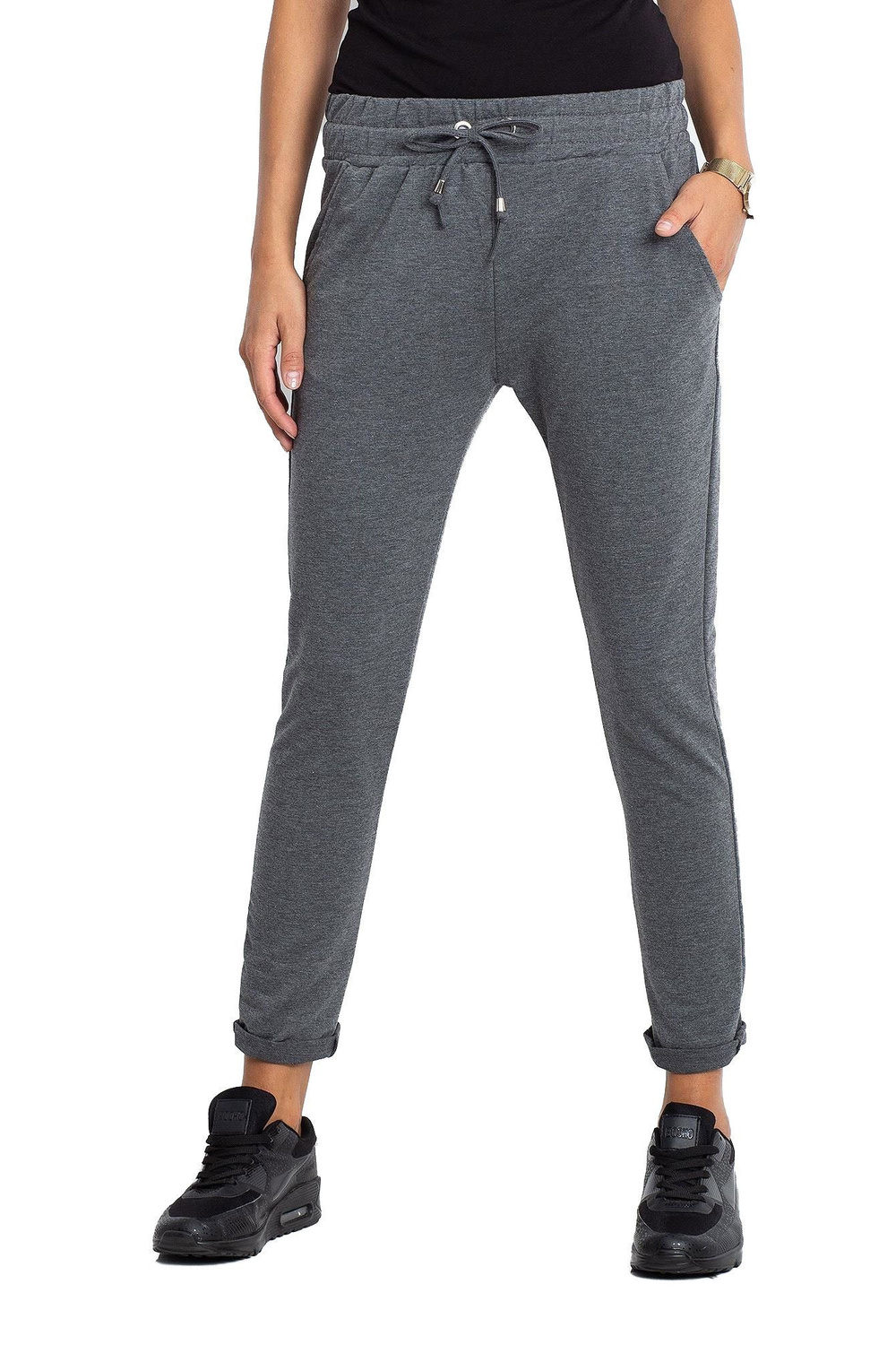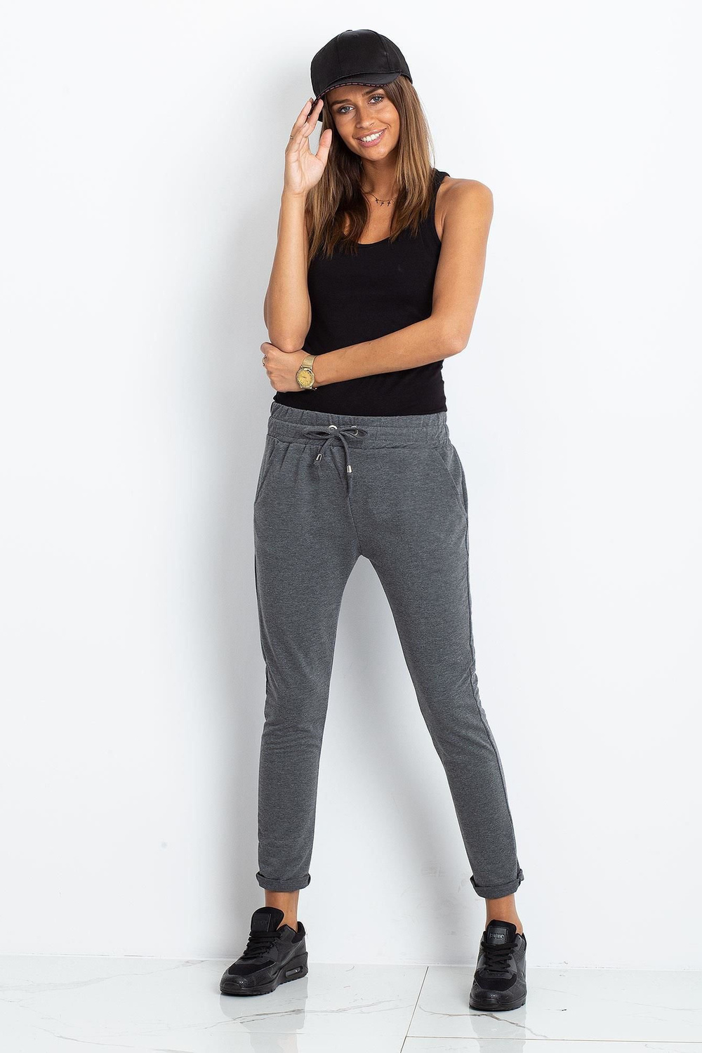 Tumši pelēkas kadences bikses . Ērtas un modernas treniņbikses ar augstu kokvilnas saturu sastāvā ir daudzu sieviešu sapnis, kurām patīk ērti tērpi ikdienā. Šāds modelis ir ļoti daudzpusīgs un mūžīgs, turklāt tas piestāv daudzām citām drēbēm un to var valkāt dažādos gadījumos. Mūsu treniņbikses ir ideāli piemērotas ne tikai ikdienas valkāšanai, bet arī sportam vai mājas biroja laikā. Šādu daudzpusību piedāvā tikai legingi! Šīs pamata treniņbikses ir izgatavotas no augstas kvalitātes materiāliem, kas sastāv no liela daudzuma tīras kokvilnas un neliela elastāna piejaukuma. Tādējādi tie ir ārkārtīgi ērti valkājami, gaisīgi un patīkami pieskarties. Šādi sieviešu treniņtērpi ir piemēroti elegantiem topi un kurpēm ar papēžiem vai t-krekliem un modernām sporta kurpēm no mūsu kolekcijas.