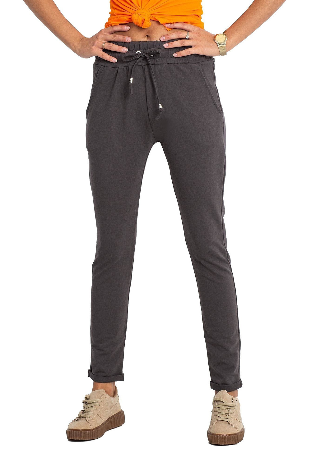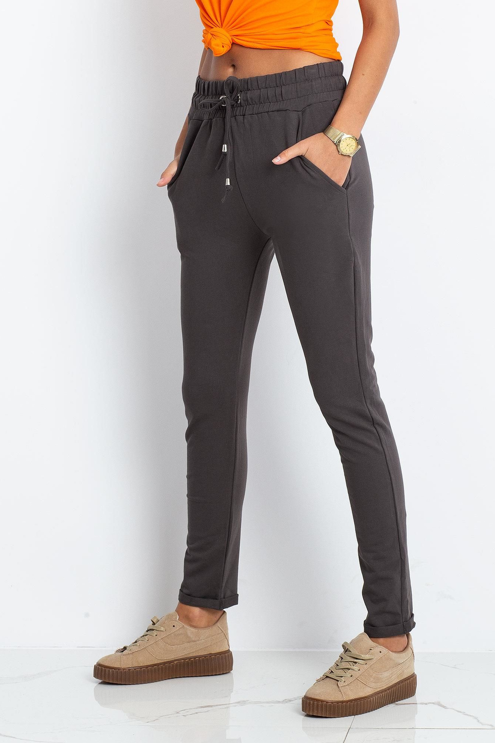 kadencegrafīta bikses . Sieviešu treniņtērpi mūsdienās ir bikses, kas mūs bieži pavada ikdienas izskatā, un ne tikai mājas biroja vai sporta laikā. Un nav nekāds brīnums, jo tās ir ļoti daudzpusīgas un superērtas, turklāt piestāv visam un var tikt uzvilktas dažādiem gadījumiem. Šīs treniņbikses būs ideāla izvēle interesanta izskata veidošanai sportiskā vai pilsētnieciskā stilā, un pareizi ieveidotas iegūs arī nedaudz sievišķīgāku pieskaņu. Šim modelim ir moderns piegriezums ar šaurām kājām, tāpēc tie lieliski izskatās uz silueta un skaisti izceļ figūru. Tie ir izgatavoti no augstas kvalitātes kokvilnas auduma ar sintētiskās šķiedras piesitienu, kas padara materiālu elpojošu un patīkamu taustei. Valkājiet sieviešu sporta bikses ar t-krekliem un kedas.