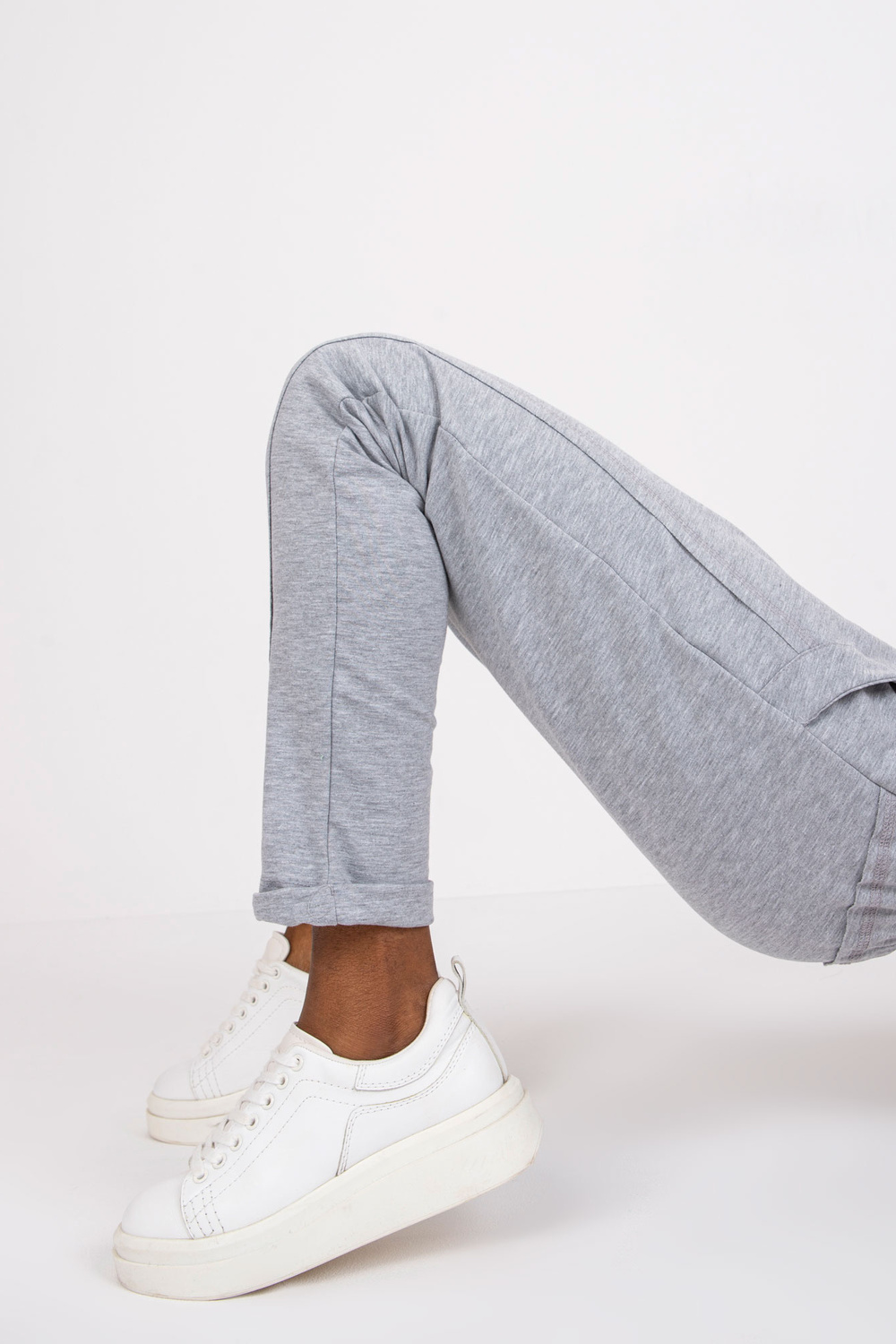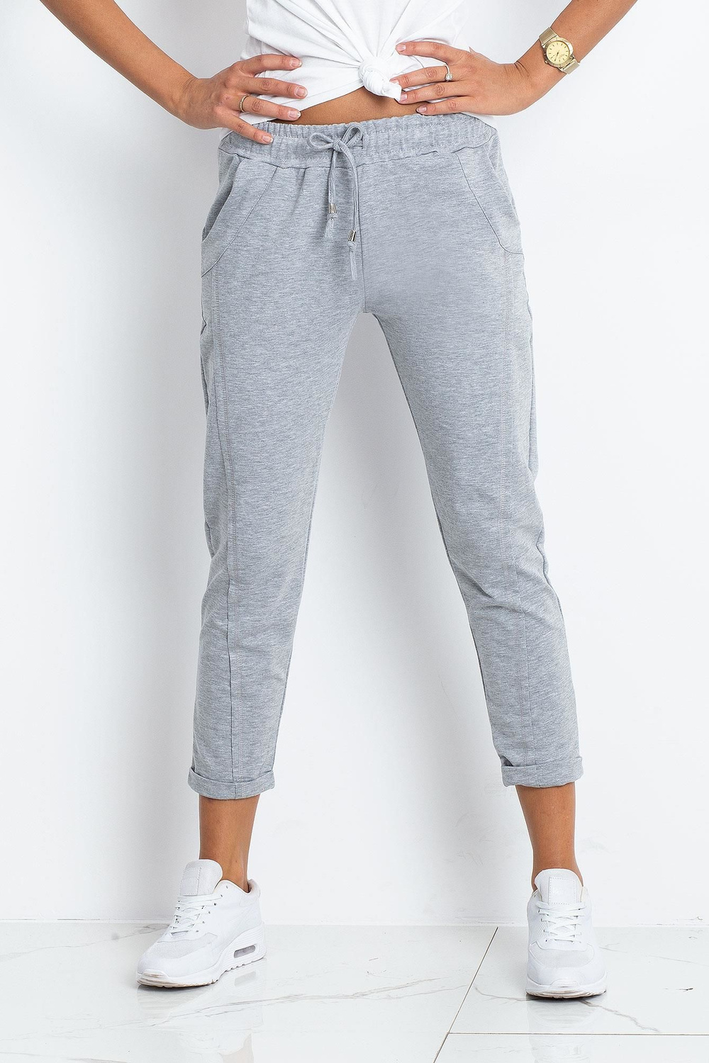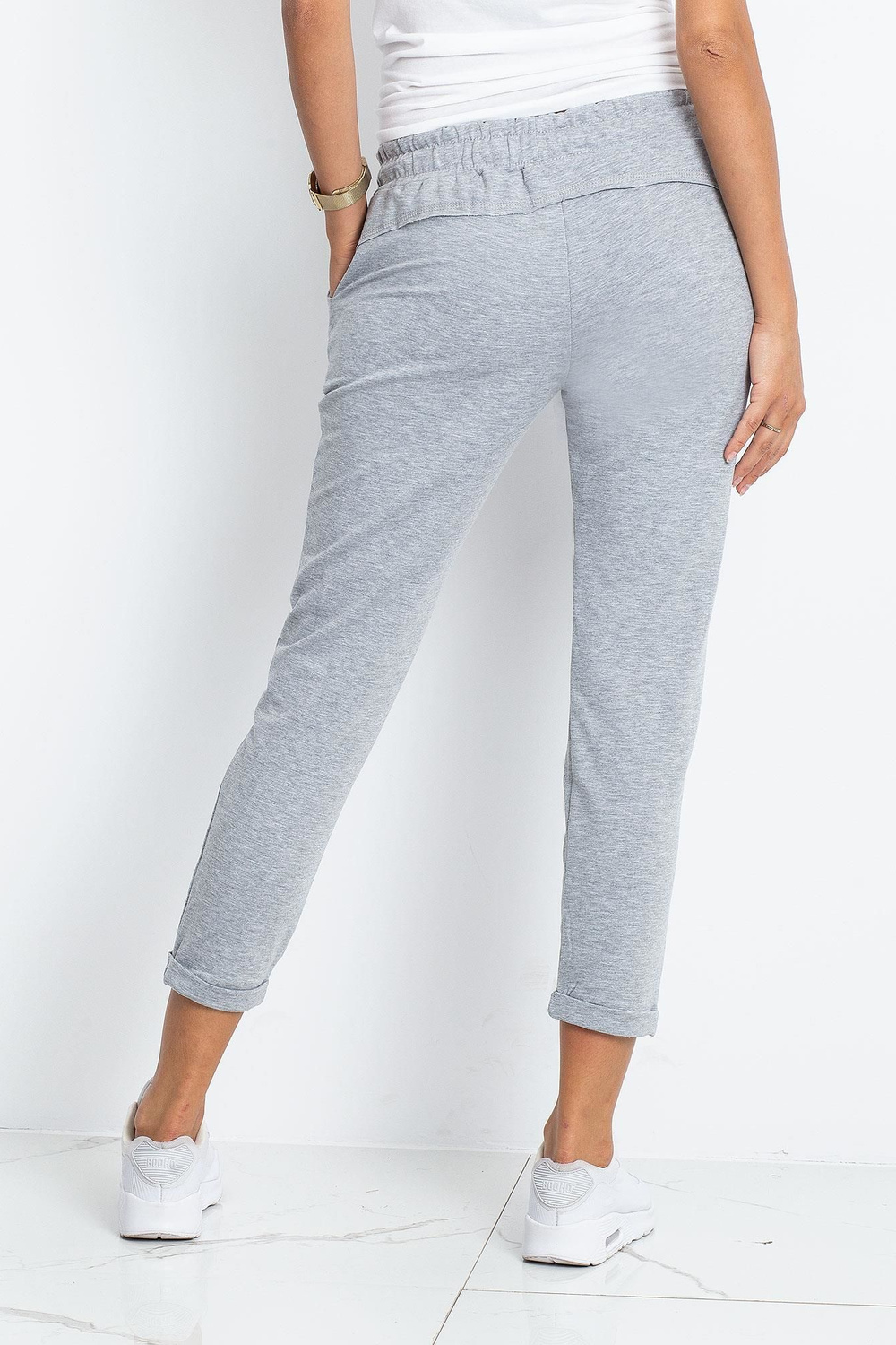 Pelēkās krāsas bikses. Sieviešu treniņbikses ir viens no visvairāk pirktajiem apģērbu stiliem mūsu apģērbu interneta veikalā. Lielu popularitāti, cita starpā, bauda šis modelis, kas izgatavots no melanža kokvilnas trikotāžas auduma ar nelielu ela piejaukumu< /div>