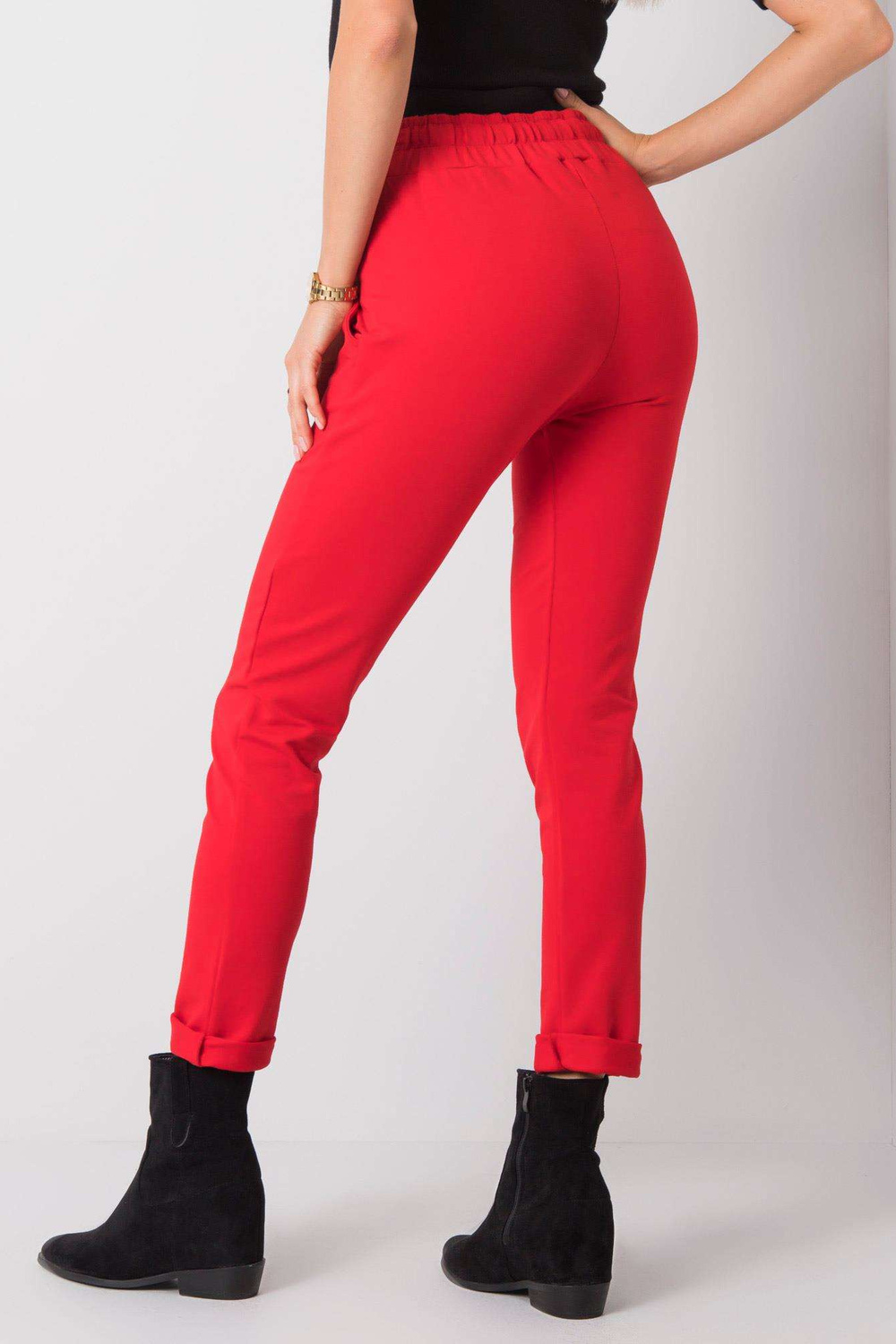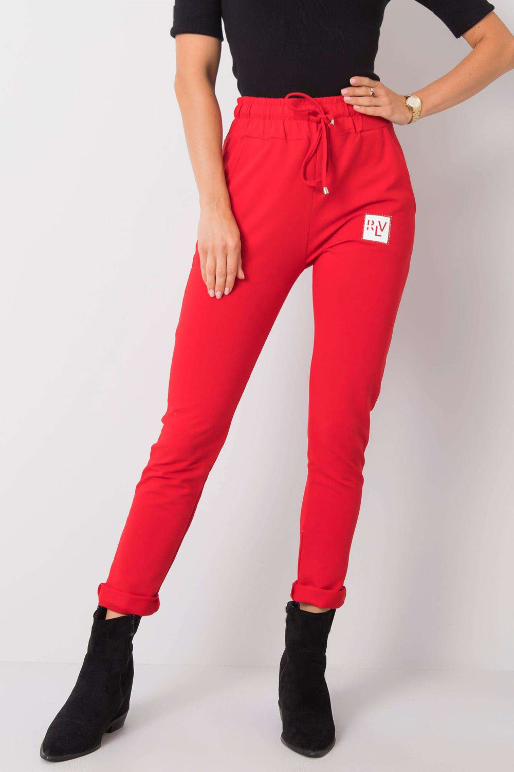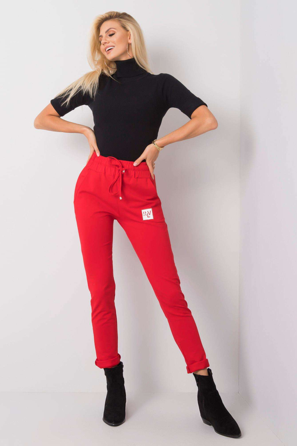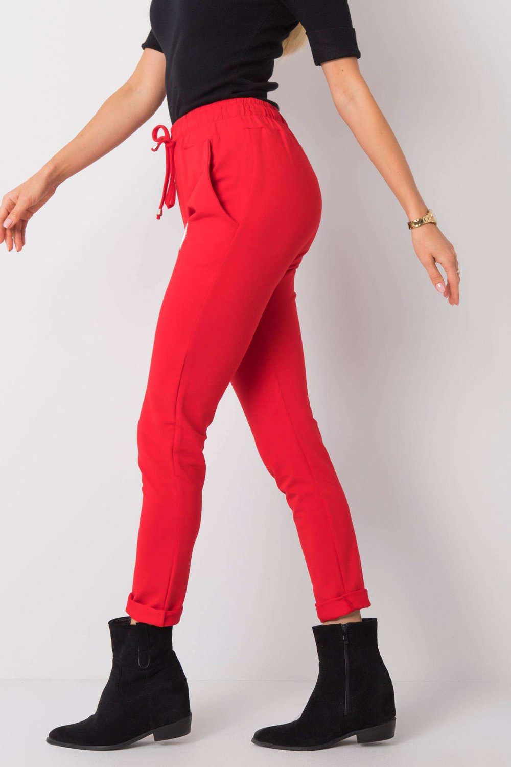 Mollijas sarkanās treniņbikses. piederumi: elastīga jostasvieta, siksnas, kabatas materiālssastāvs: 90% kokvilna, 10% elastāns mazgāšanas metode: veļas mašīna 30°C. Modelis valkā S izmēru. modelis: augums 175 cm, krūtis 85 cm, viduklis 63 cm, gurni 95