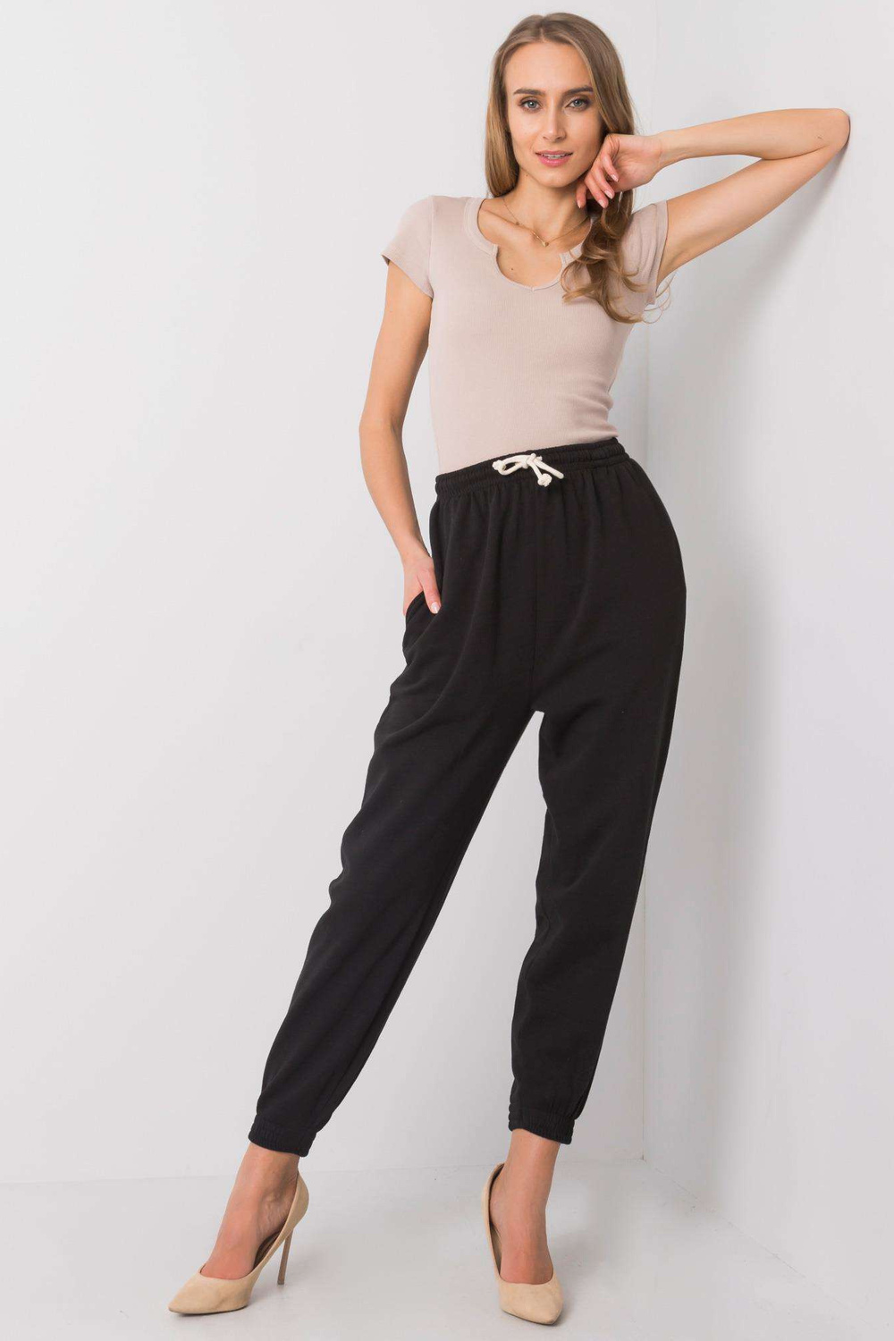 Modelis ir valkā S izmēru. Modeļa izmēri: augums 175 cm, krūtis 83 cm, viduklis 63 cm, gurni 91 cm.