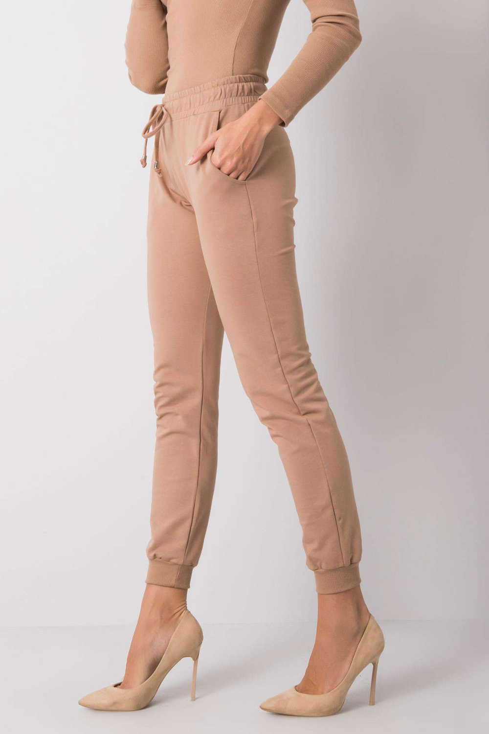Camelpants ātrāk. piederumi: kabatas, elastīgās jostas materiālssastāvs: 90% kokvilna, 10% elastāns mazgāšanas metode: veļas mašīna 30°C Modelis valkā S izmēru. Modeļa izmēri : augums 175 cm, krūtis 85 cm, viduklis 65 cm, gurni 89 cm. Izmēri
