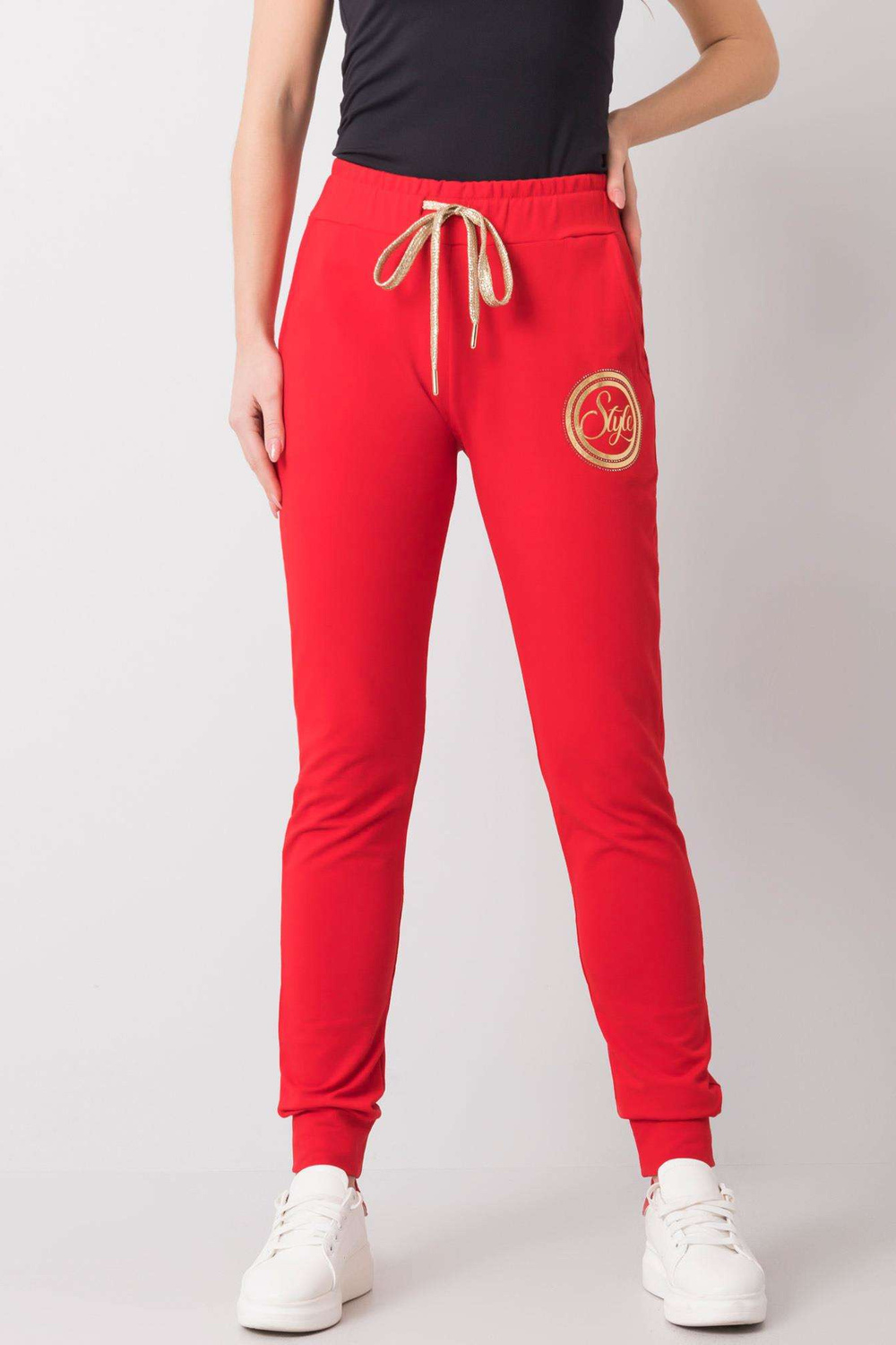 Sarkanas sporta bikses Stilīgas. aksesuāri: kabatas, elastīga jostasvieta, siksnas, rhinestones materiālssastāvs: 90% kokvilna, 10% elastāns mazgāšanas metode: veļas mašīna 30°C. Modelis valkā S izmēru. Modeļa izmēri: augums 170 cm, krūtis 93 cm, viduklis 66