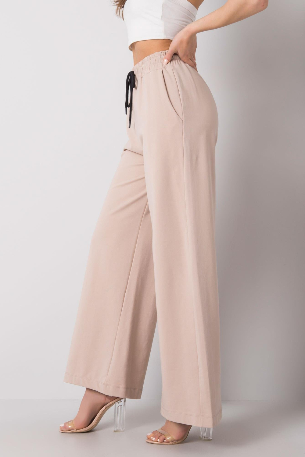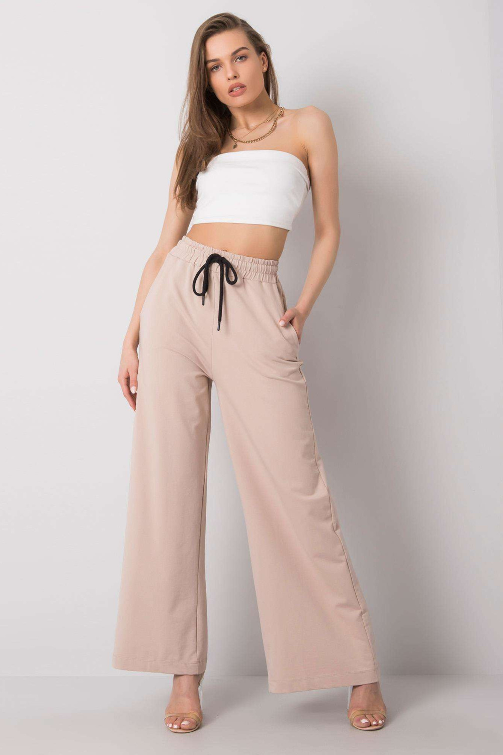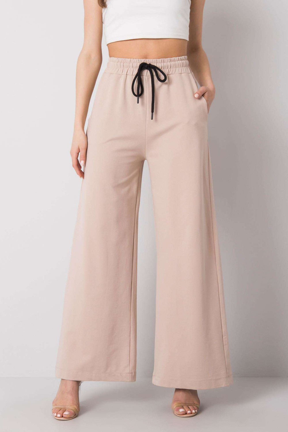 Bēšas sporta bikses Abril. materiāla sastāvs: 90% kokvilna, 10% elastāns mazgāšanas metode: mazgāšana veļasmašīnā 30°C Modelis valkā S izmēru. Modeļa izmēri: augums 175 cm, krūtis 79 cm, viduklis 60,5 cm, gurni 92 cm. Bikšu izmēri S izmēram