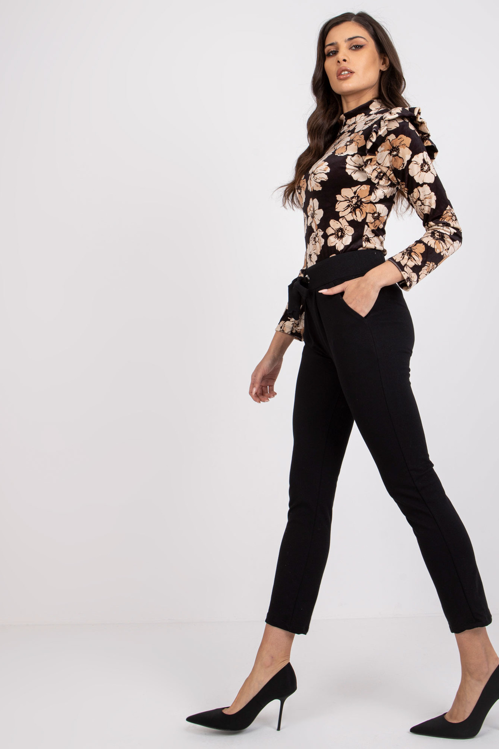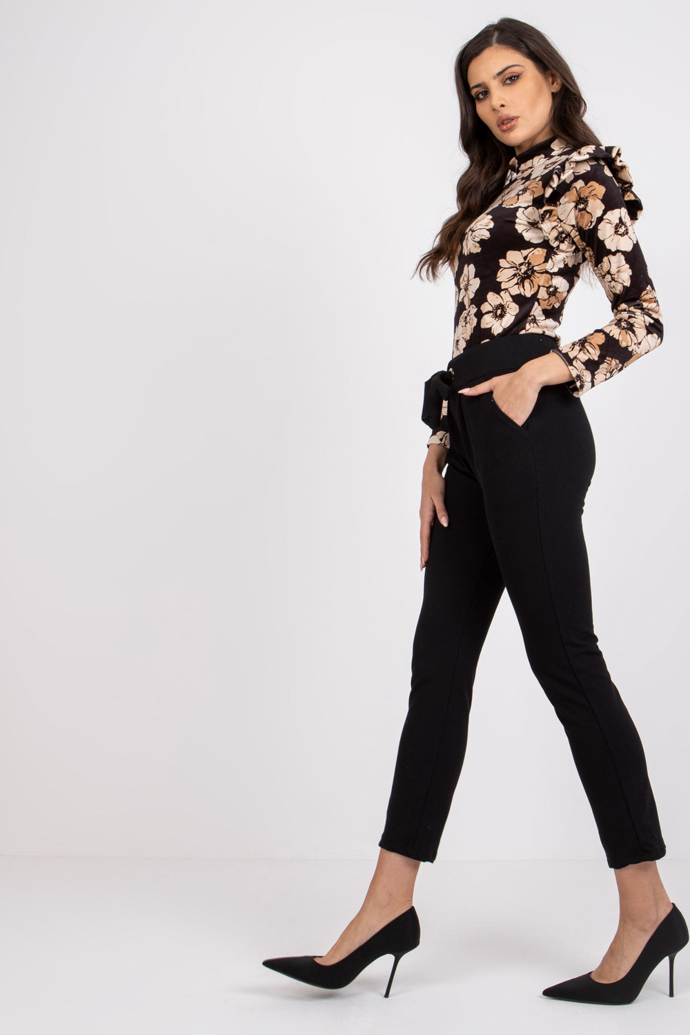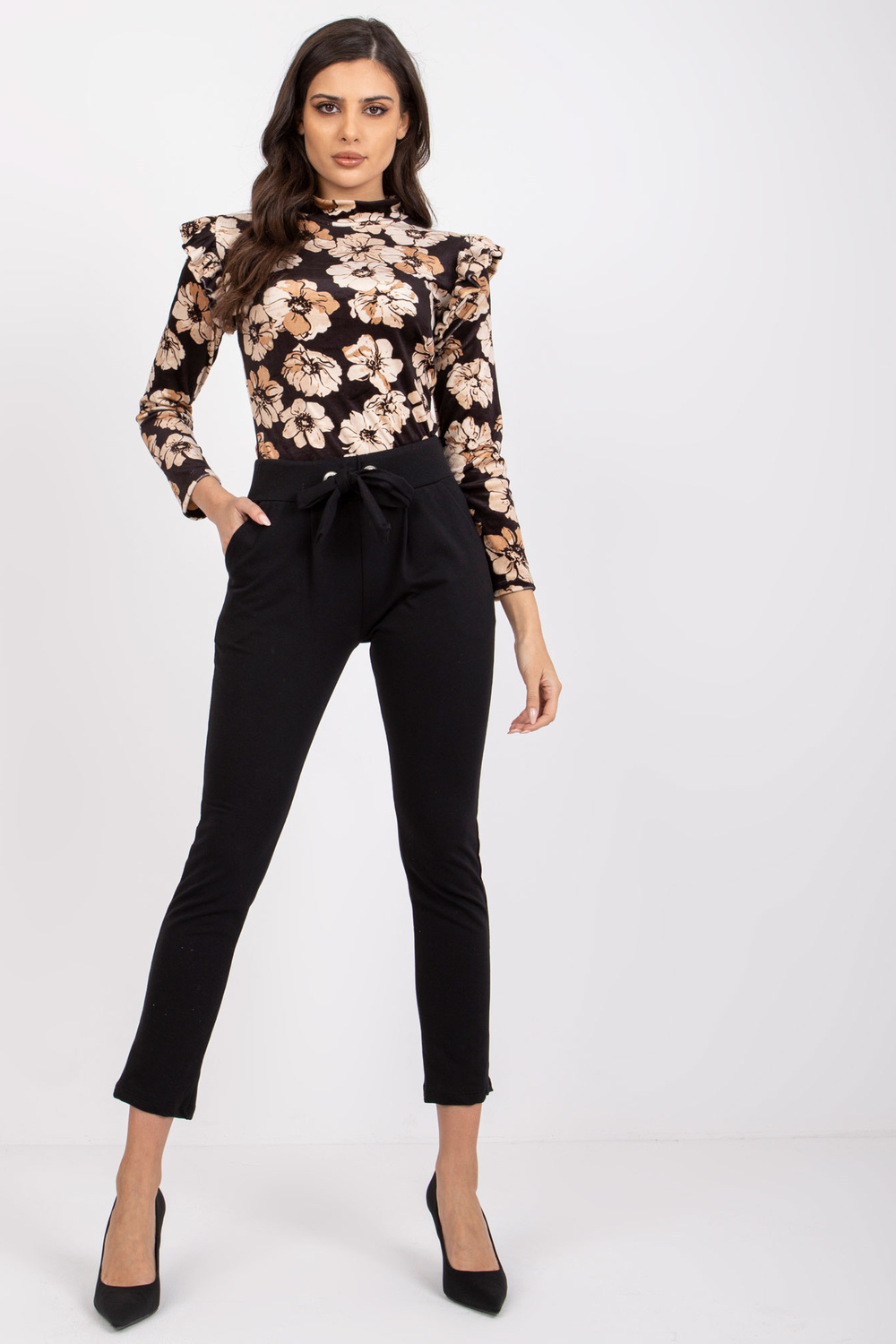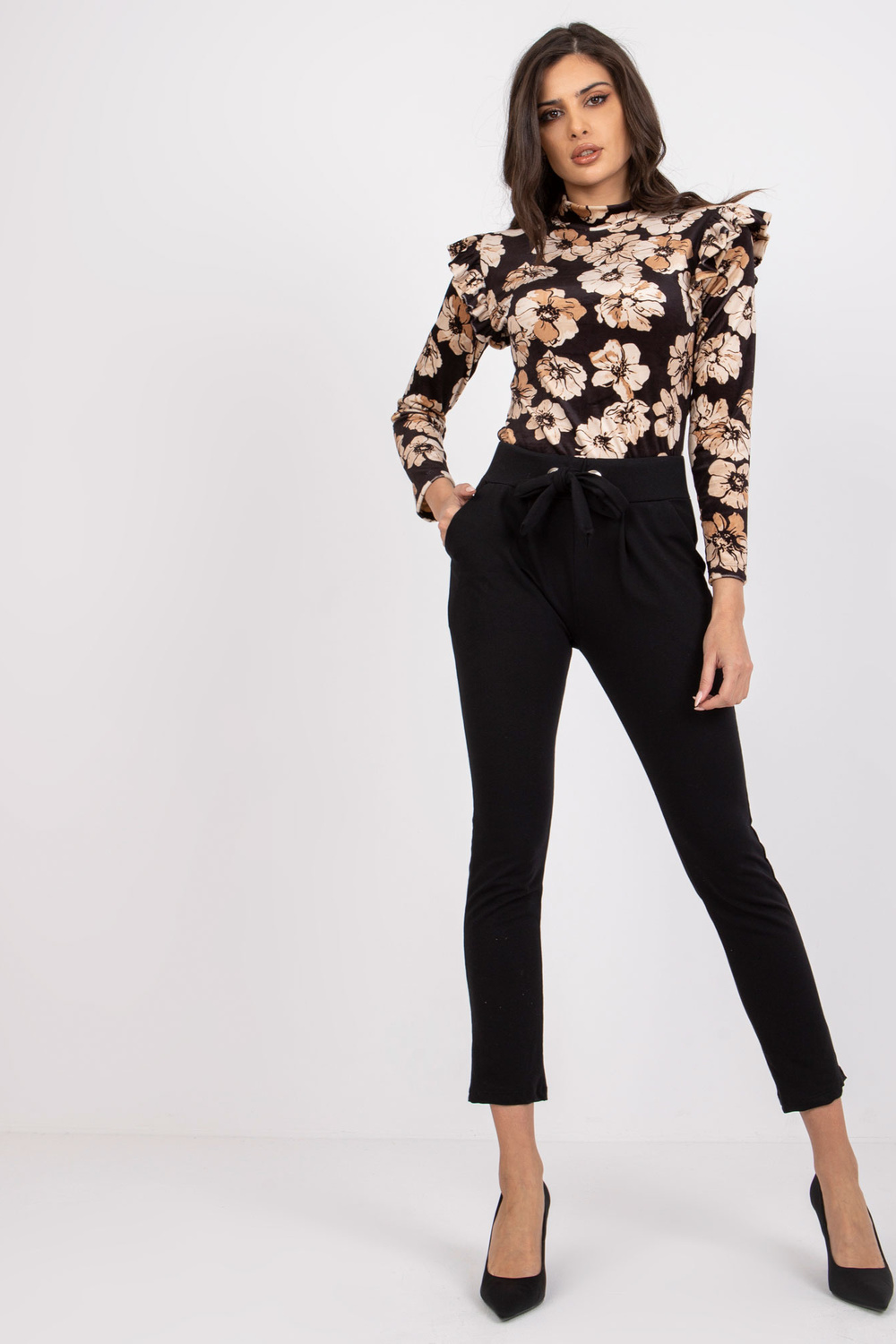 Melnās sieviešu sporta bikses Santos RUE PARIS . piederumi: iesiešana, kabatas materiālssastāvs: 90% kokvilna, 10% elastāns mazgāšanas metode: mazgāšana veļasmašīnā 30°C Produkta kods: RV-DR-7459.01X dominējošais raksts: bez raksta Stils: ikdienišķs, elegants gadījums: ca