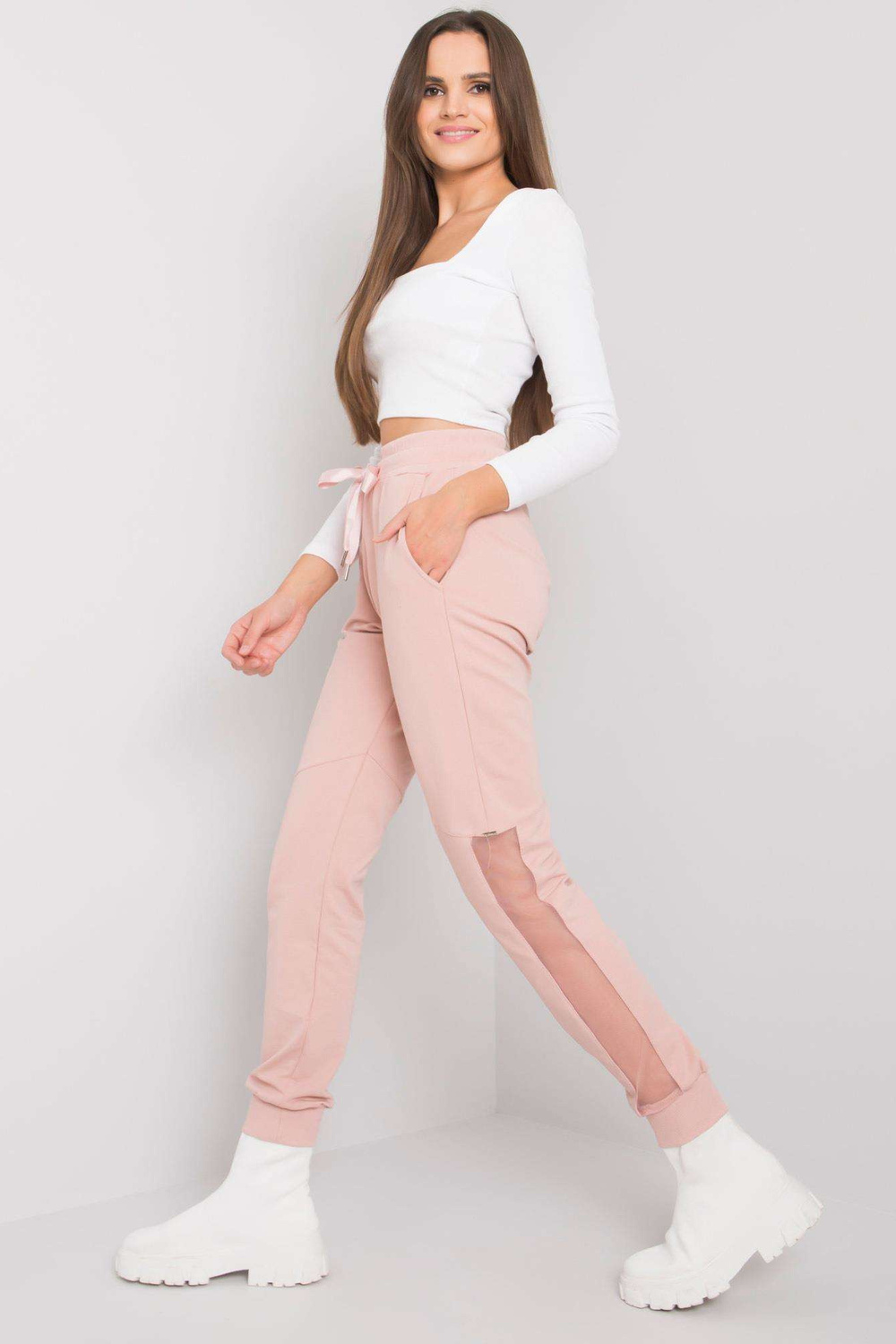 Sūzanas netīri rozā kokvilnas treniņbikses. piedevas: sieta ieliktņi materiālssastāvs: 90% kokvilna, 10% elastāns mazgāšanas metode: mazgāšana veļasmašīnā 30°C Produkta kods: RV-DR-6896.48P dominējošais raksts: bez raksta Stils: ikdienišķs, pilsētas stils gadījums: ikdienišķs, ārā th