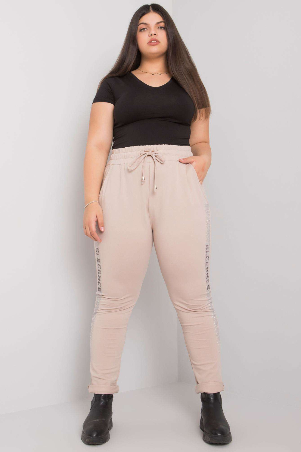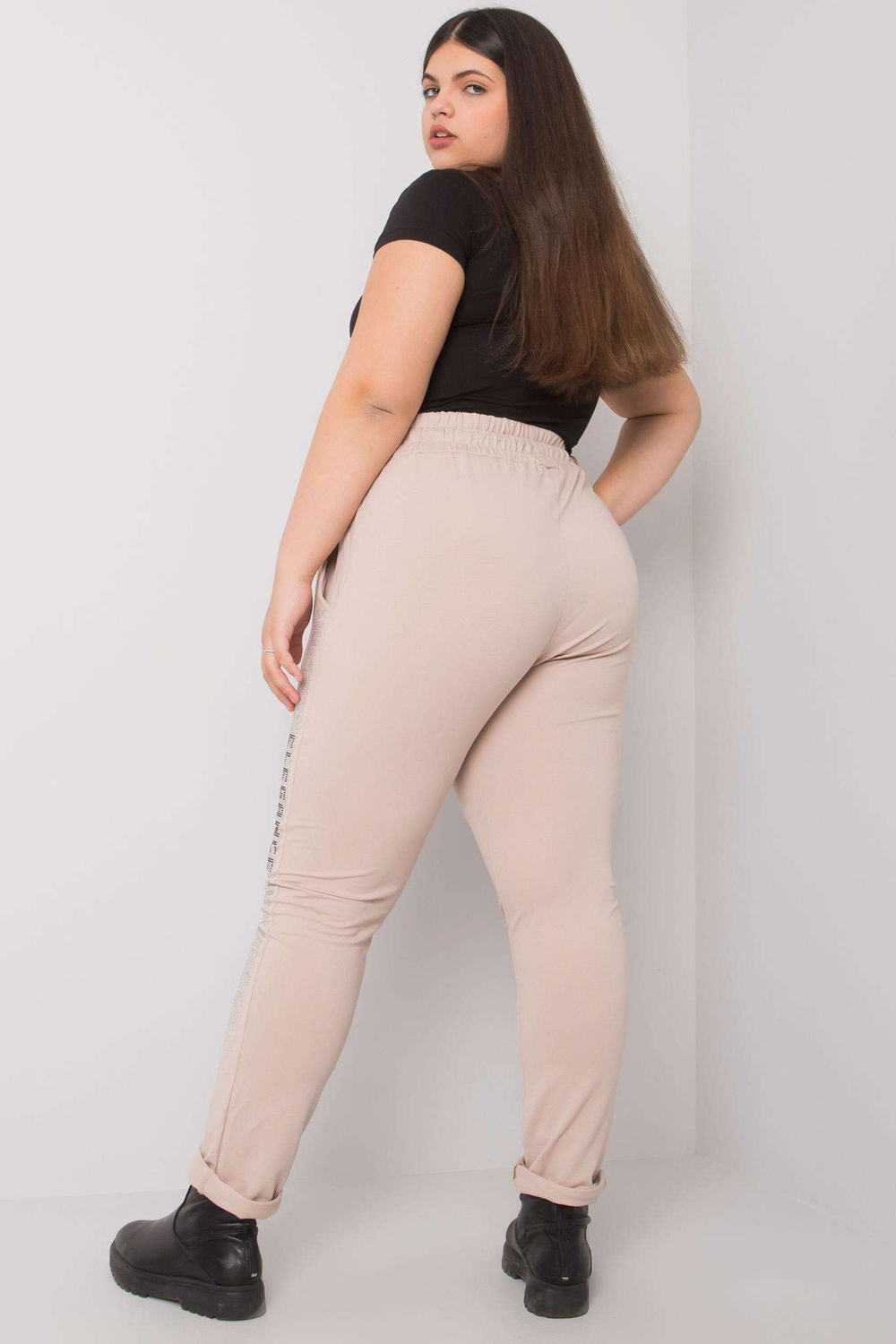 Bēšas plus izmēra treniņbikses ar Aelis aplikāciju