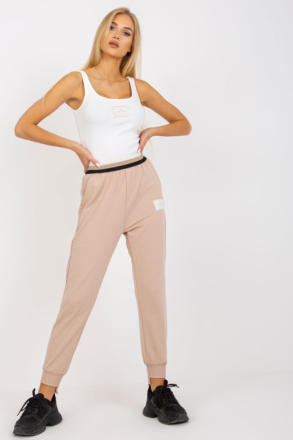 Bēšas sporta bikses ar augstu jostasvietu OCH BELLA .