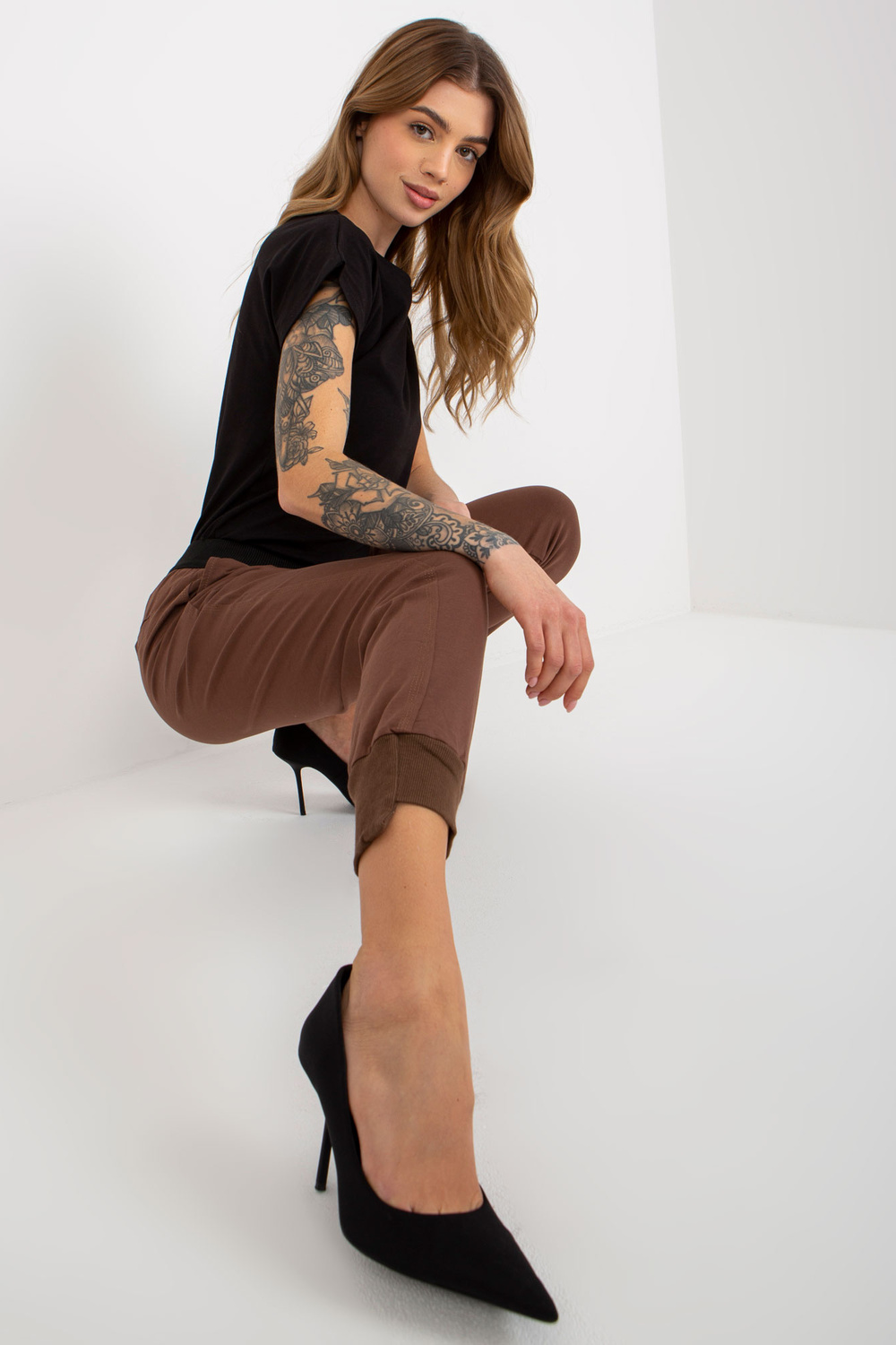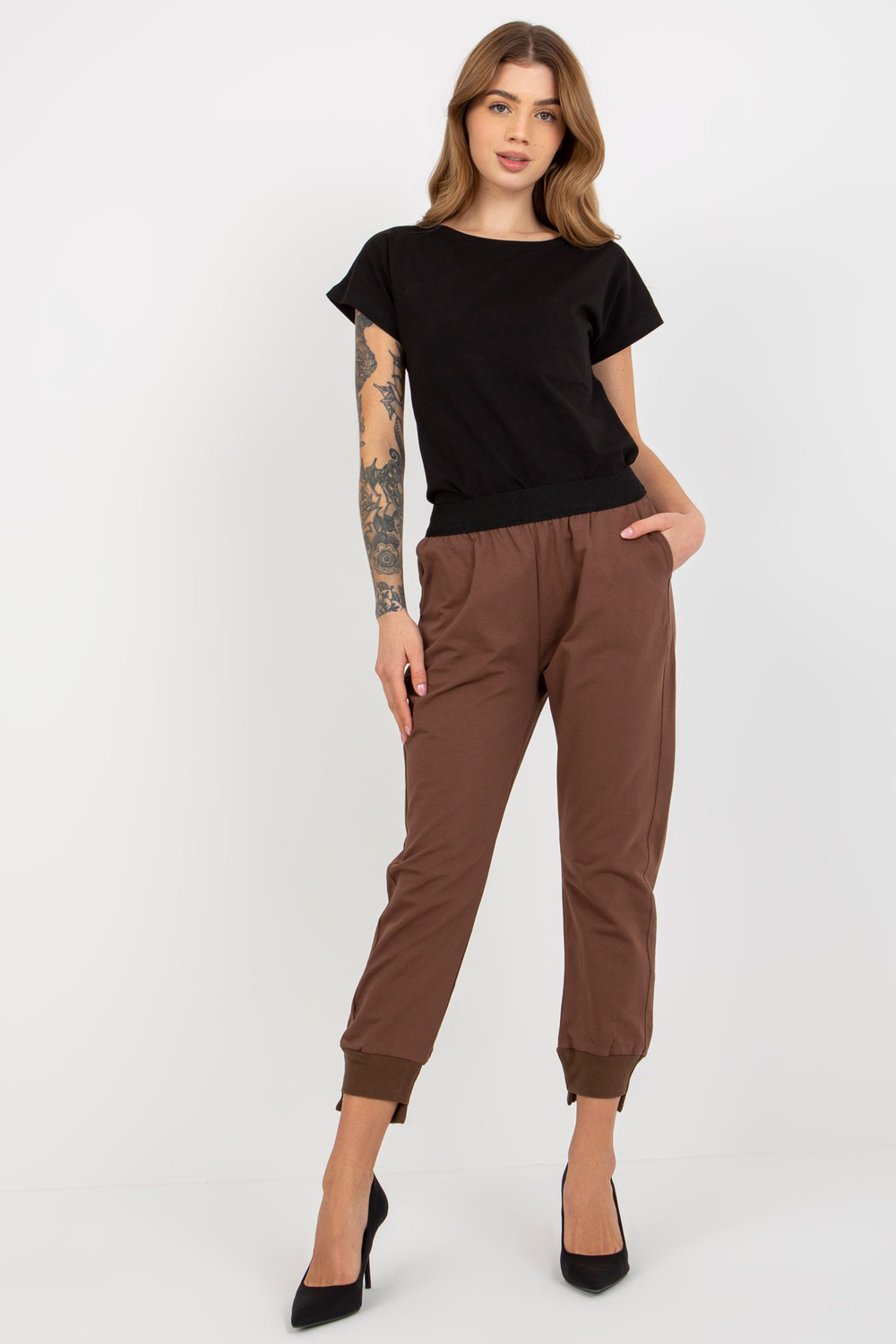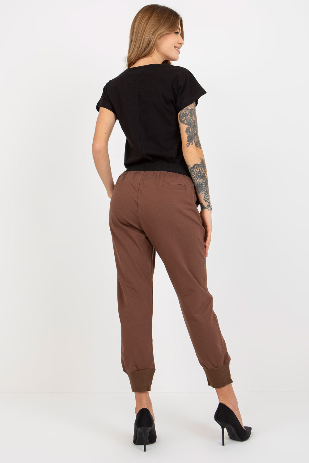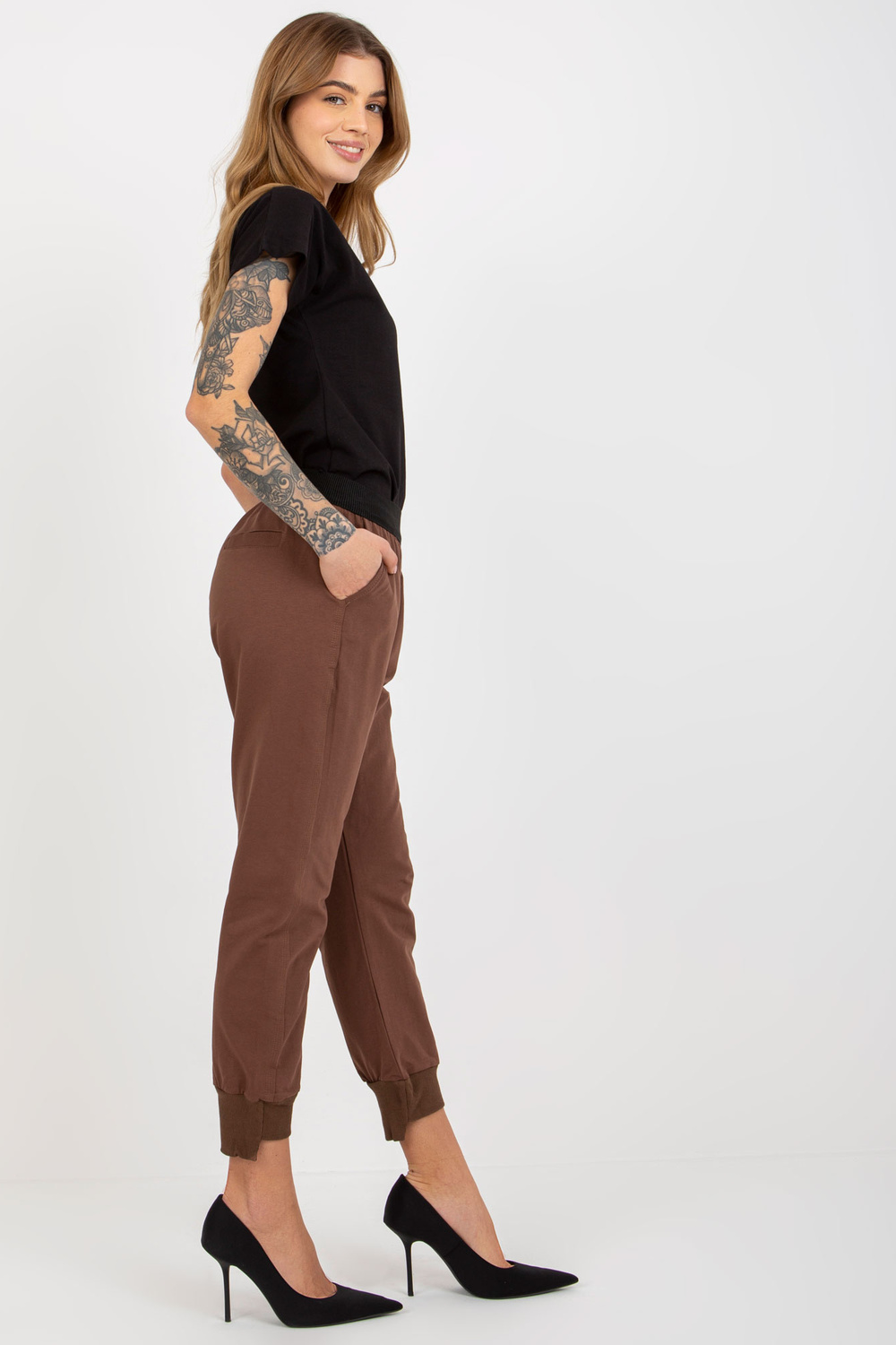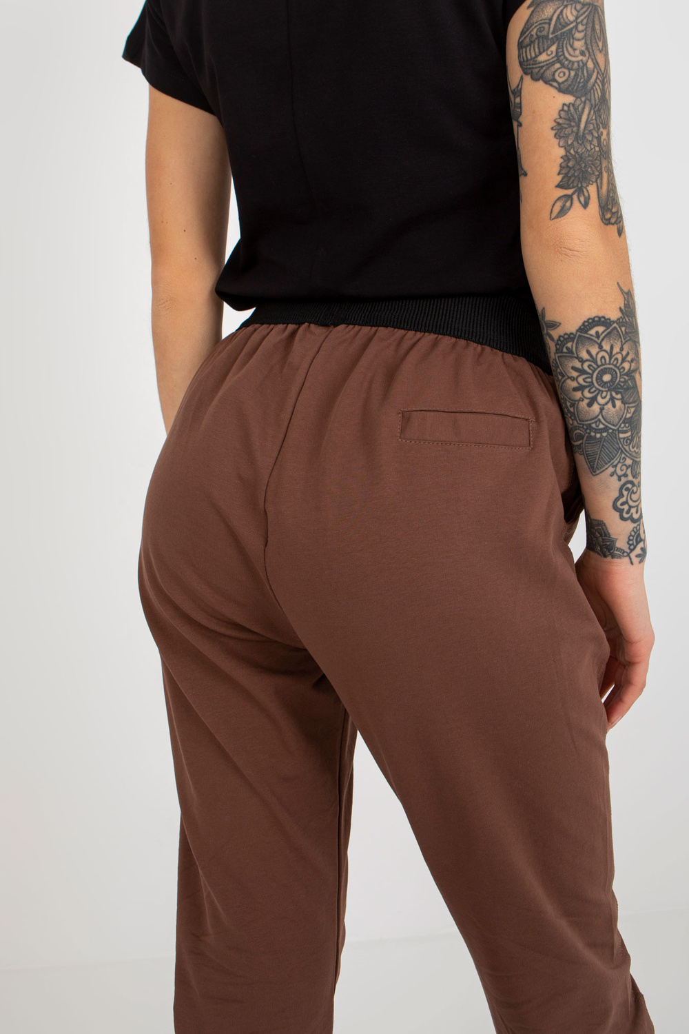 Brūnas sporta bikses ar kabatām. Produkta kods: EM-DR-635.11 dominējošais raksts: gluds Stils: neformāls gadījums: ikdienišķs, ārpus pilsētas, pastaigāties Modele valkā S/M izmēru. Modeļa izmēri: augums 173 cm, krūtis 78 cm, viduklis 61 cm, gurni 90 cm. Aptumšot
